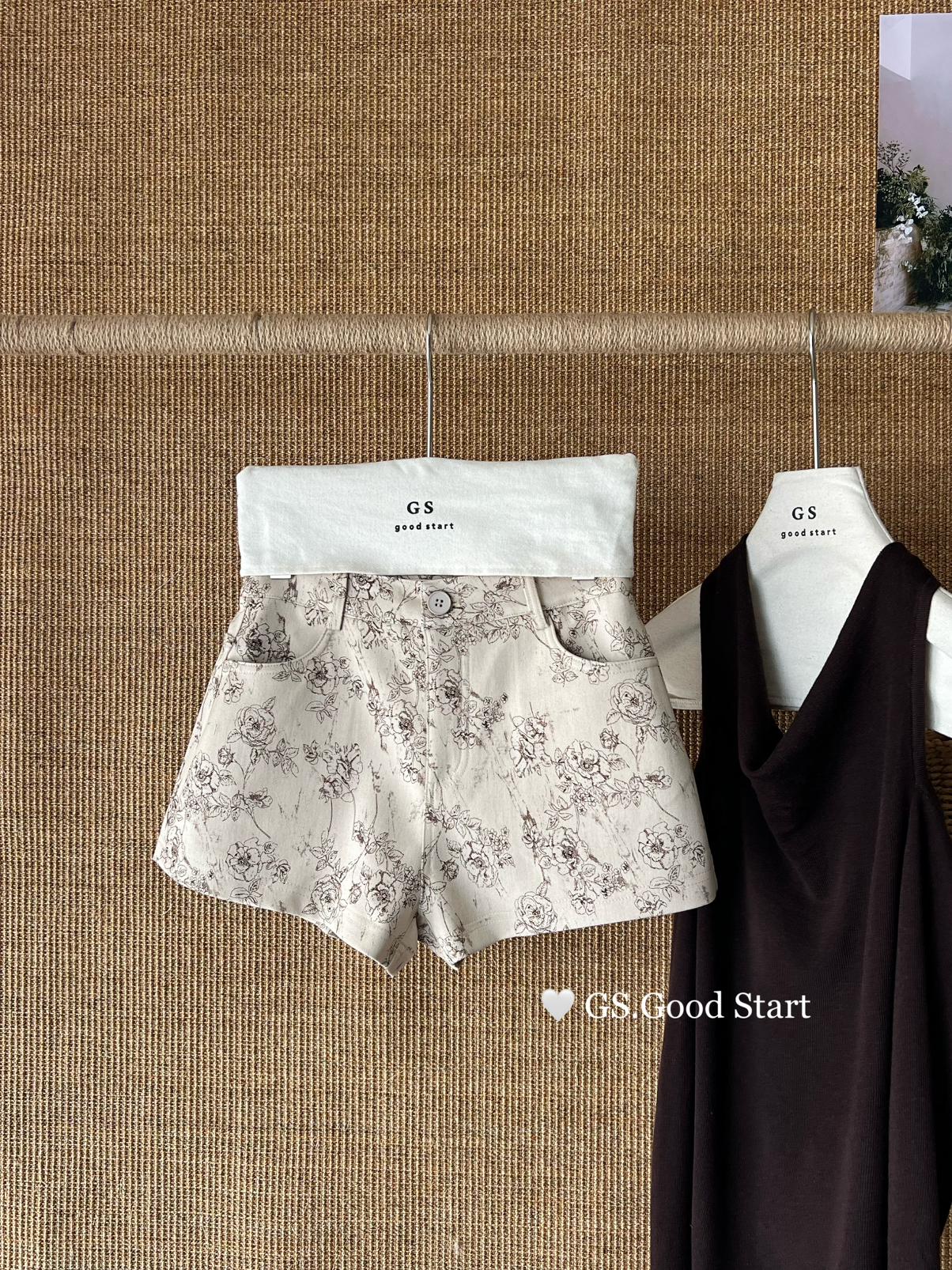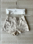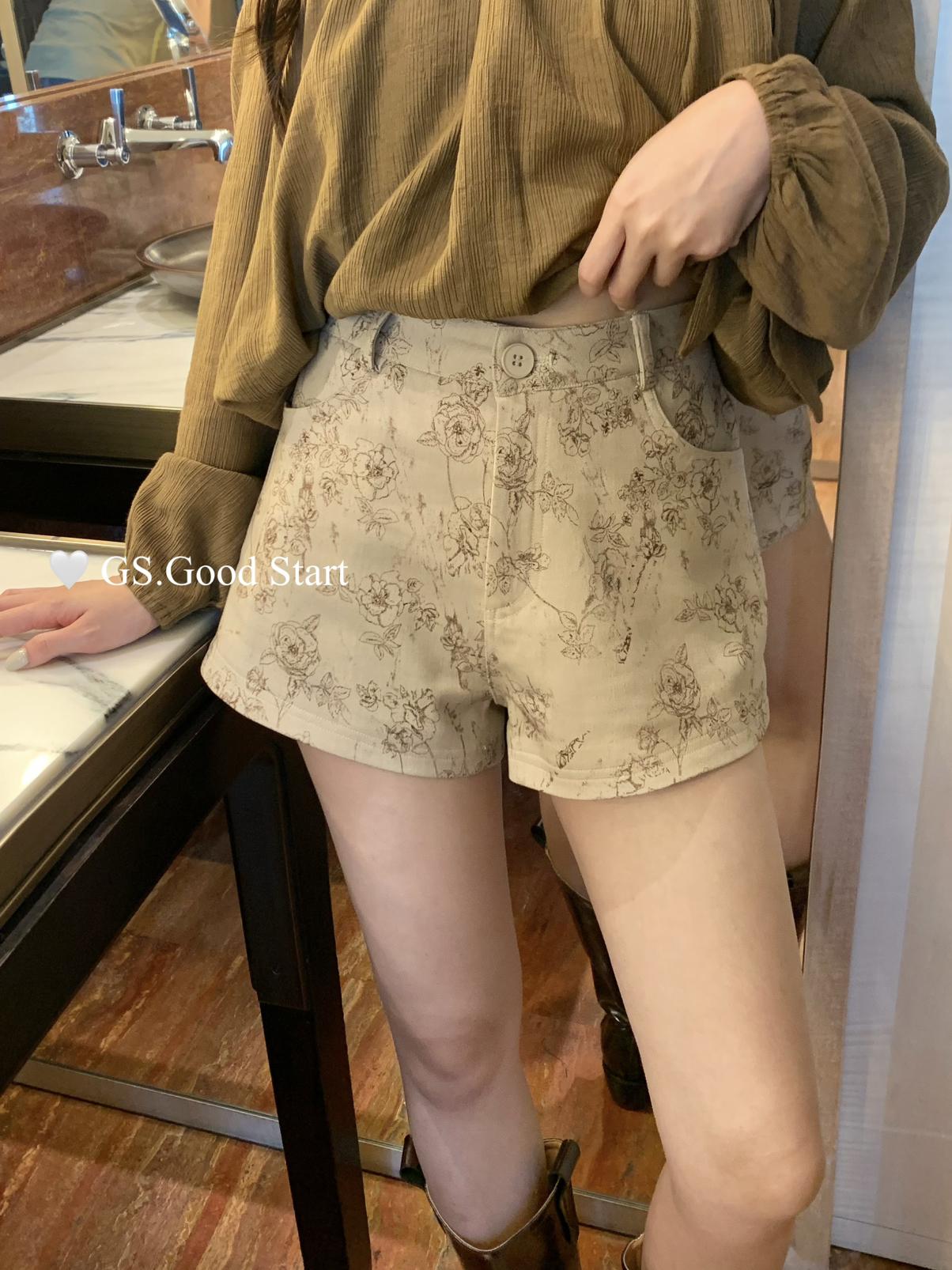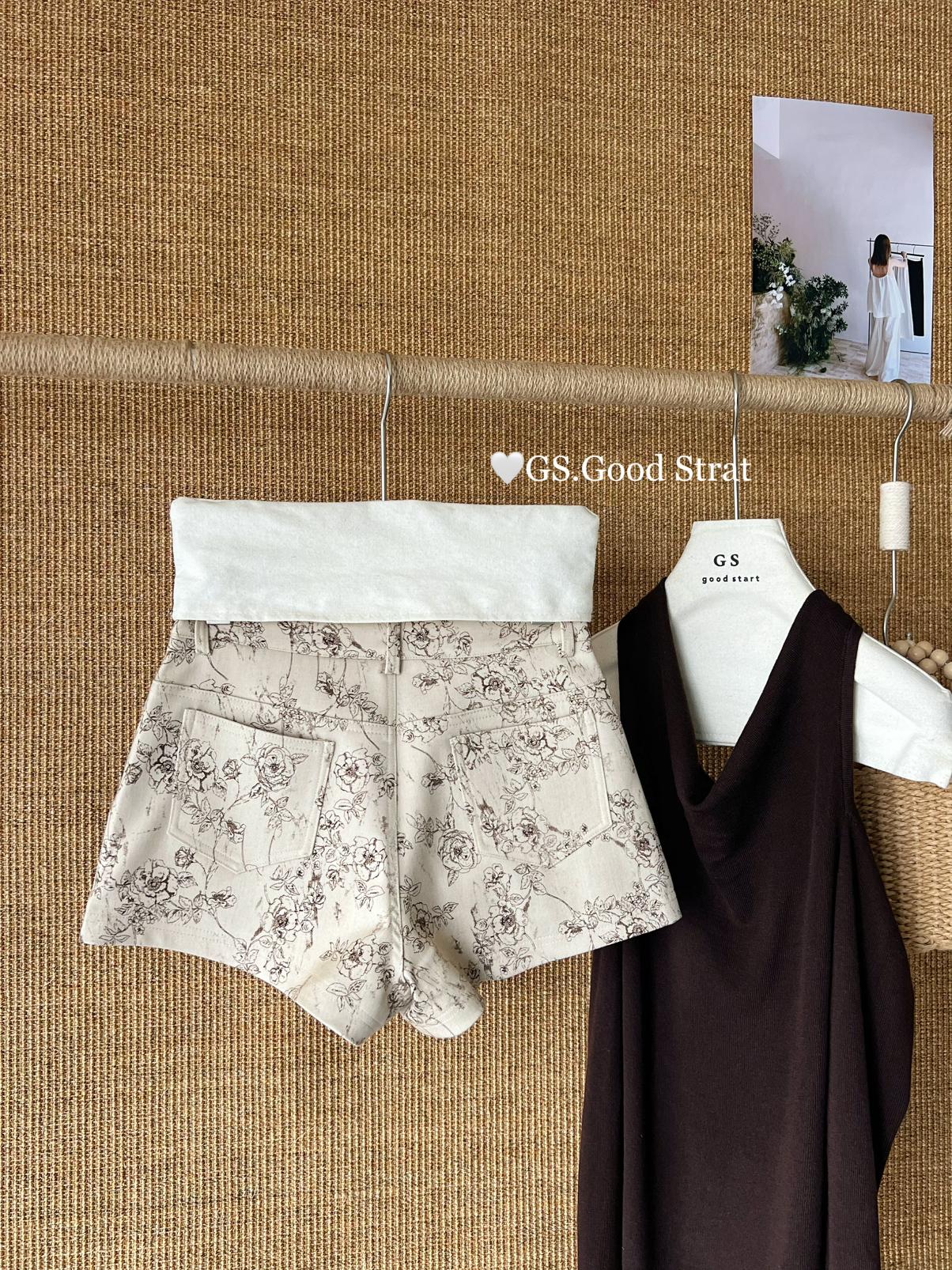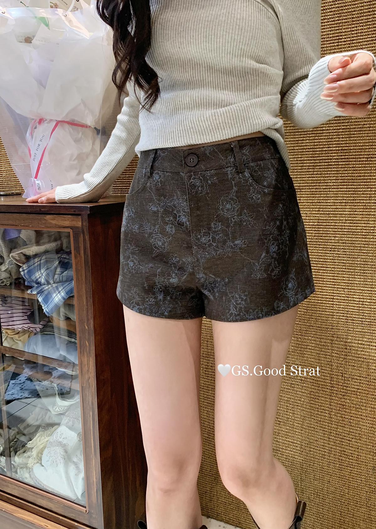 【C7201】千金感單品·很顯貴~秋冬復古氣質提花高腰顯瘦休閒短褲
