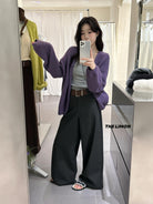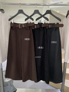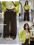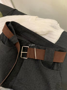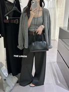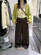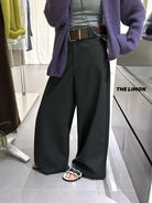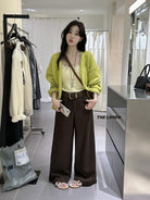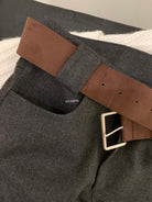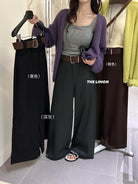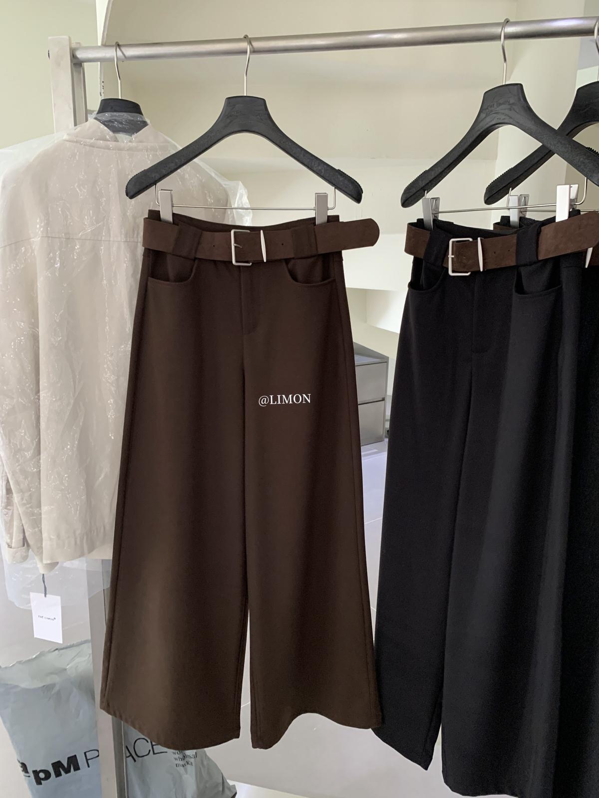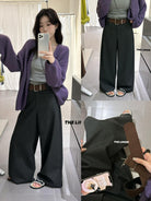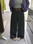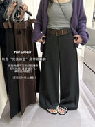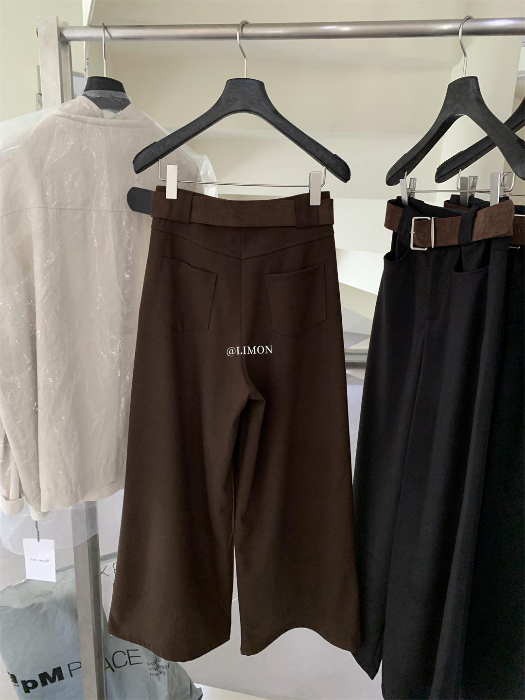 【C7312】高腰直筒寬鬆拖地呢料休閒褲(配腰帶)