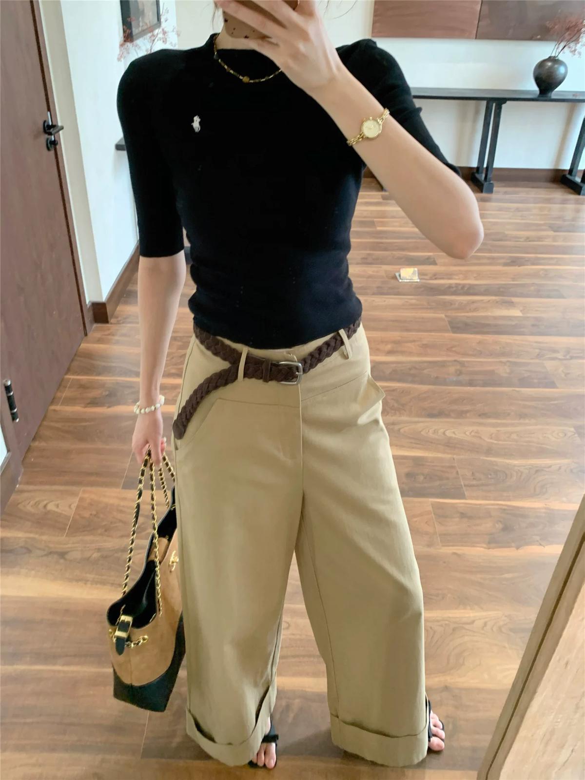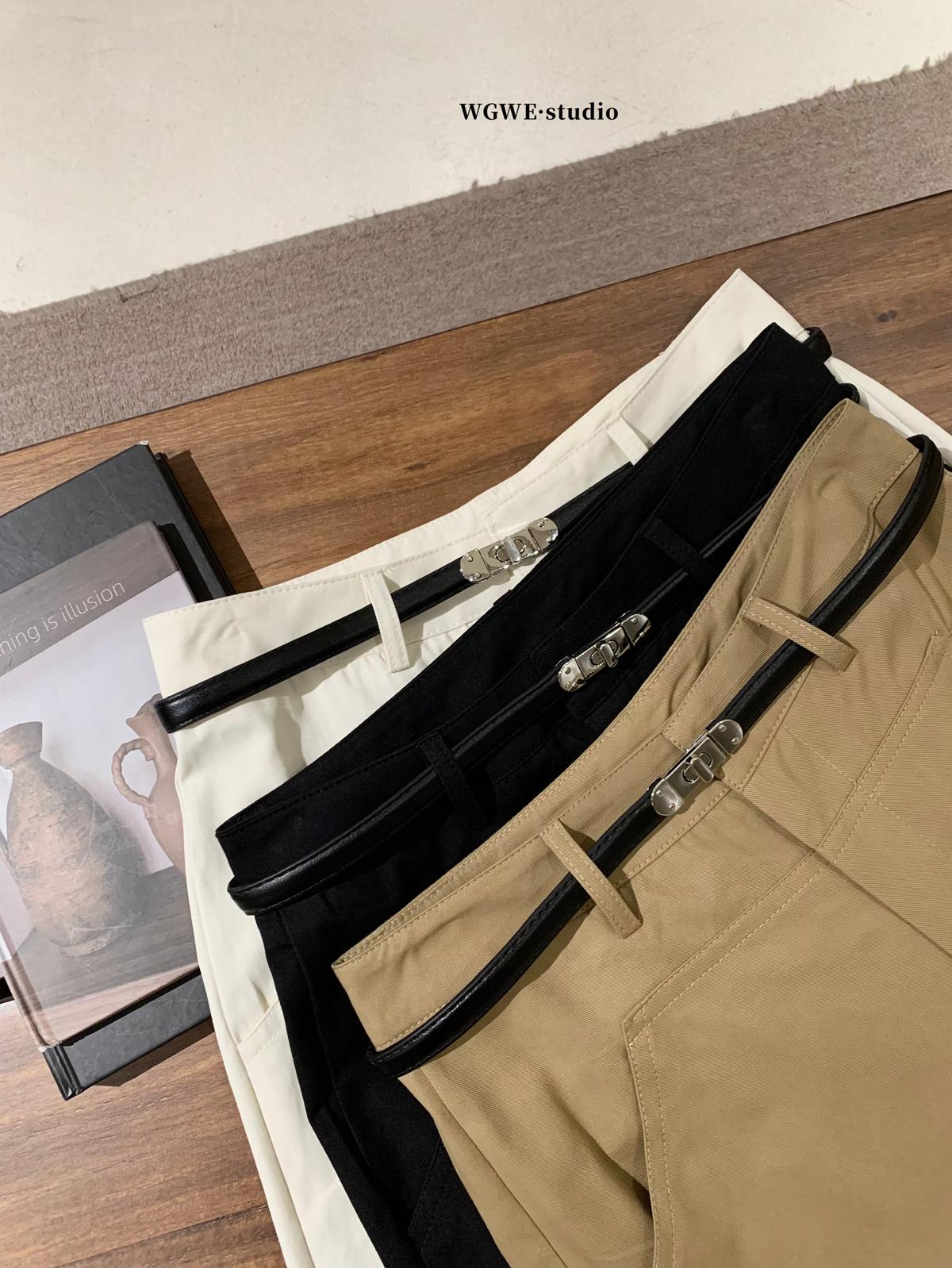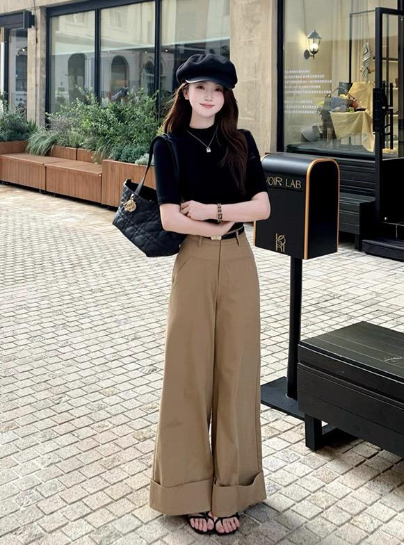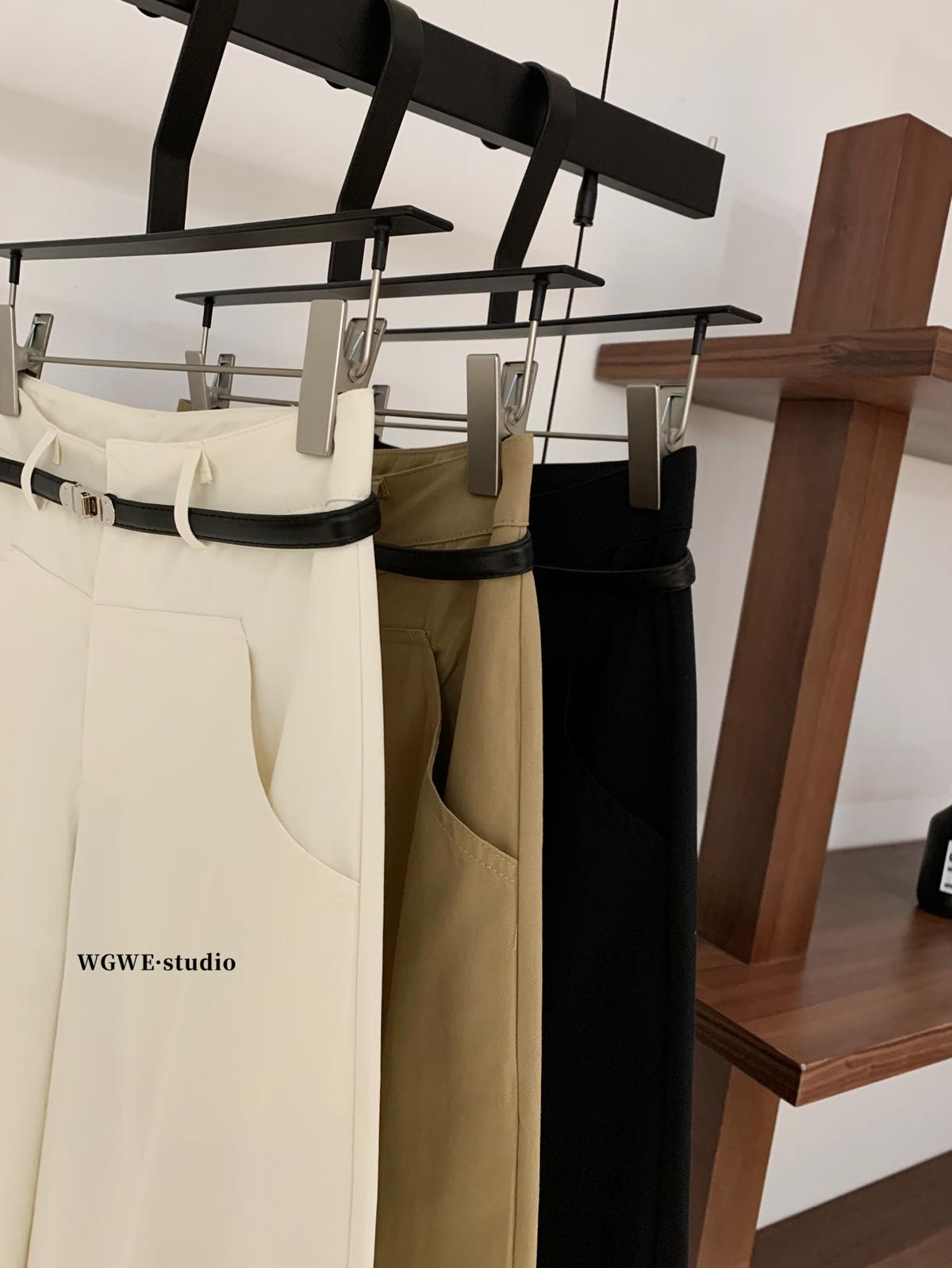 【C7321】設計感舒適高腰闊腿褲長褲休閒褲(配腰帶)