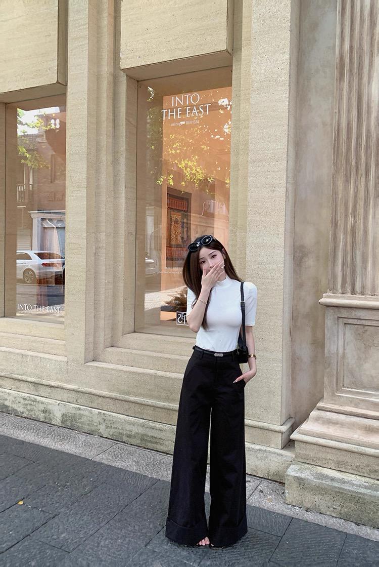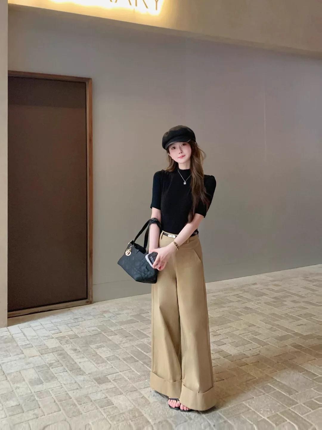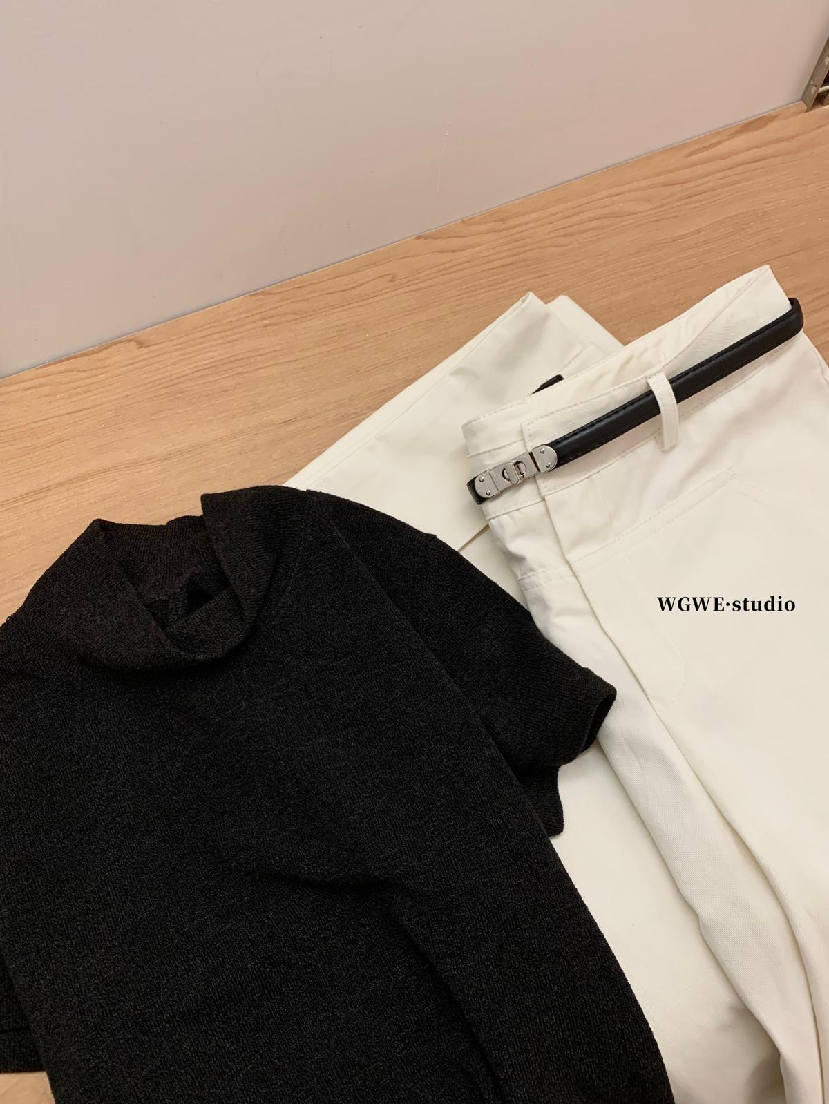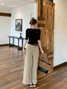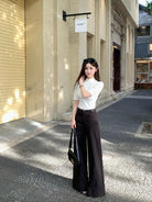 【C7321】設計感舒適高腰闊腿褲長褲休閒褲(配腰帶)