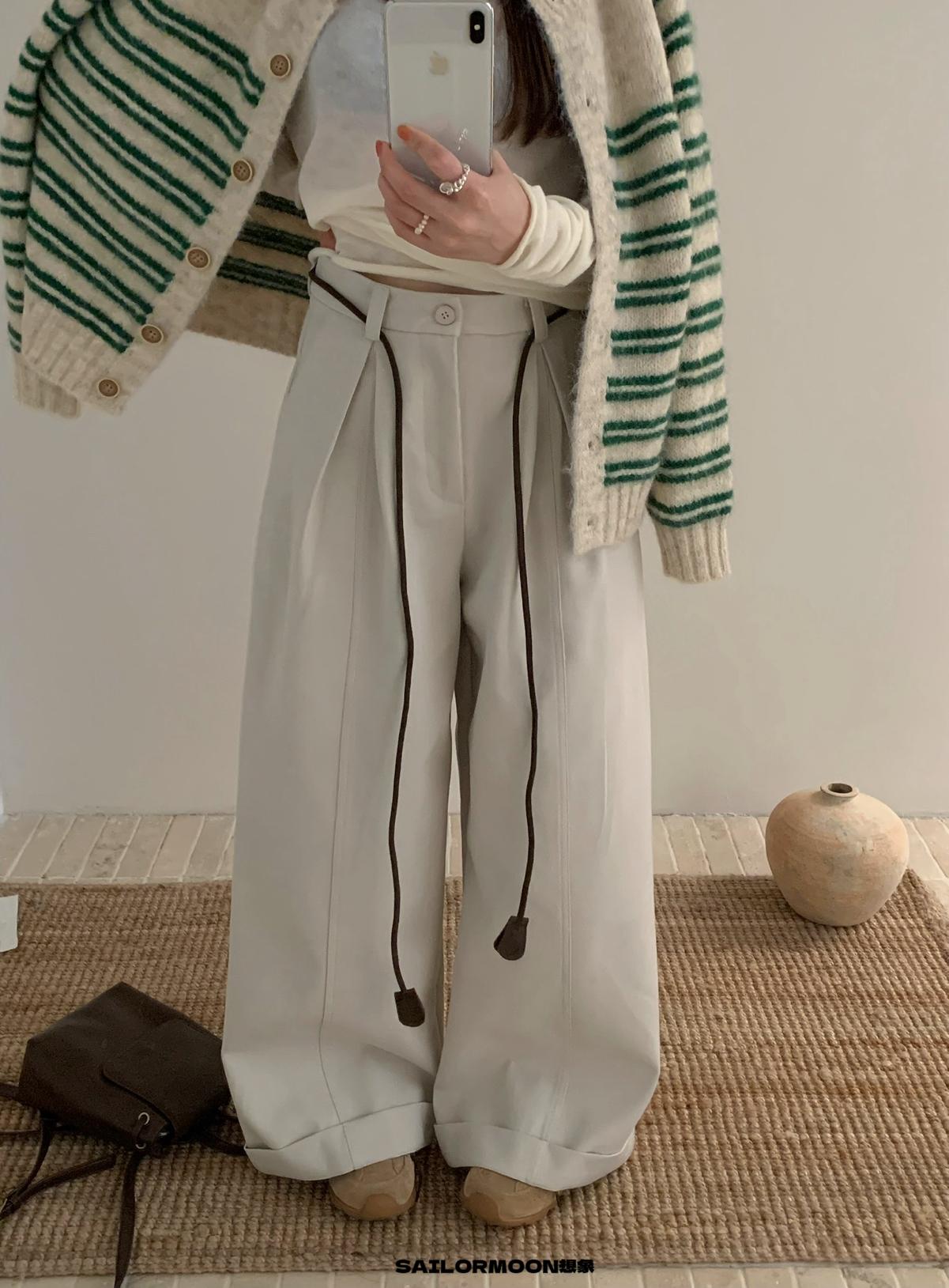 3. 【C7343】版型光掛着就能感受到很正!定製面料 質感太好啦休閒褲(配腰繩)