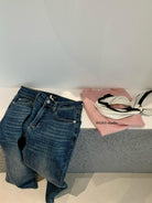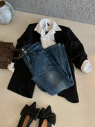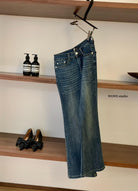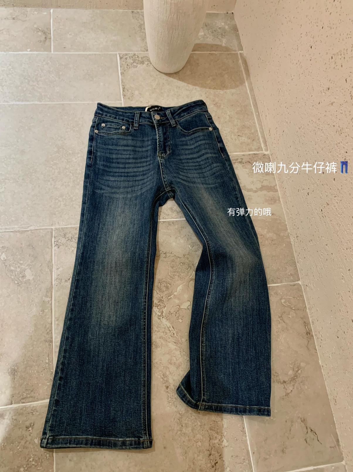 【C7366】人生微喇重工復古百搭修身顯瘦微喇直筒九分牛仔褲
