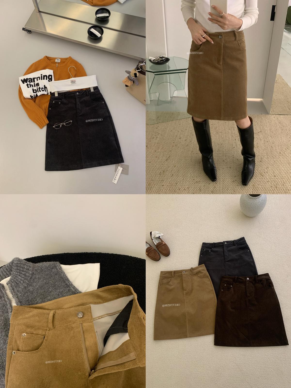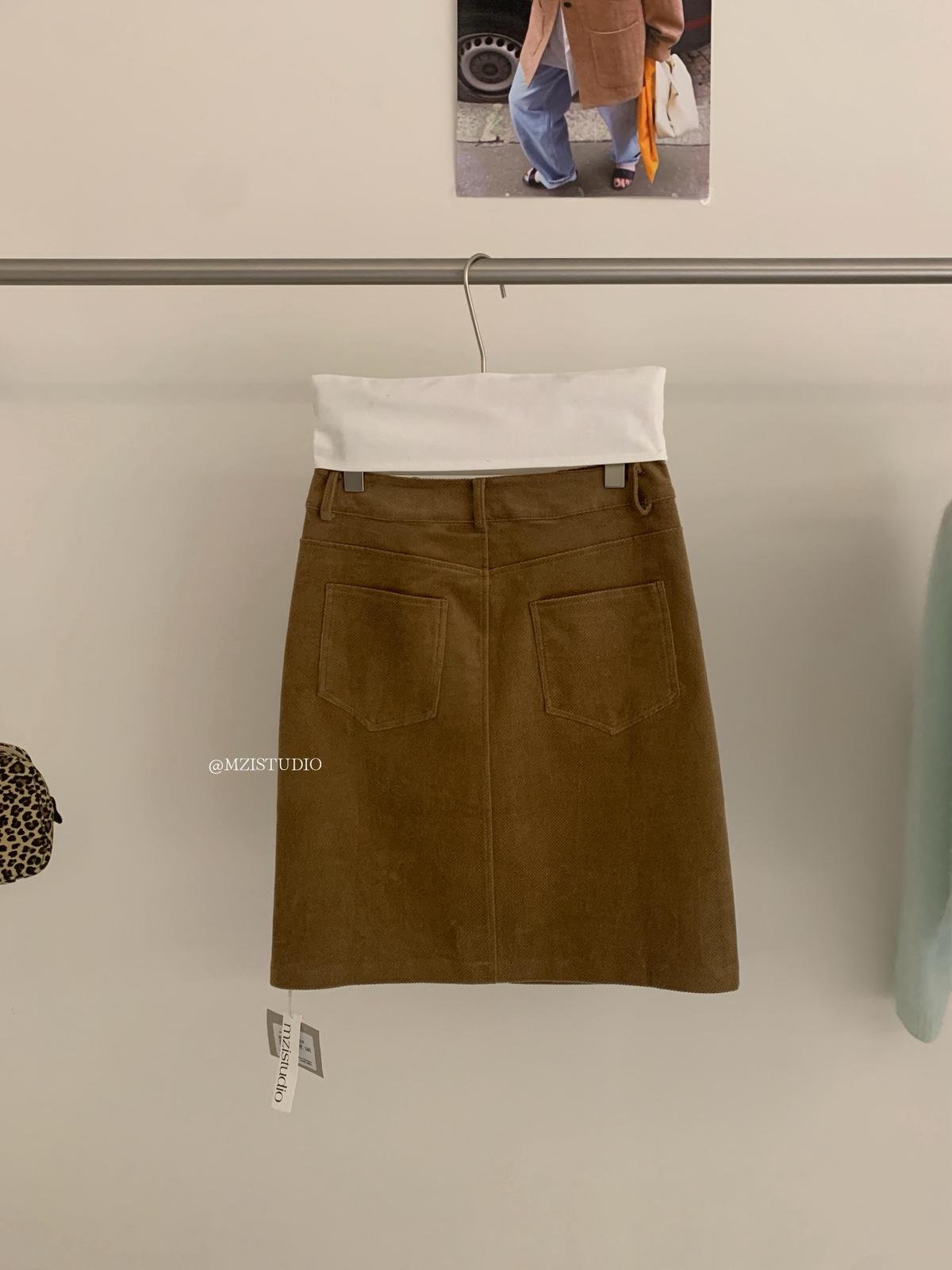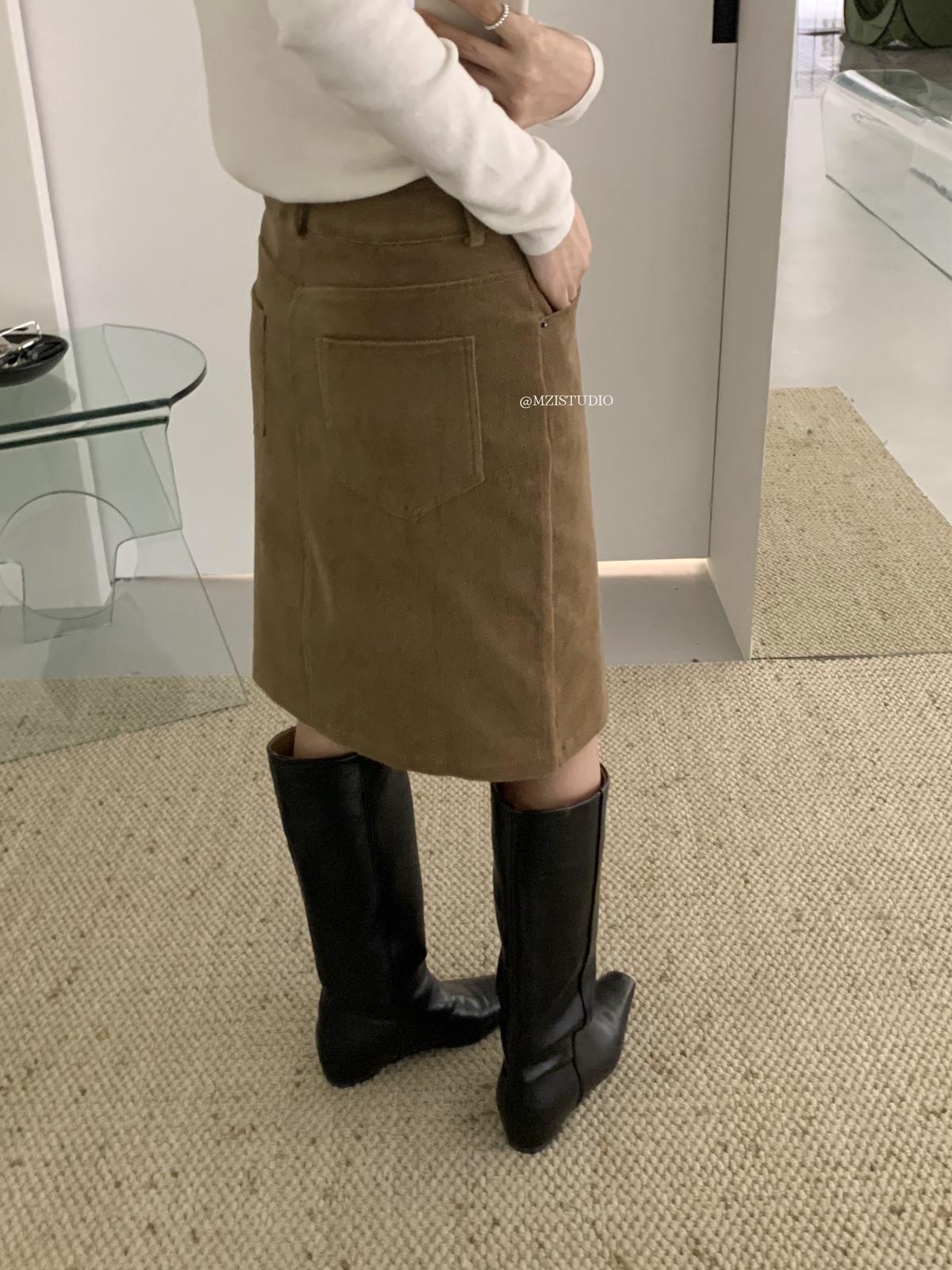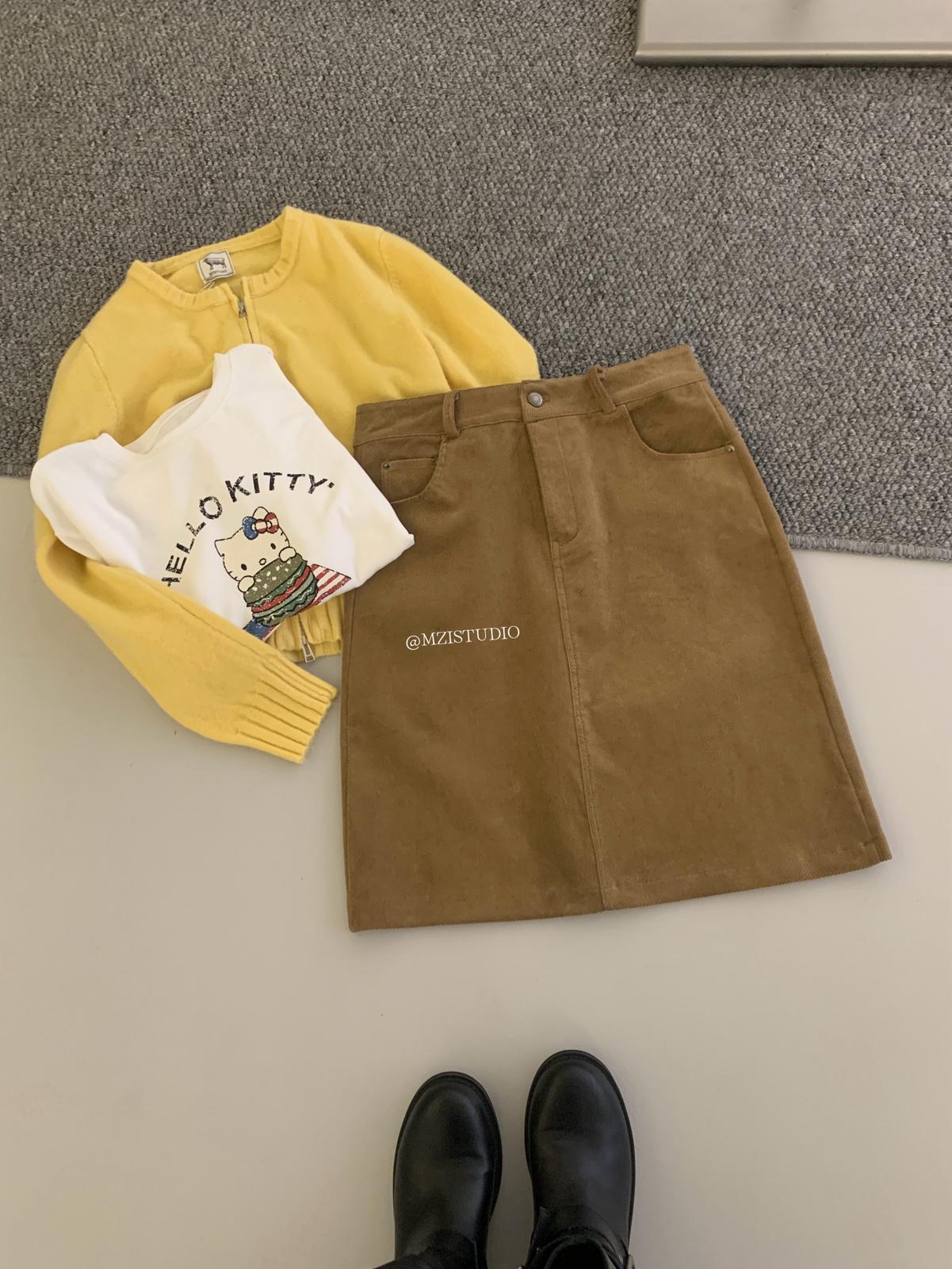 3. 【C7384】復古畫報氛圍冬韓標棉霧感燈芯絨超百搭A字包臀中裙半身裙