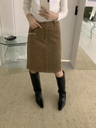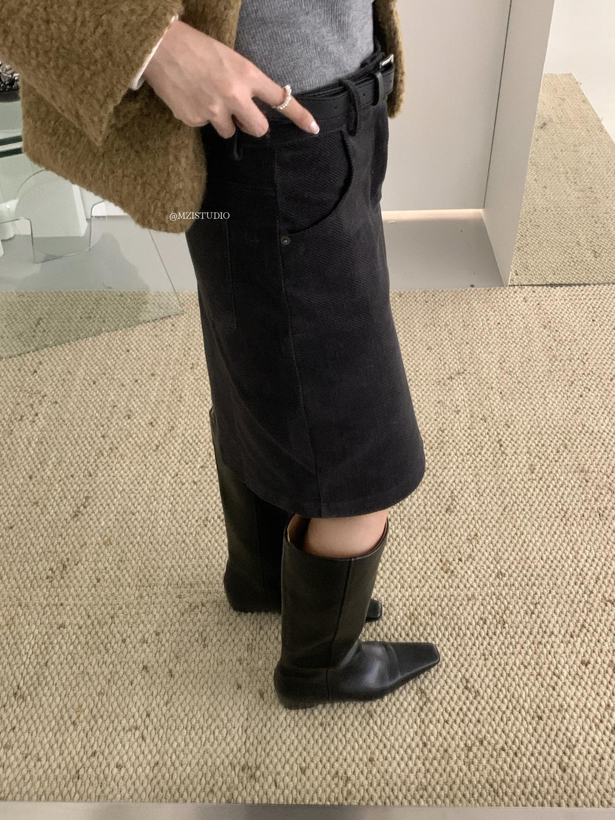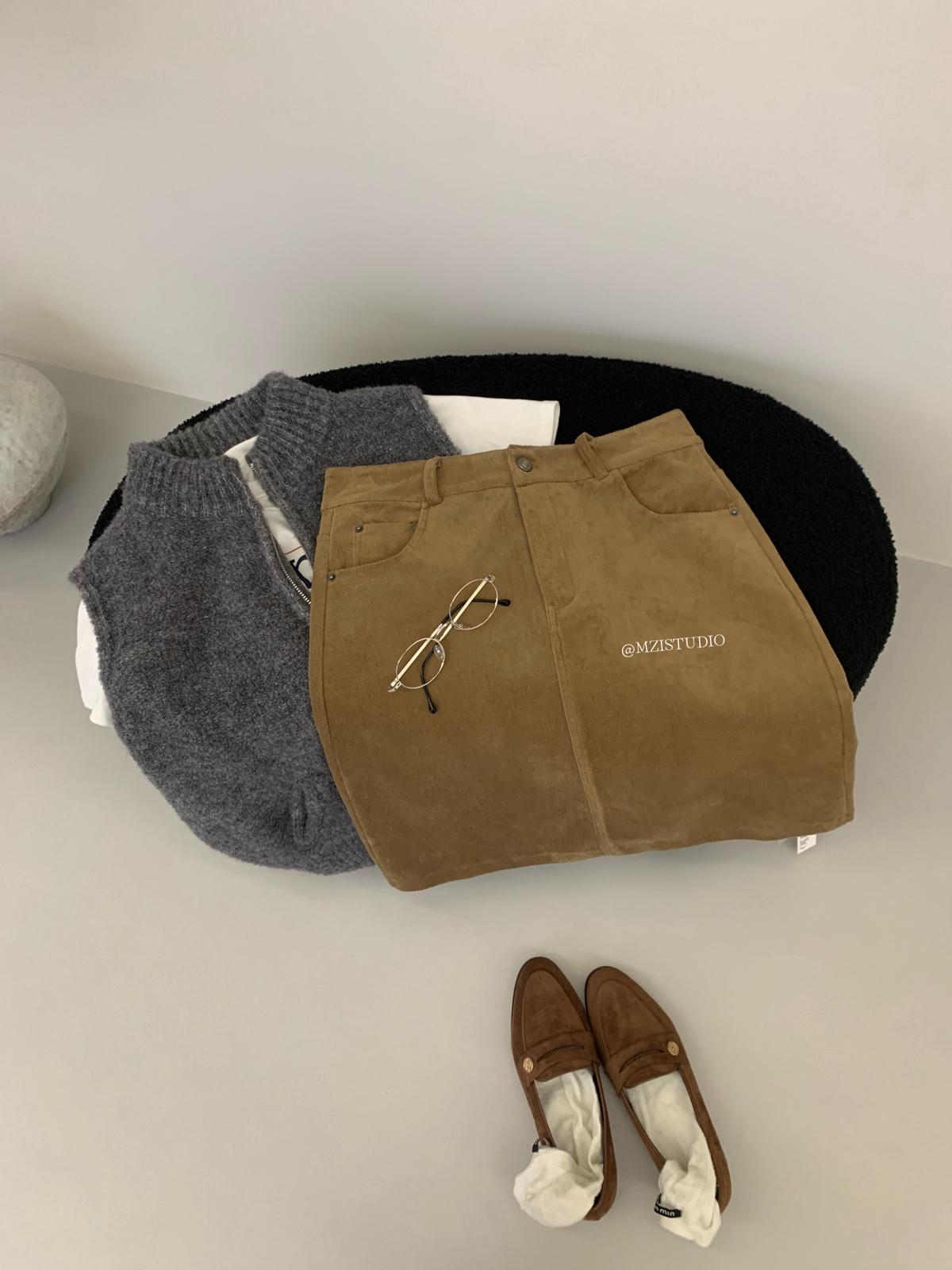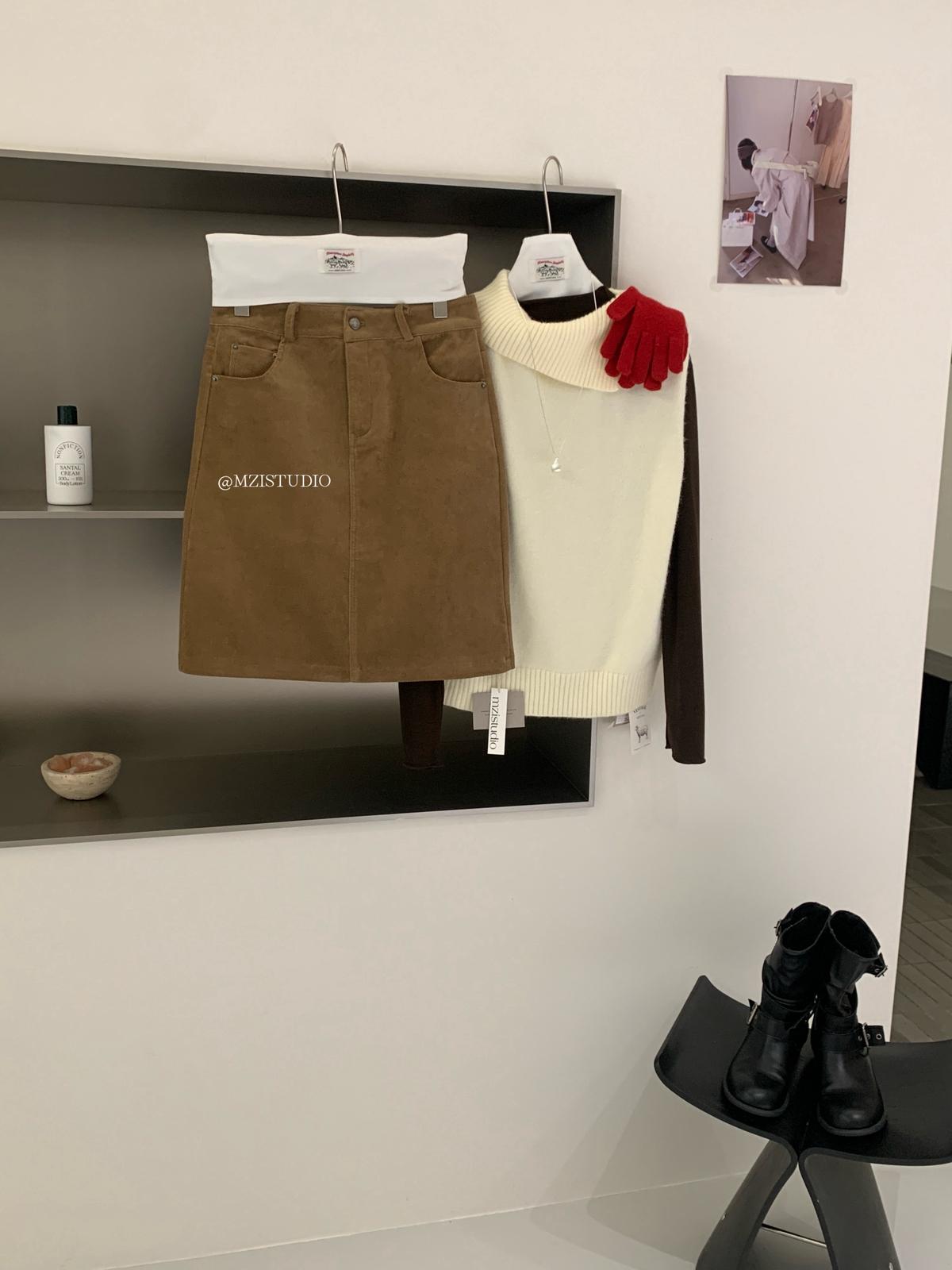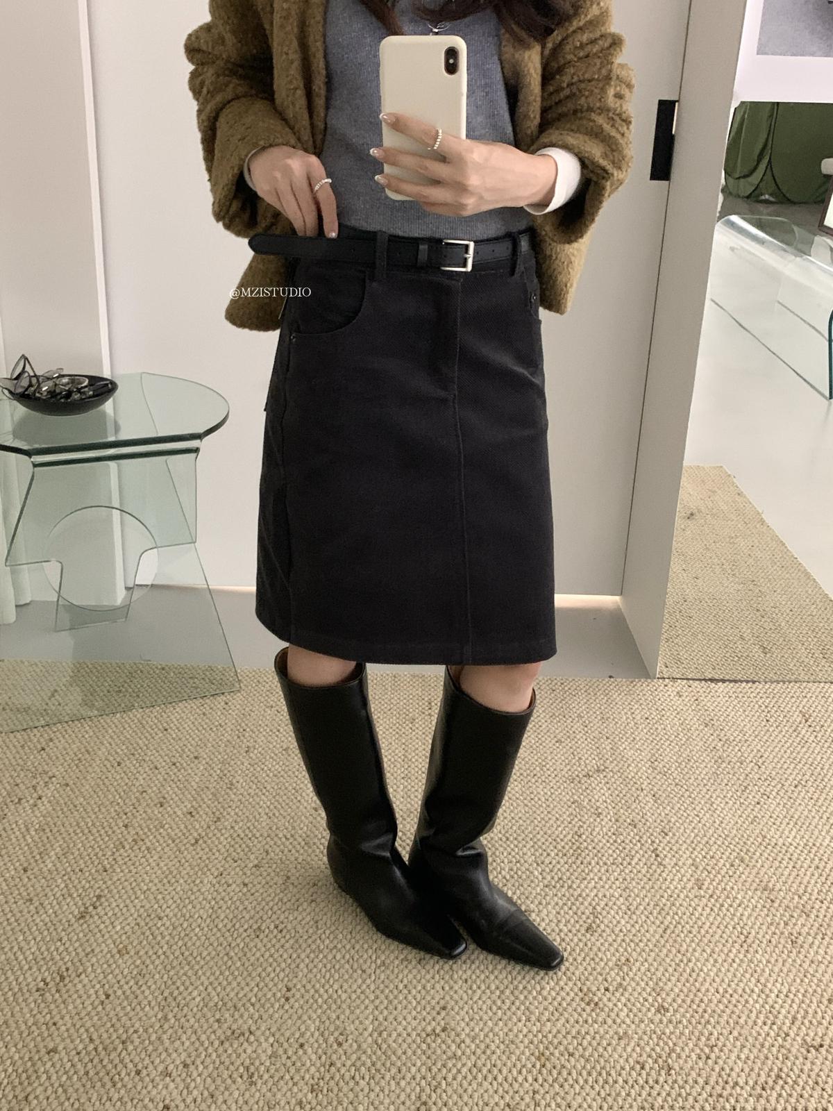 3. 【C7384】復古畫報氛圍冬韓標棉霧感燈芯絨超百搭A字包臀中裙半身裙