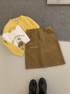 【C7384】復古畫報氛圍冬韓標棉霧感燈芯絨超百搭A字包臀中裙半身裙
