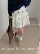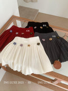 【C7421】絕美巨好看的花朵針織a字裙女秋季新款高腰顯瘦百褶短款半身裙