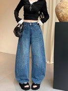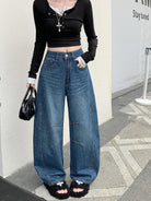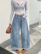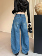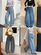 3. 【C7429】高腰闊腿彎刀女秋季立體剪裁寬鬆百搭休閒拖地長褲潮牛仔褲