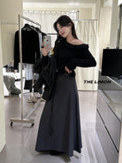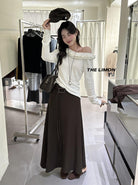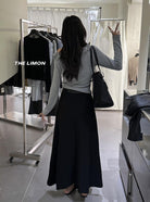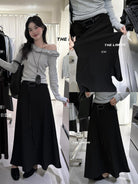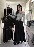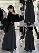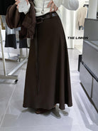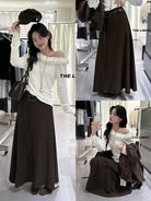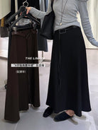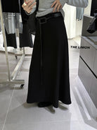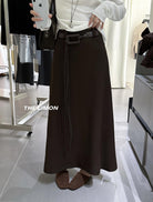 【C7448】溫柔氣質高腰垂感純色半身裙(配腰帶)