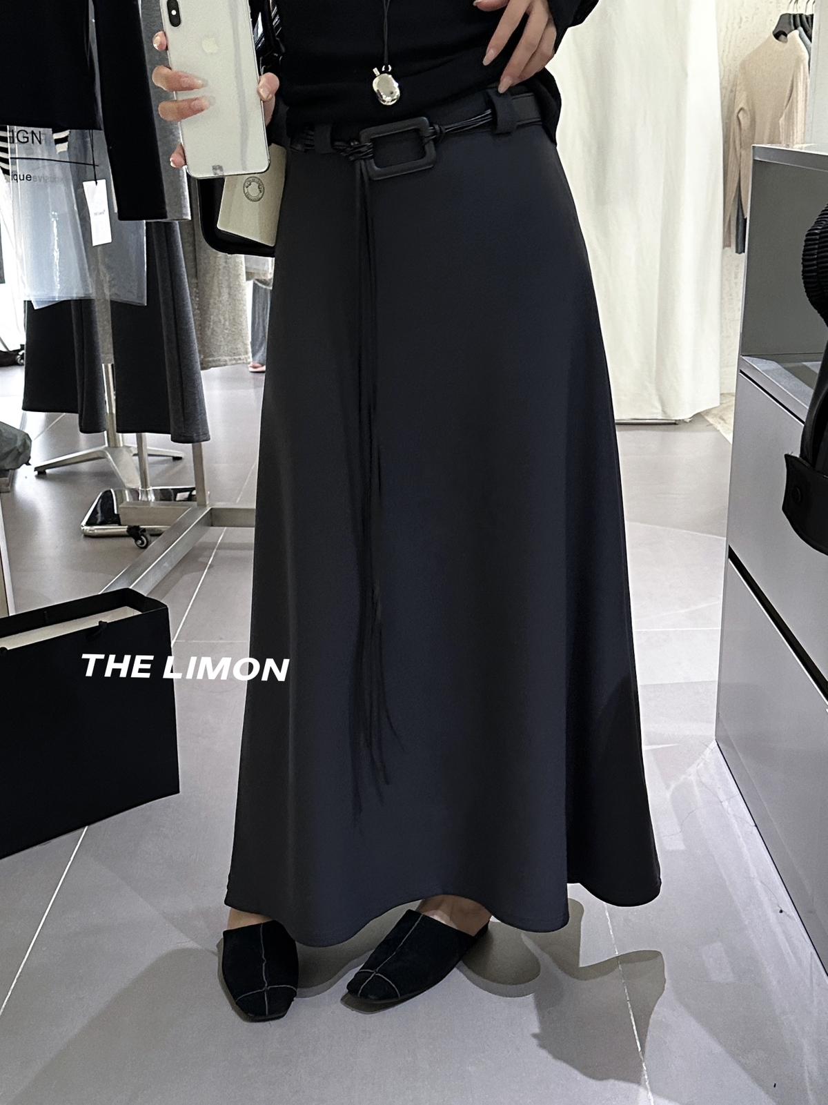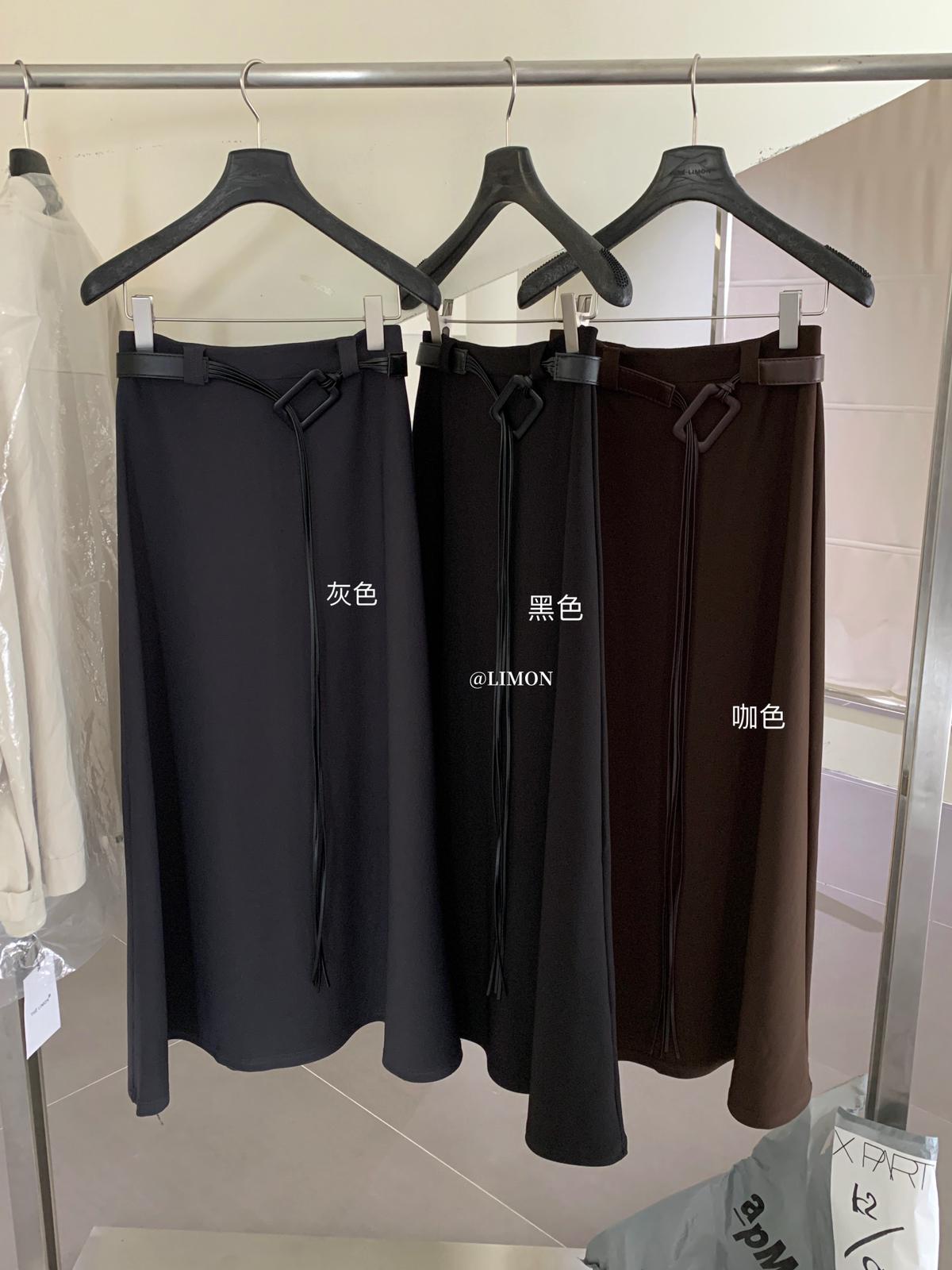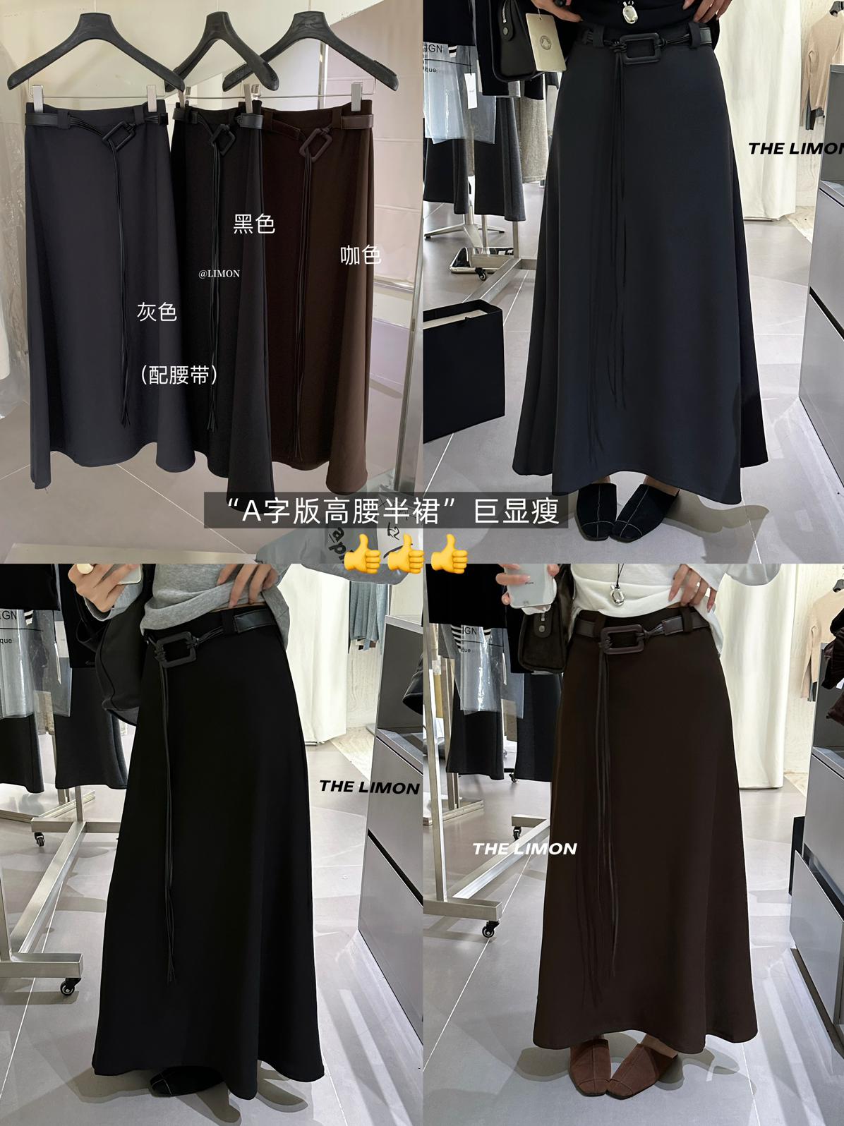 3. 【C7448】溫柔氣質高腰垂感純色半身裙(配腰帶)