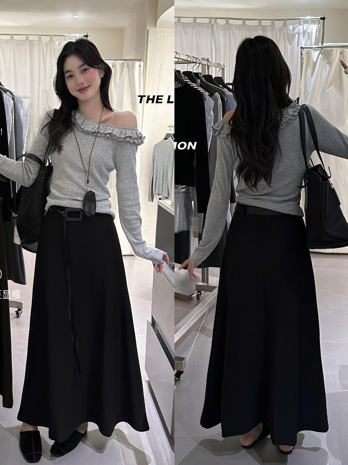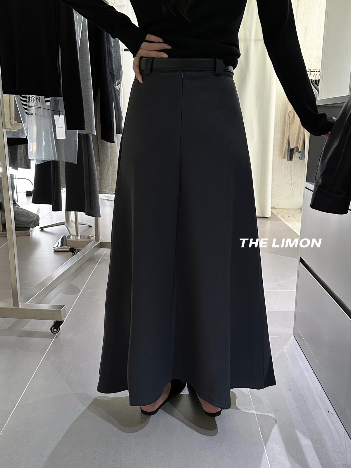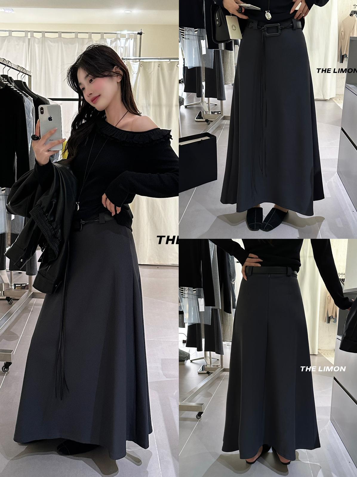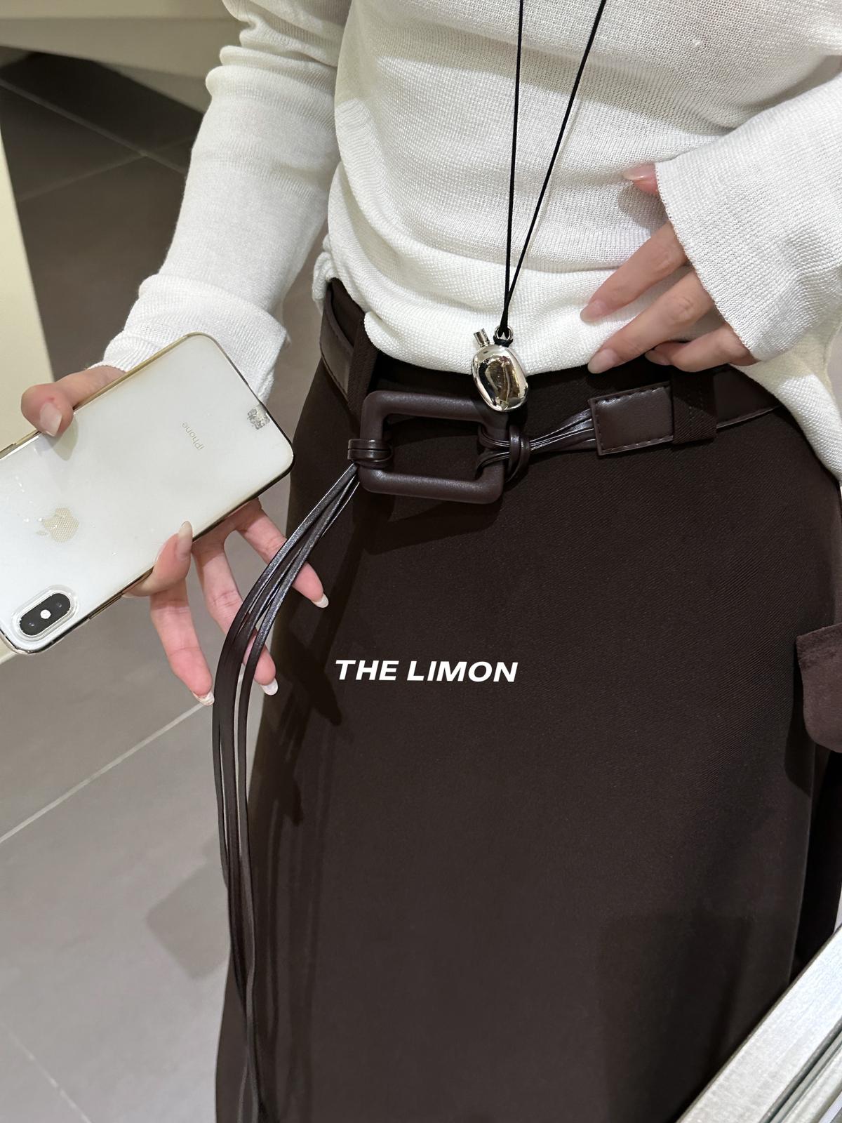 3. 【C7448】溫柔氣質高腰垂感純色半身裙(配腰帶)