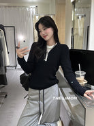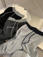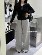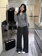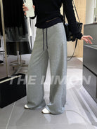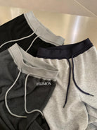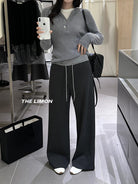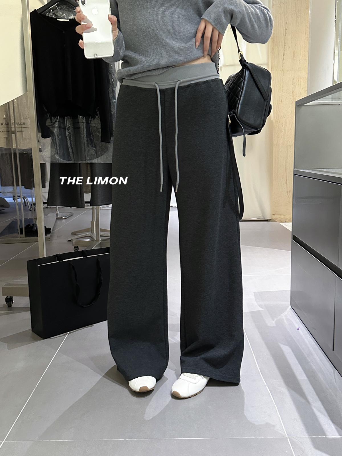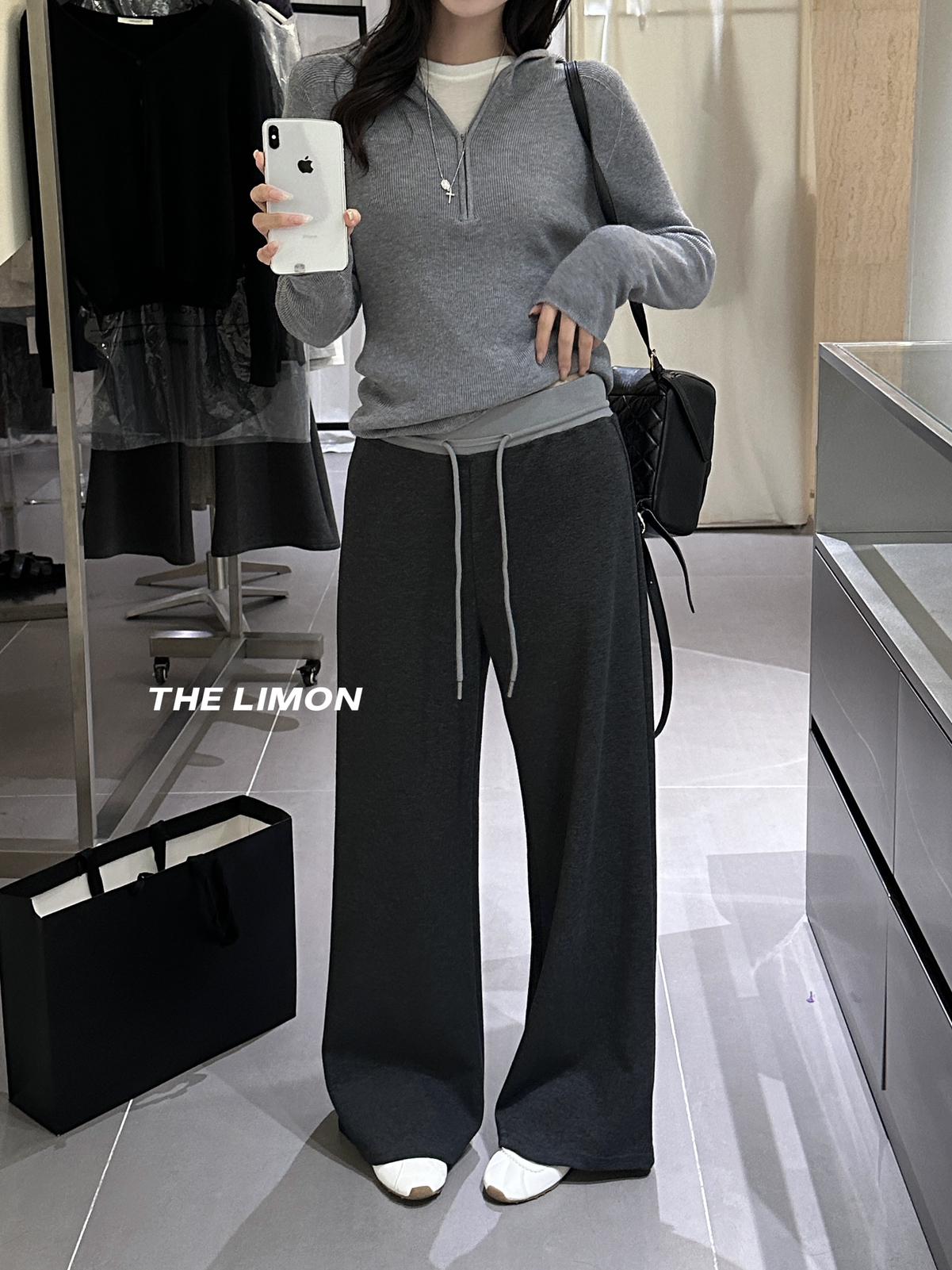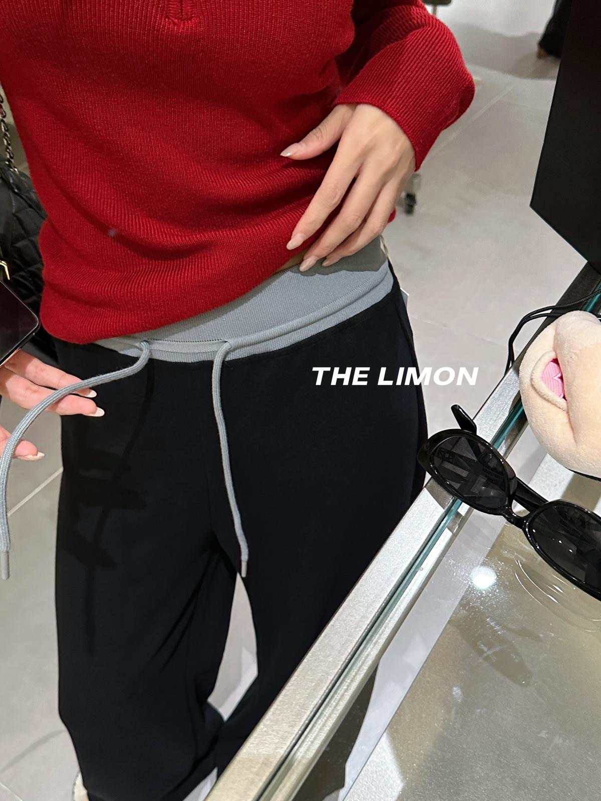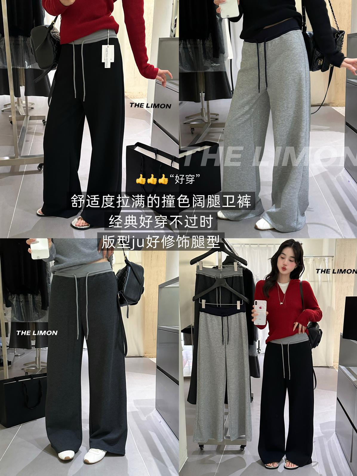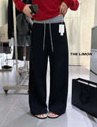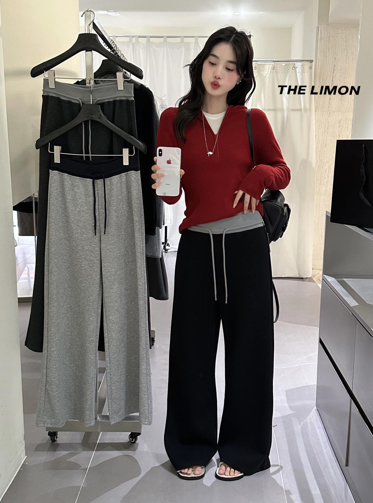 【C7450】舒適百搭高腰拼接抽繩顯瘦休閒褲