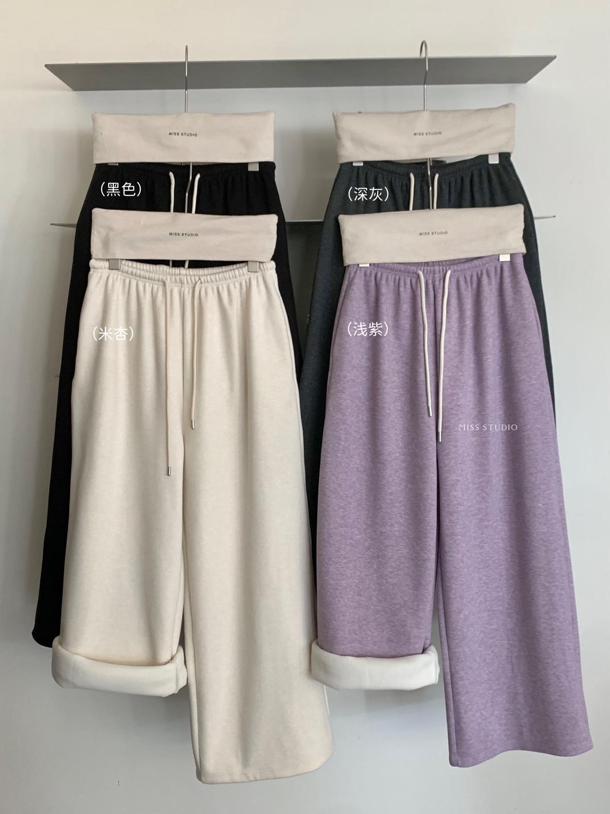 3. 【C7597】顯瘦慵懶巨百搭加厚複合奧粒絨闊腿鬆緊腰休閒褲衛衣褲