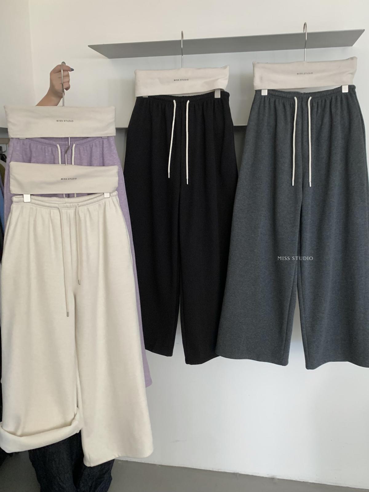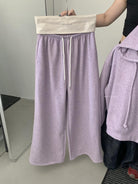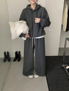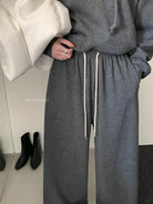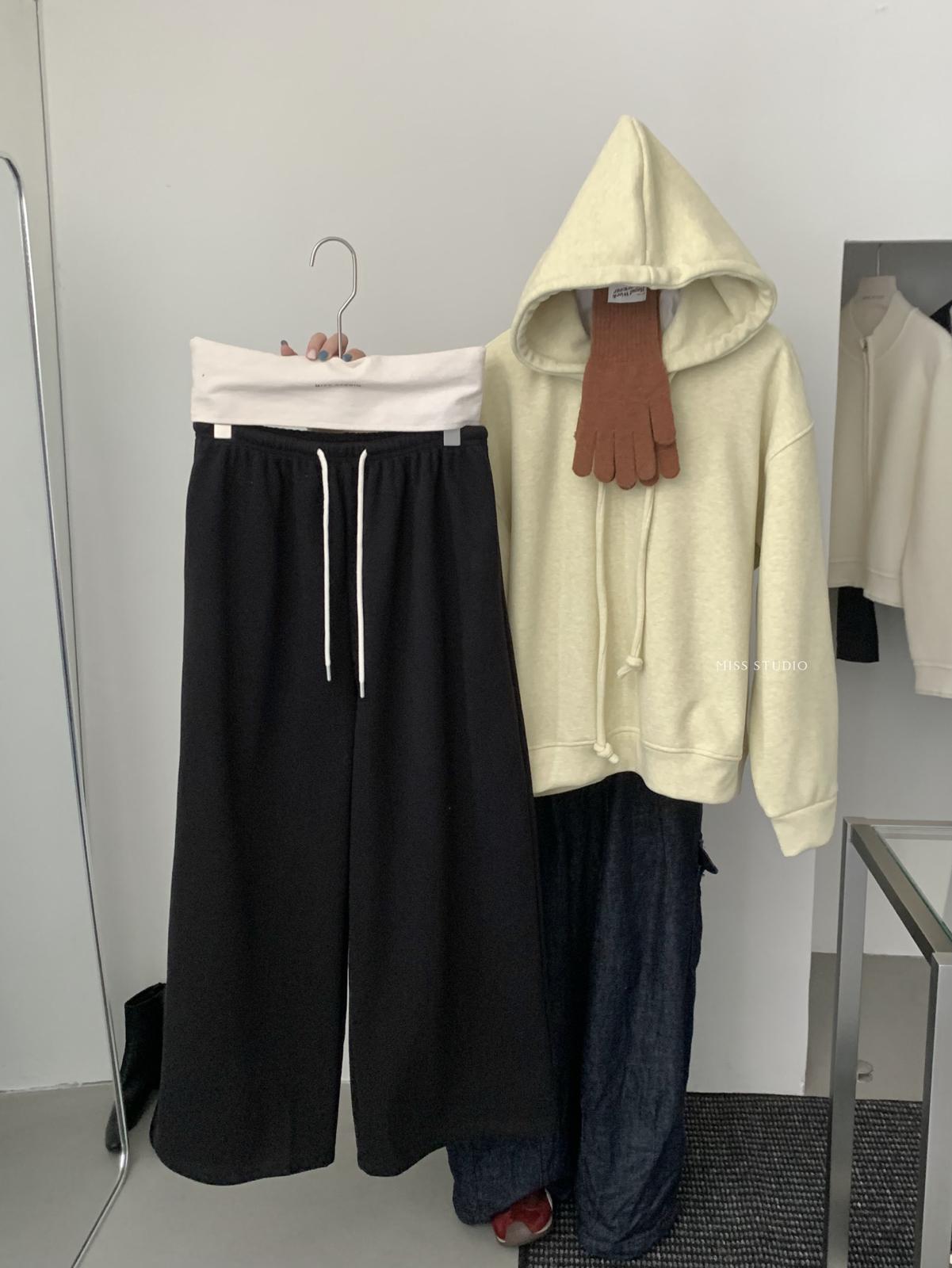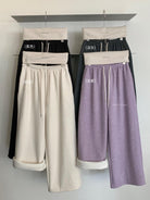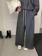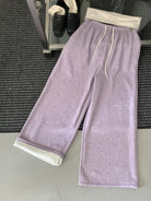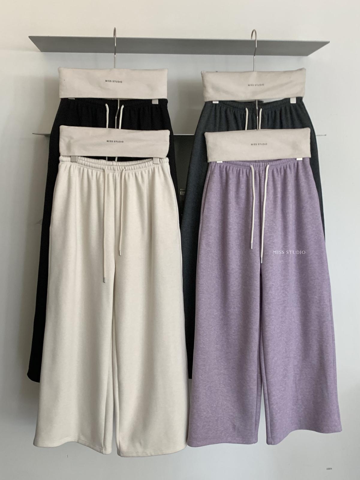 【C7597】顯瘦慵懶巨百搭加厚複合奧粒絨闊腿鬆緊腰休閒褲衛衣褲