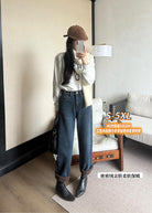 3. 【C7685】冬季加厚保暖複合密密絨主推大碼三色彈力折邊九分男友褲牛仔褲(大碼可穿200斤)