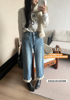 【C7685】冬季加厚保暖複合密密絨主推大碼三色彈力折邊九分男友褲牛仔褲(大碼可穿200斤)
