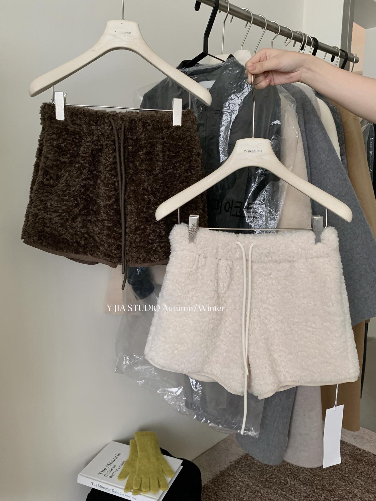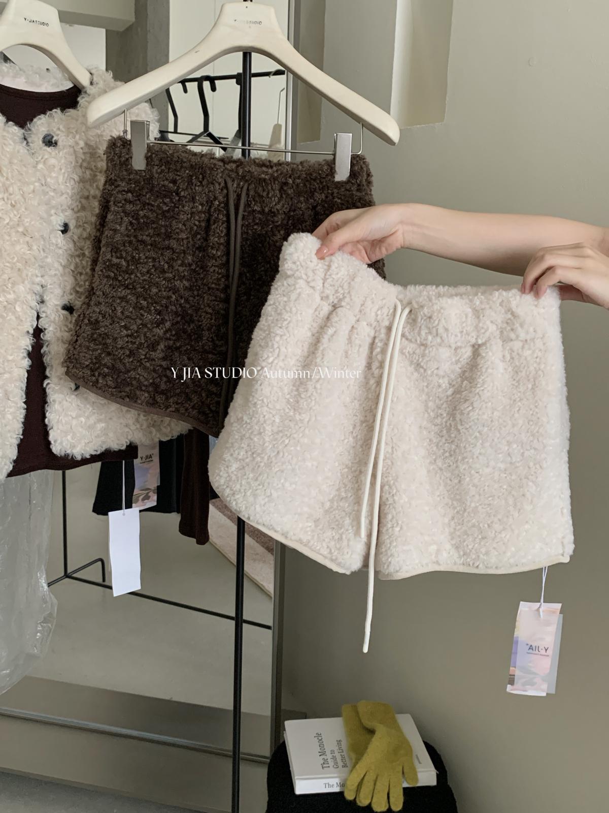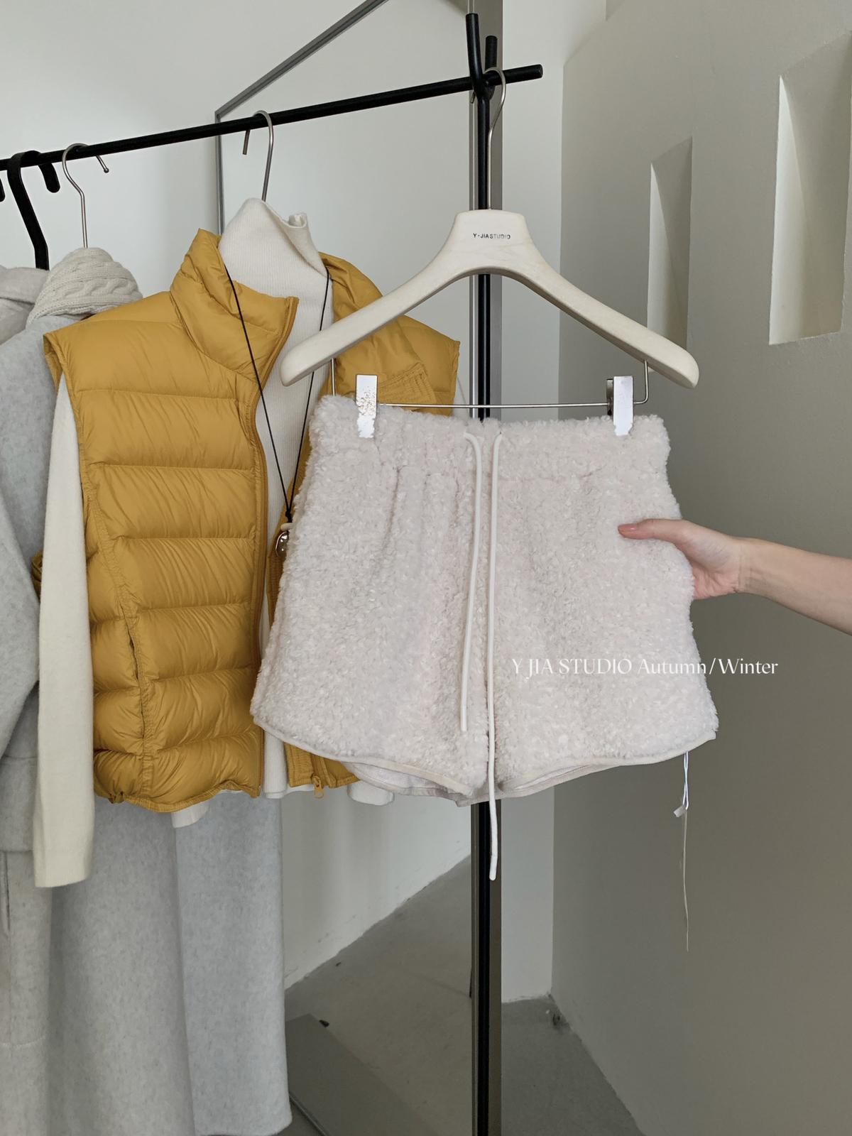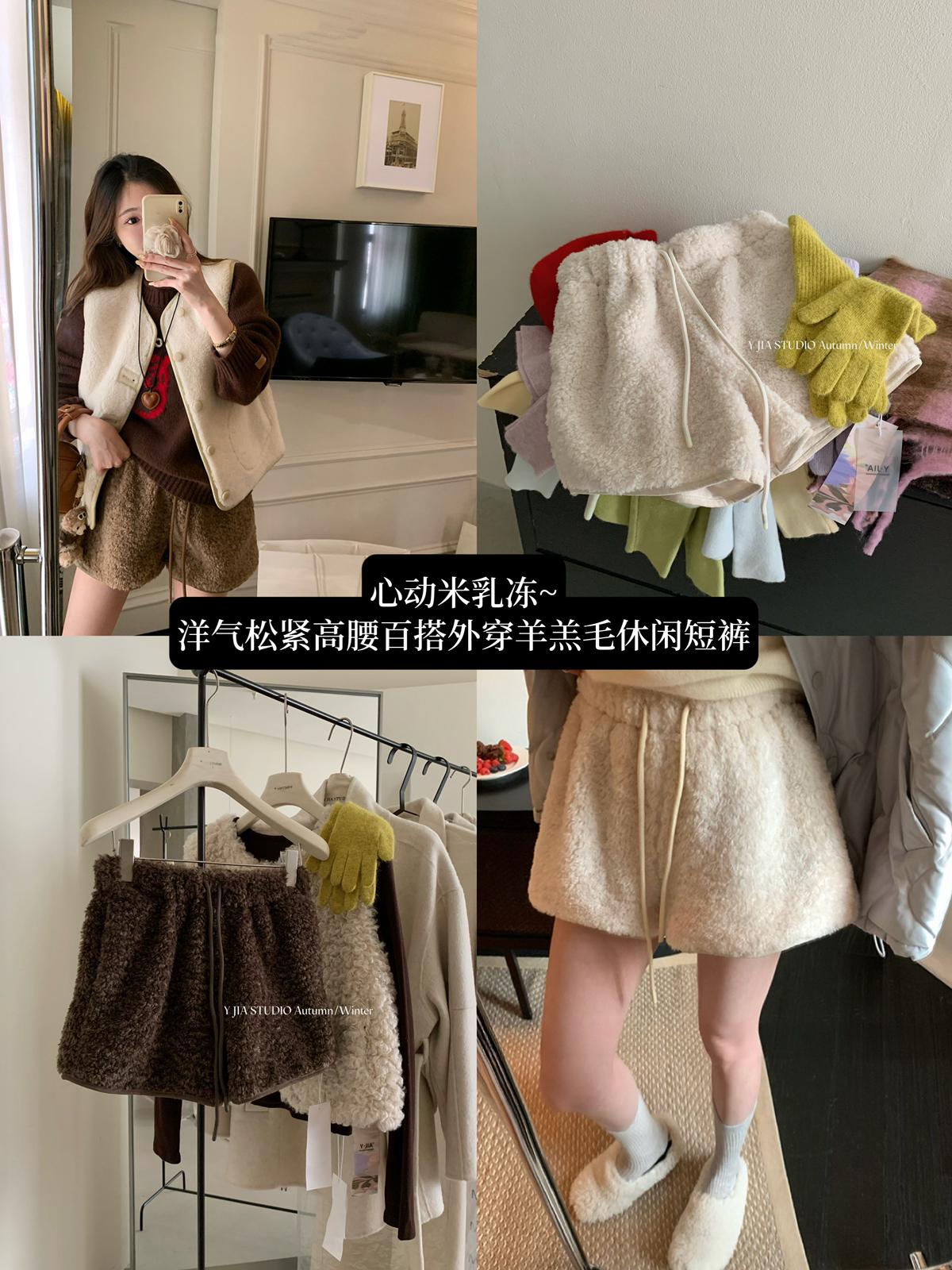 3. 【C7750】心動米乳凍~ 洋氣鬆緊高腰百搭外穿毛絨休閒短褲