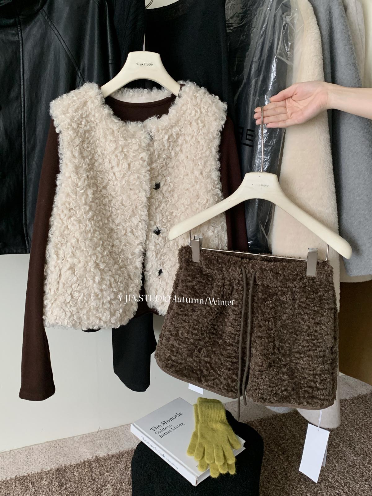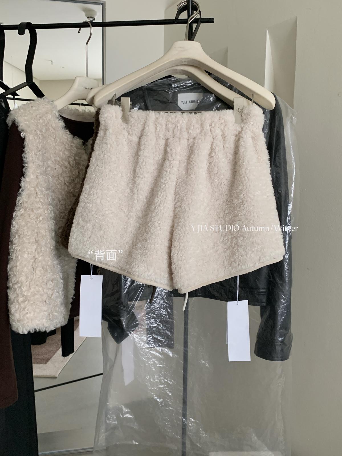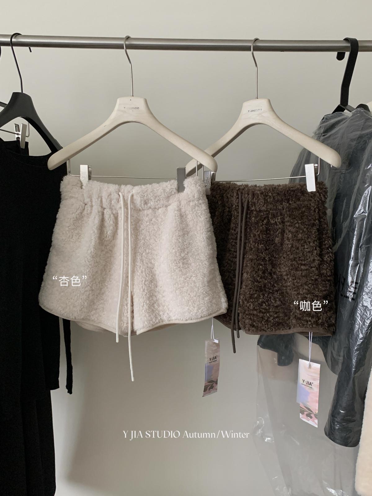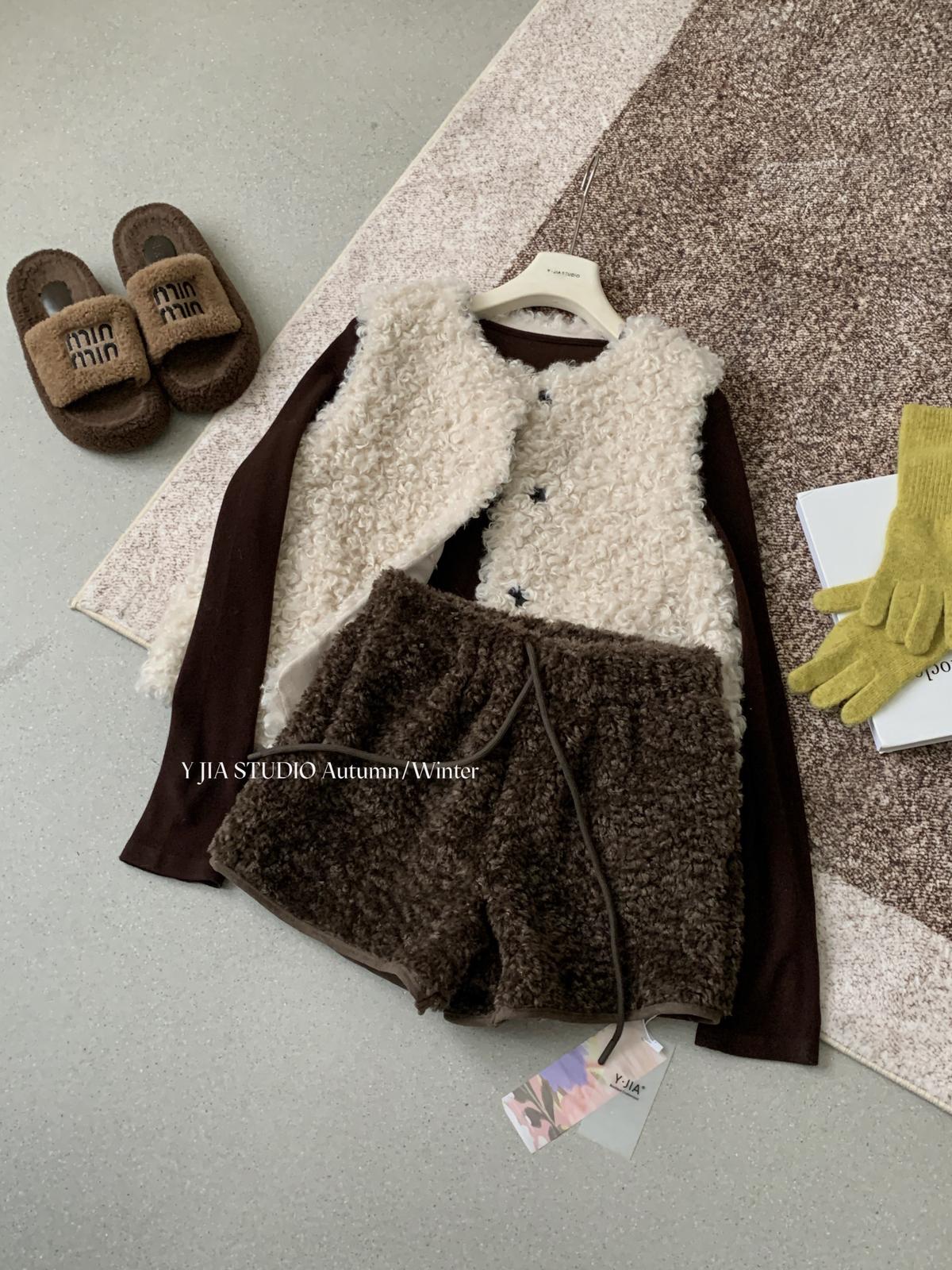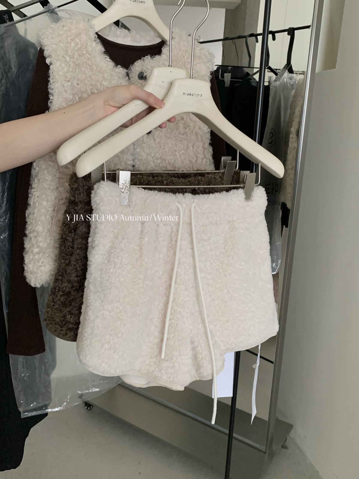 3. 【C7750】心動米乳凍~ 洋氣鬆緊高腰百搭外穿毛絨休閒短褲