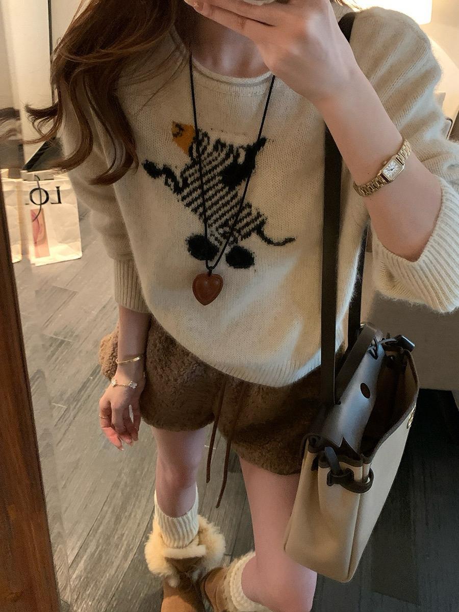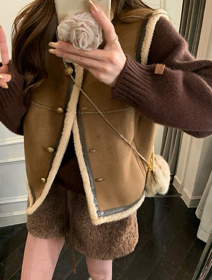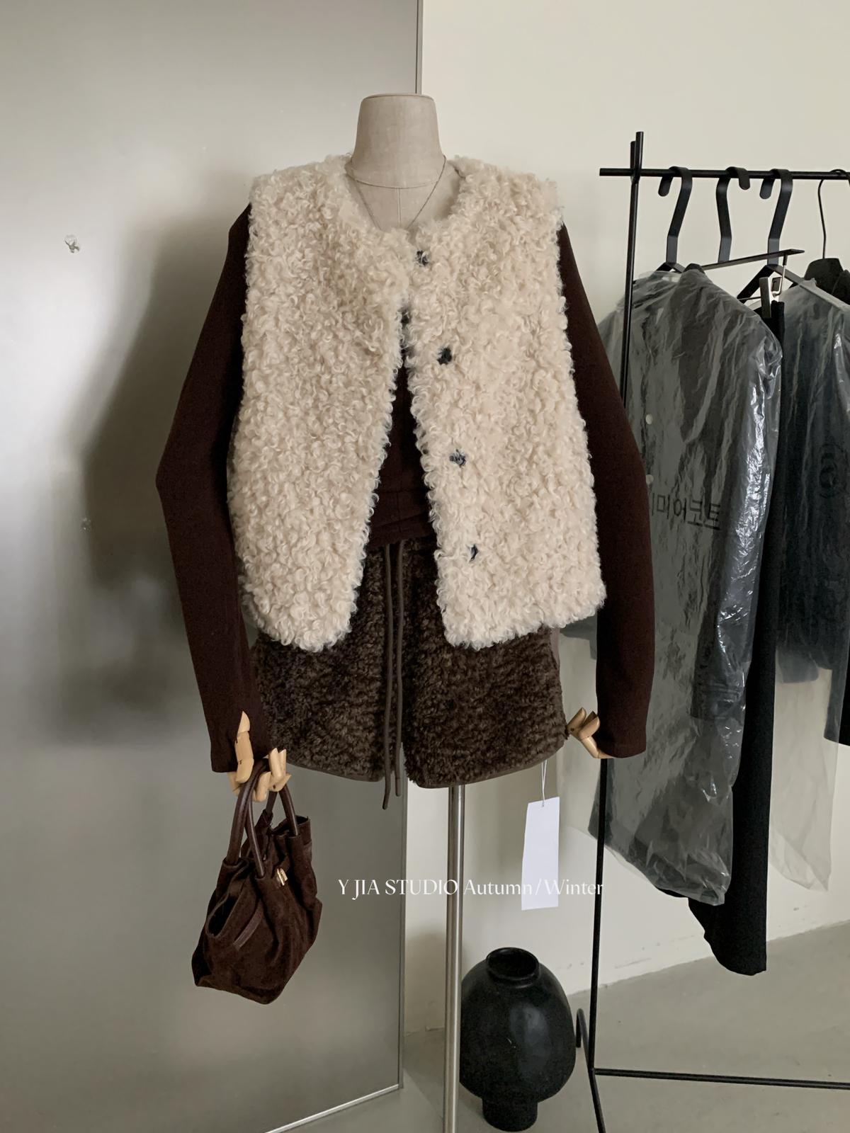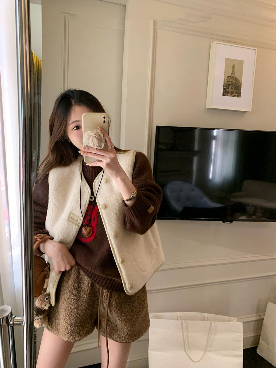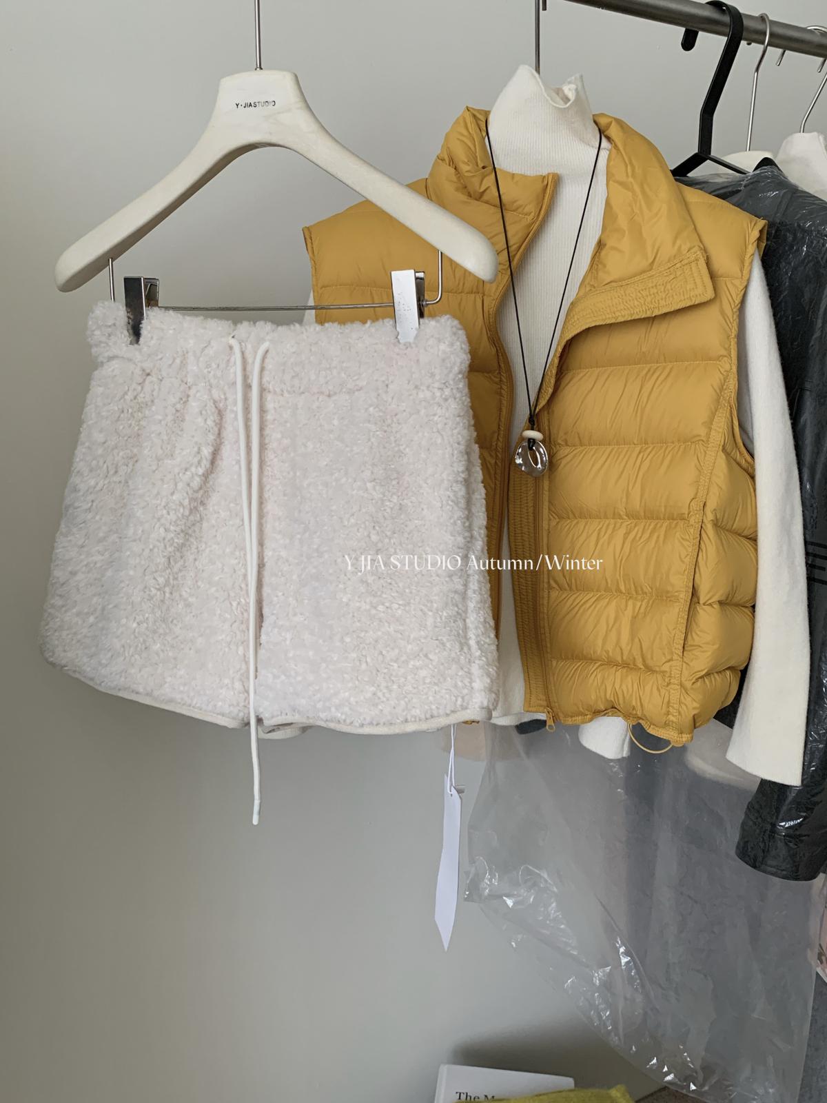 3. 【C7750】心動米乳凍~ 洋氣鬆緊高腰百搭外穿毛絨休閒短褲