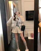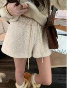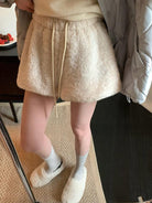 【C7750】心動米乳凍~ 洋氣鬆緊高腰百搭外穿毛絨休閒短褲