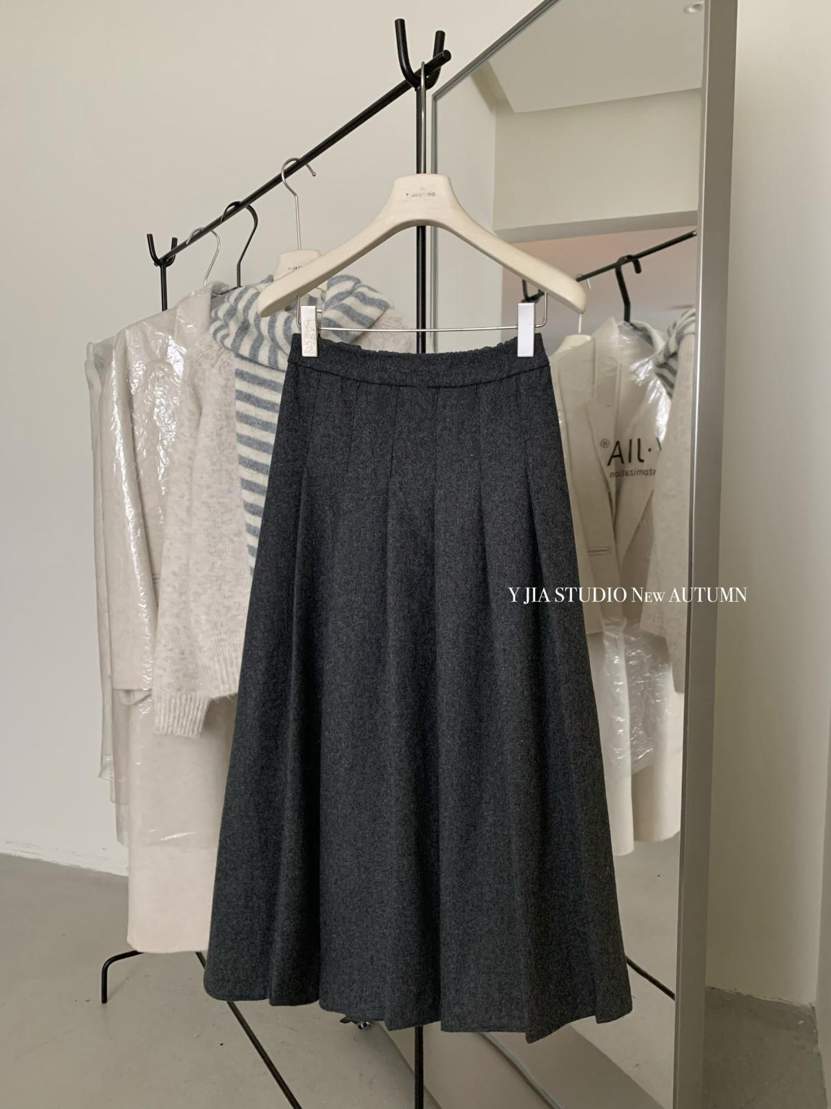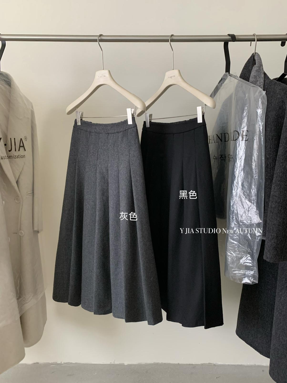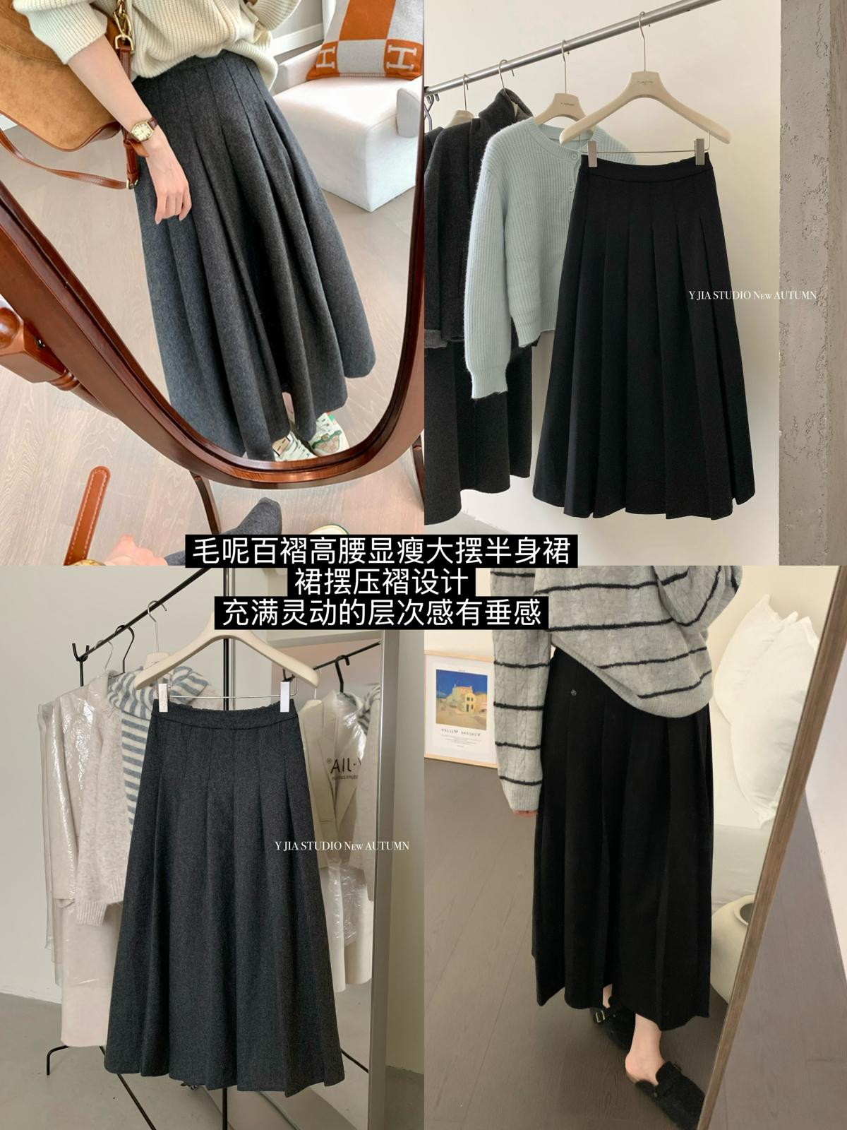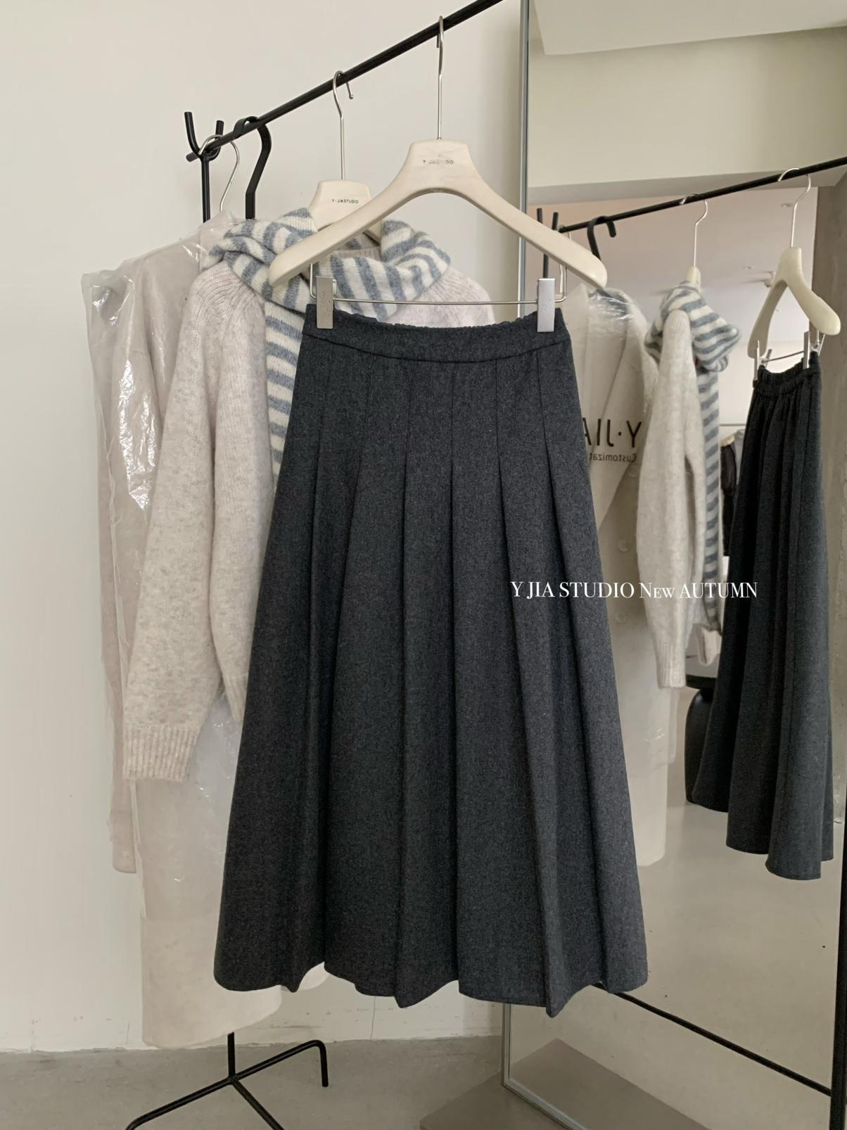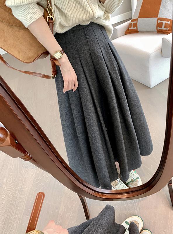 3. 【C7755】毛呢百褶高腰顯瘦大裙襬A字百搭半身裙
