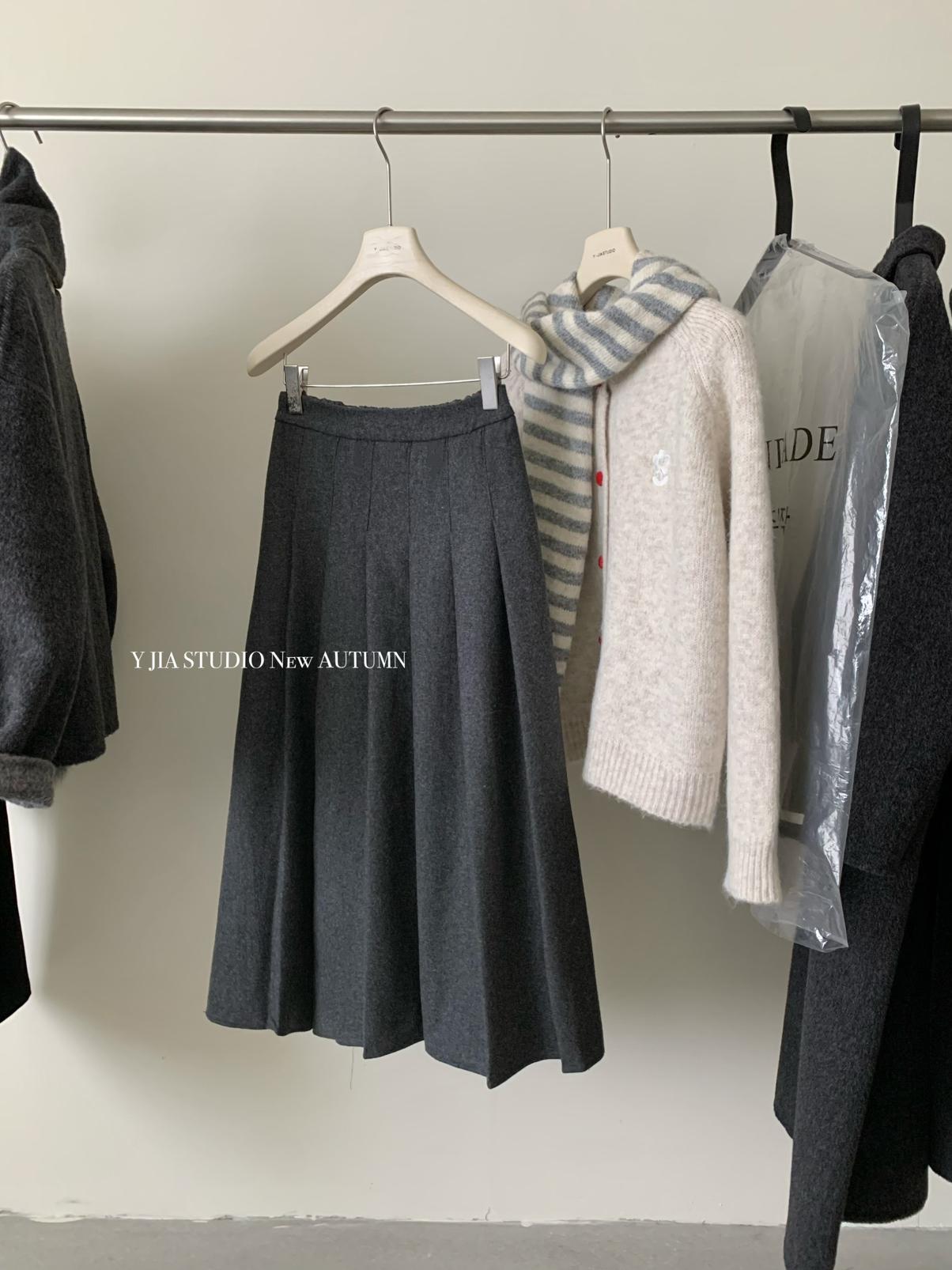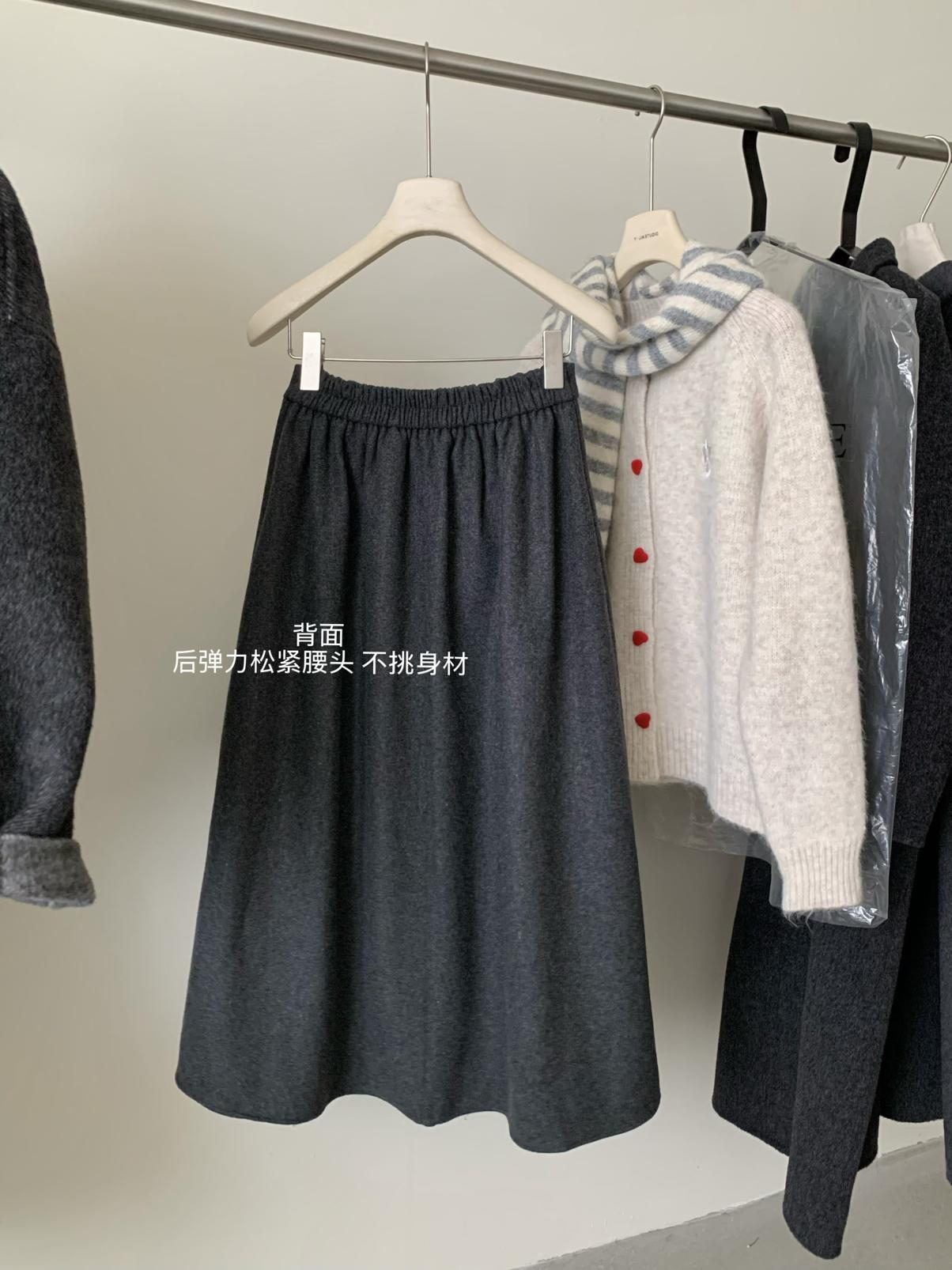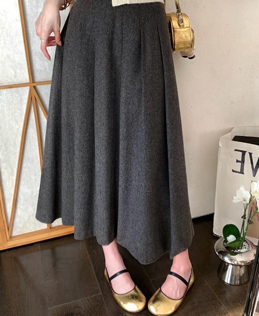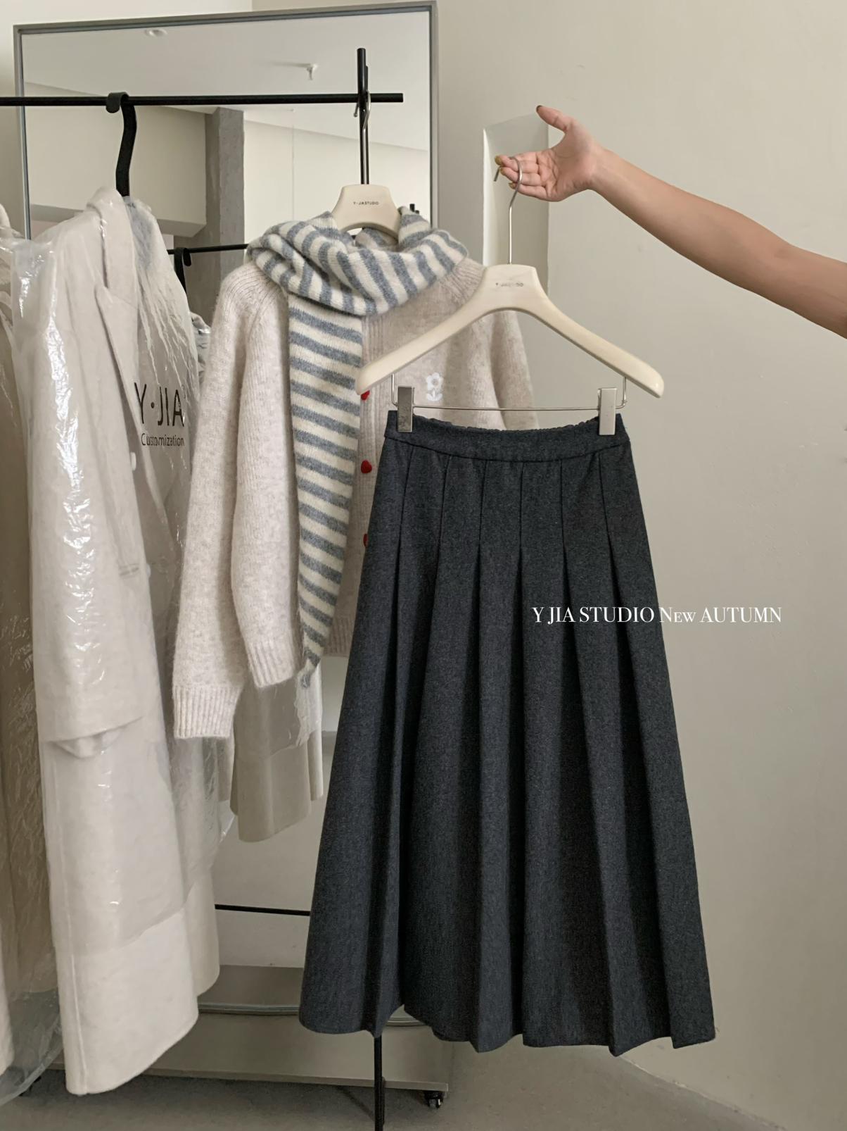 3. 【C7755】毛呢百褶高腰顯瘦大裙襬A字百搭半身裙