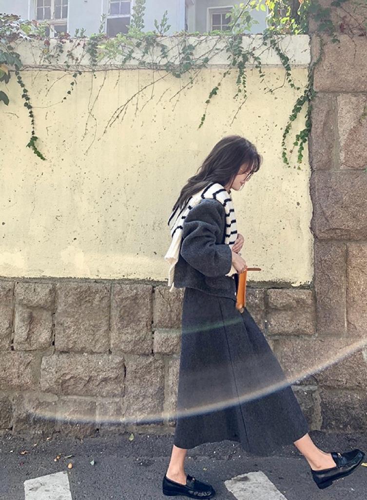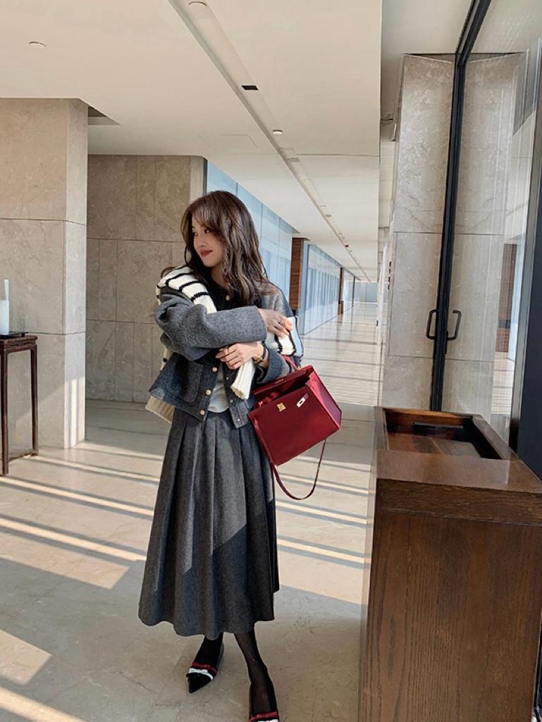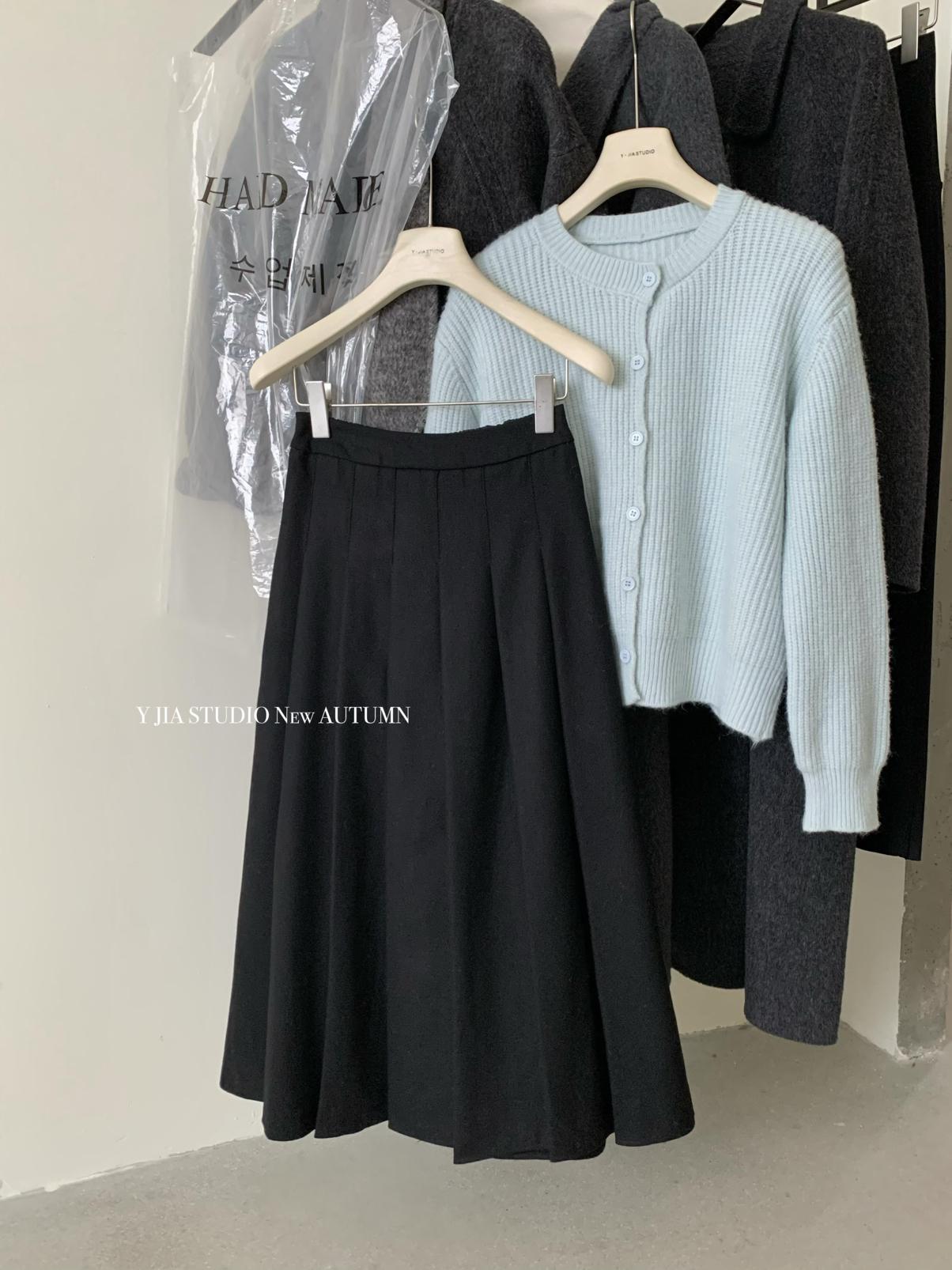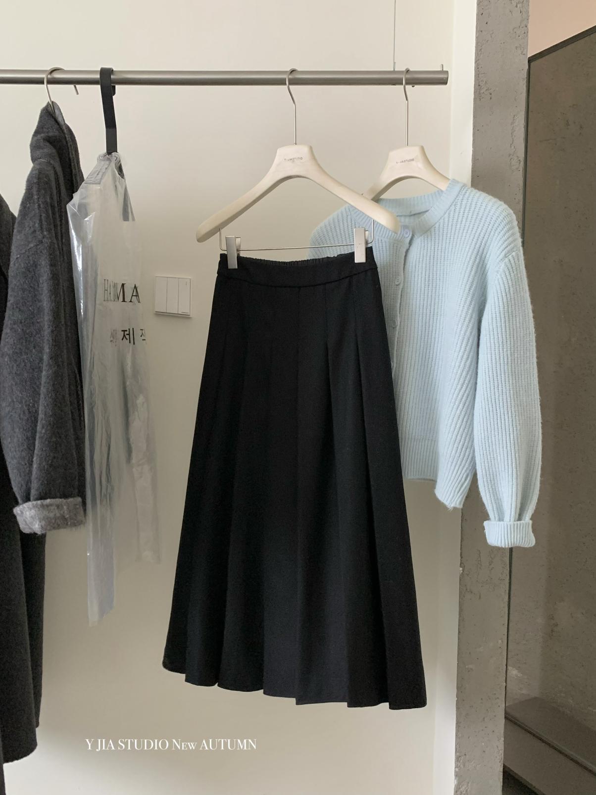 3. 【C7755】毛呢百褶高腰顯瘦大裙襬A字百搭半身裙