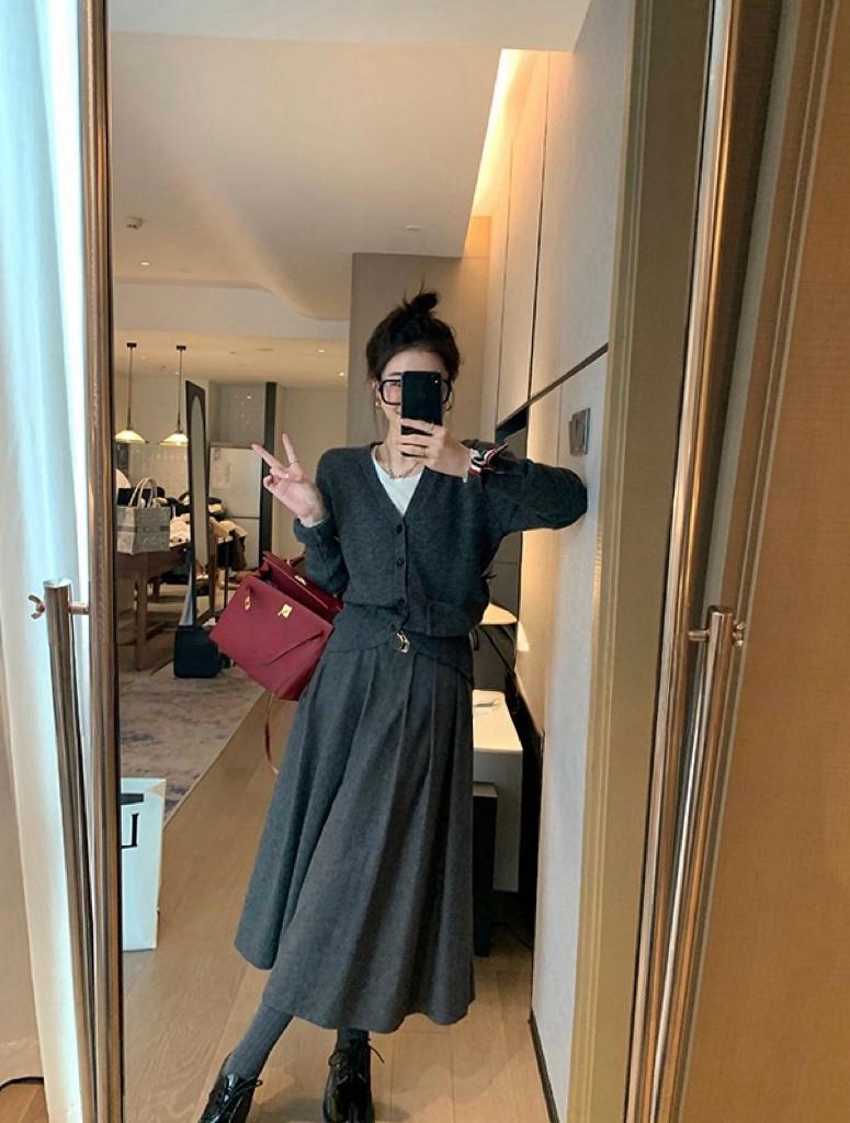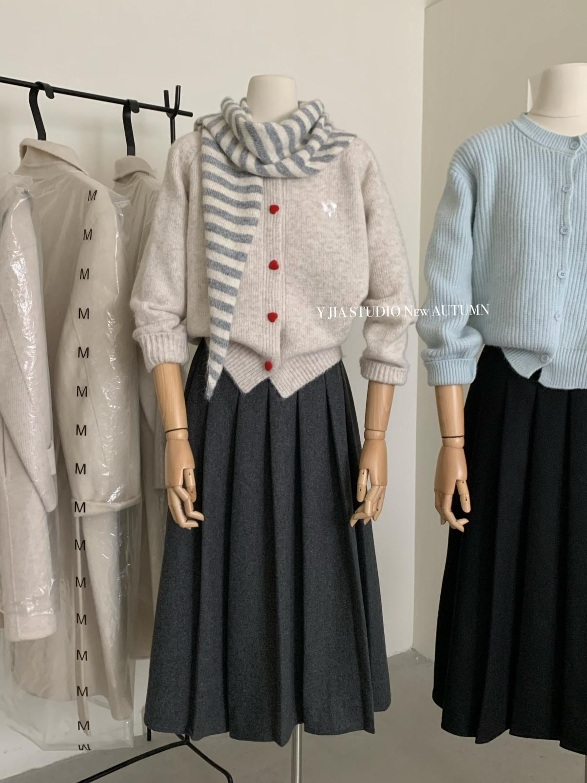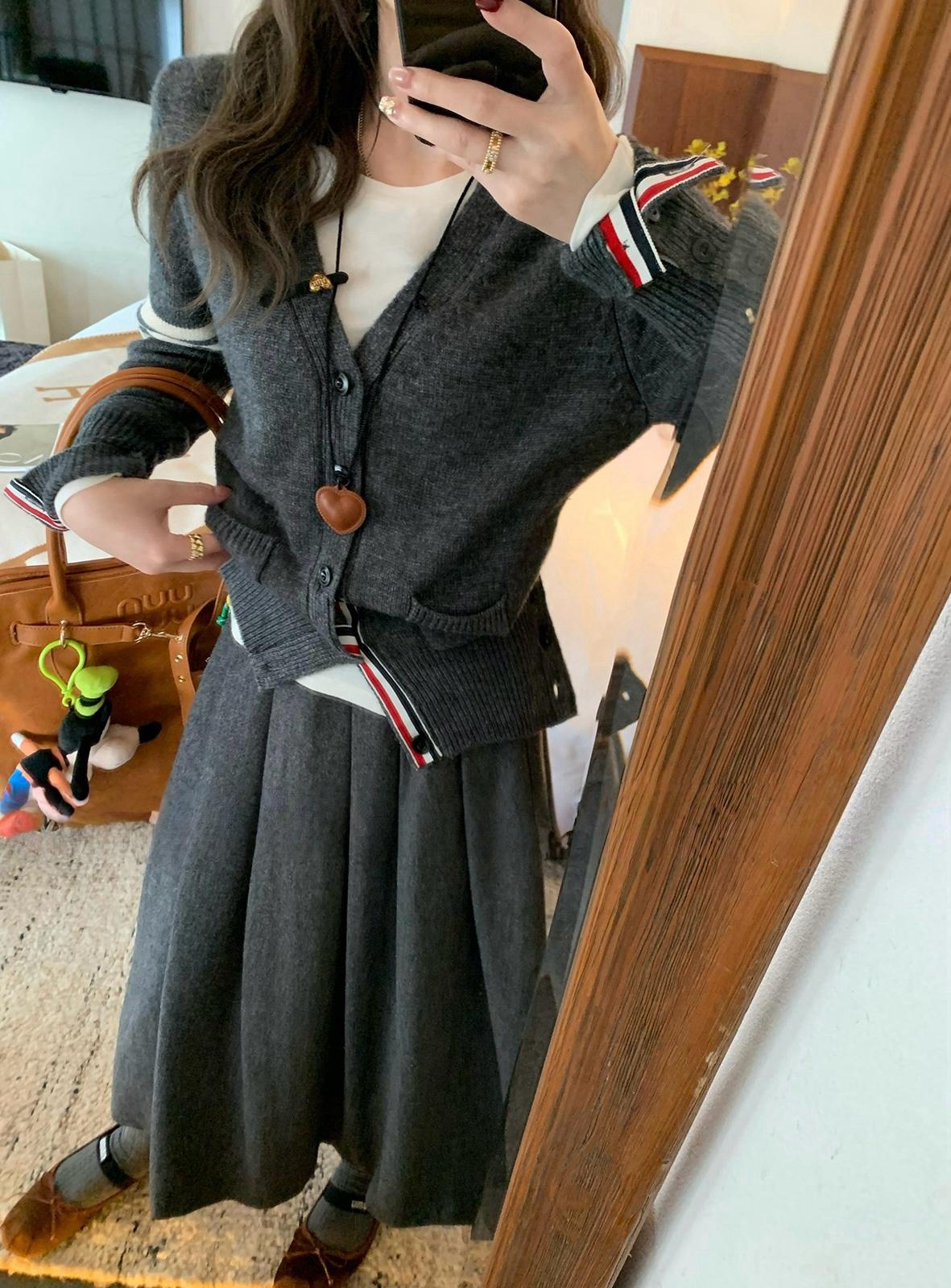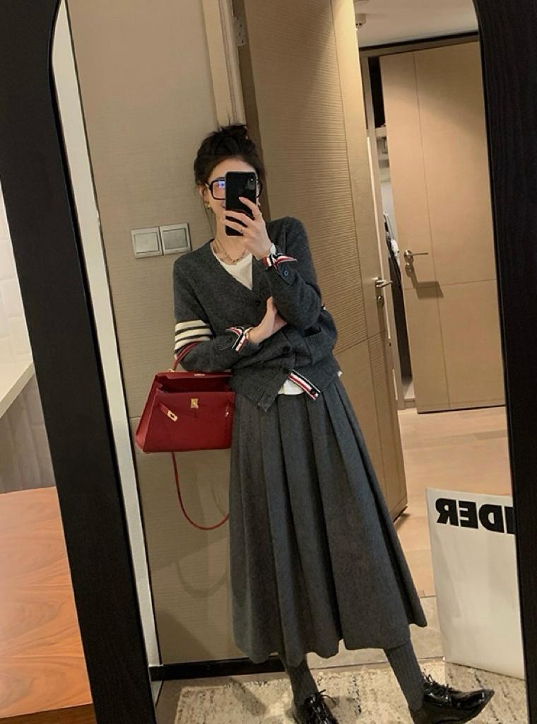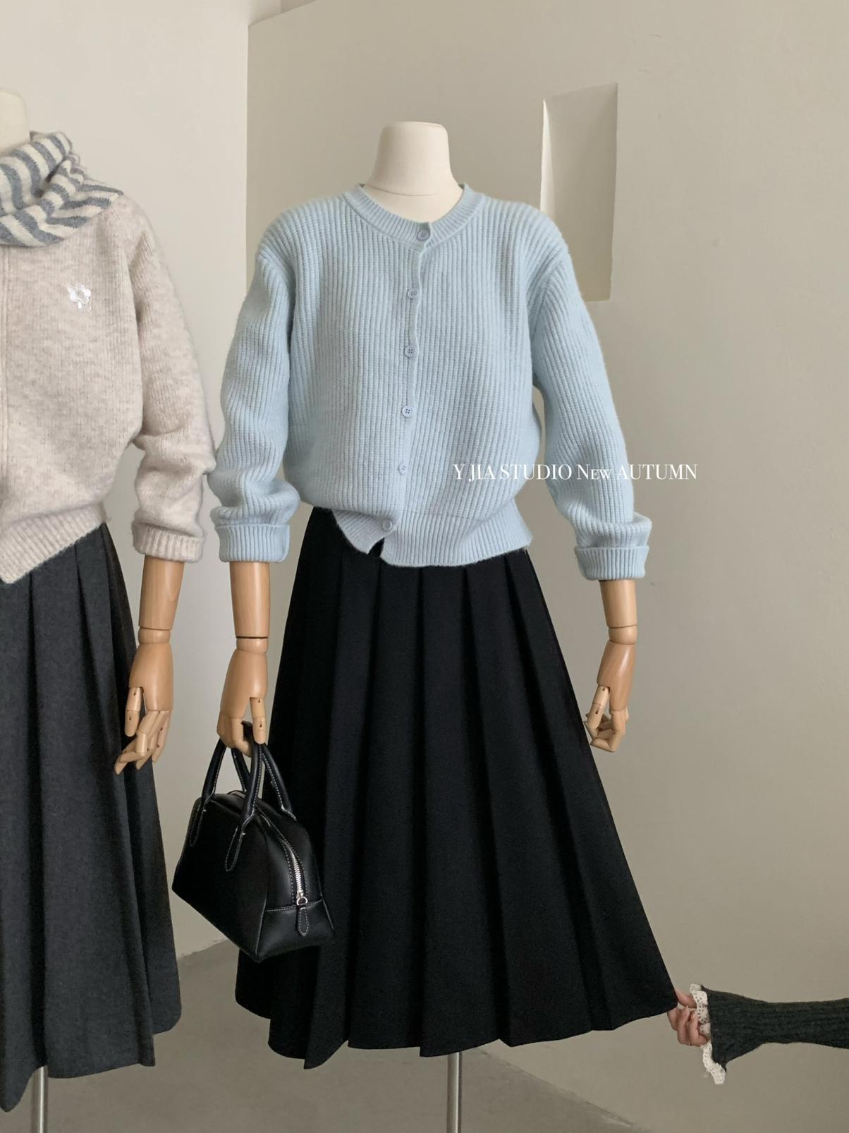 3. 【C7755】毛呢百褶高腰顯瘦大裙襬A字百搭半身裙