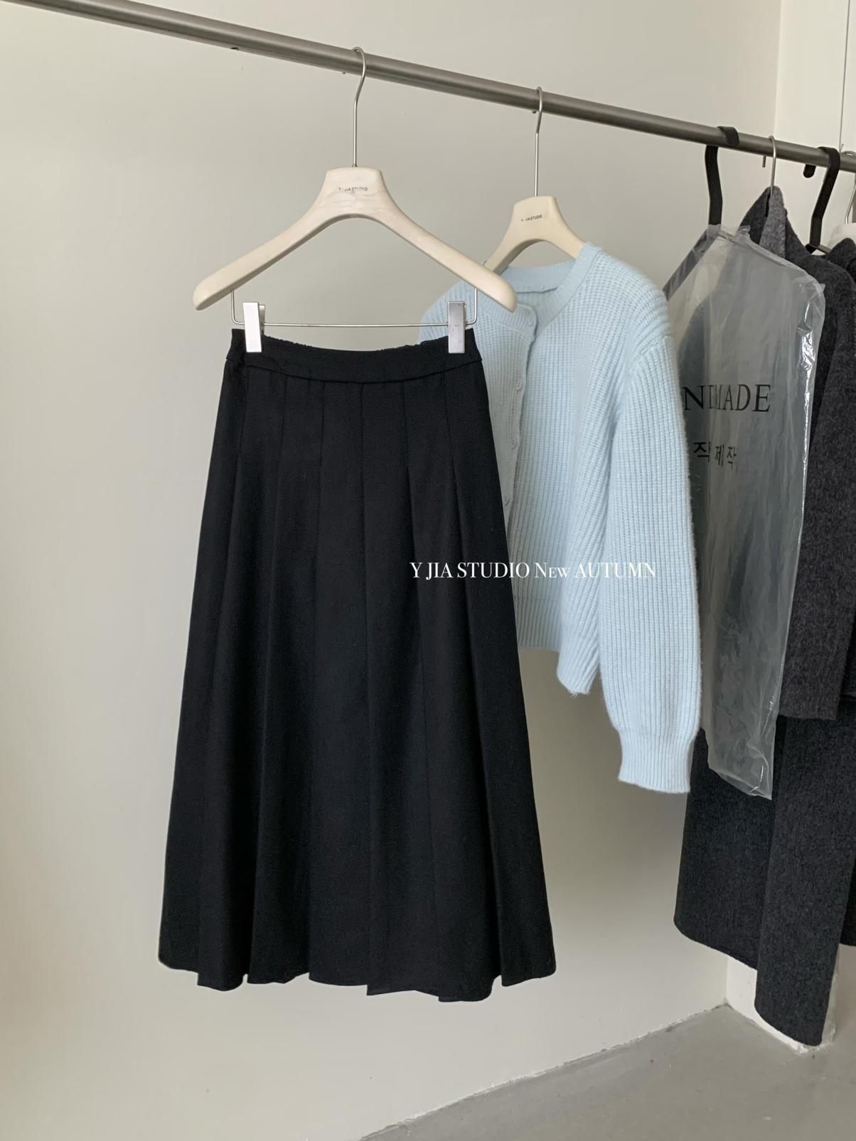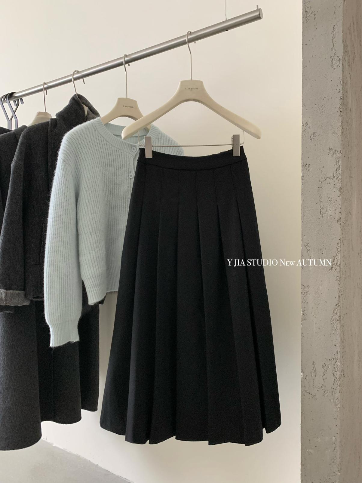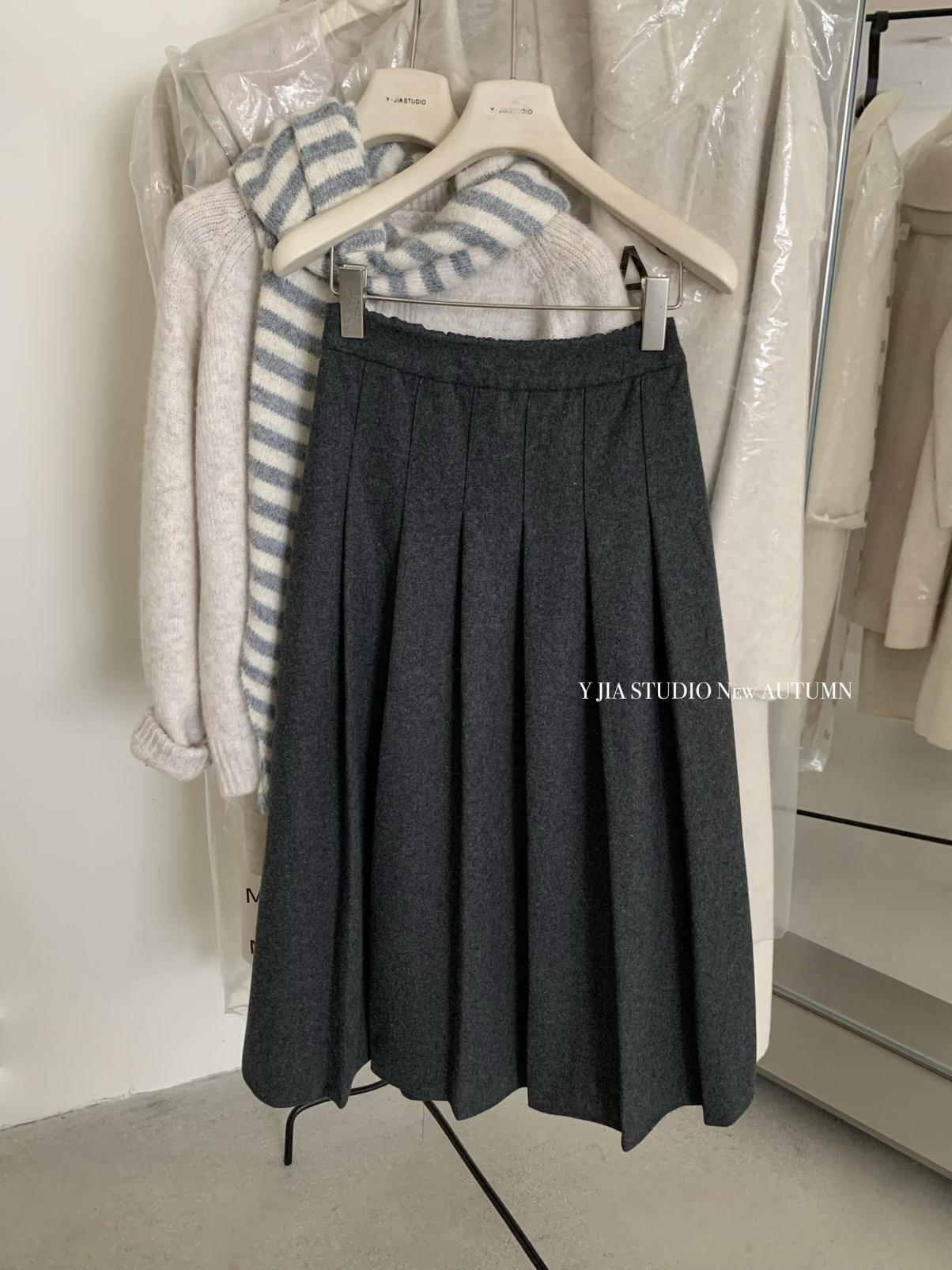 【C7755】毛呢百褶高腰顯瘦大裙襬A字百搭半身裙