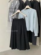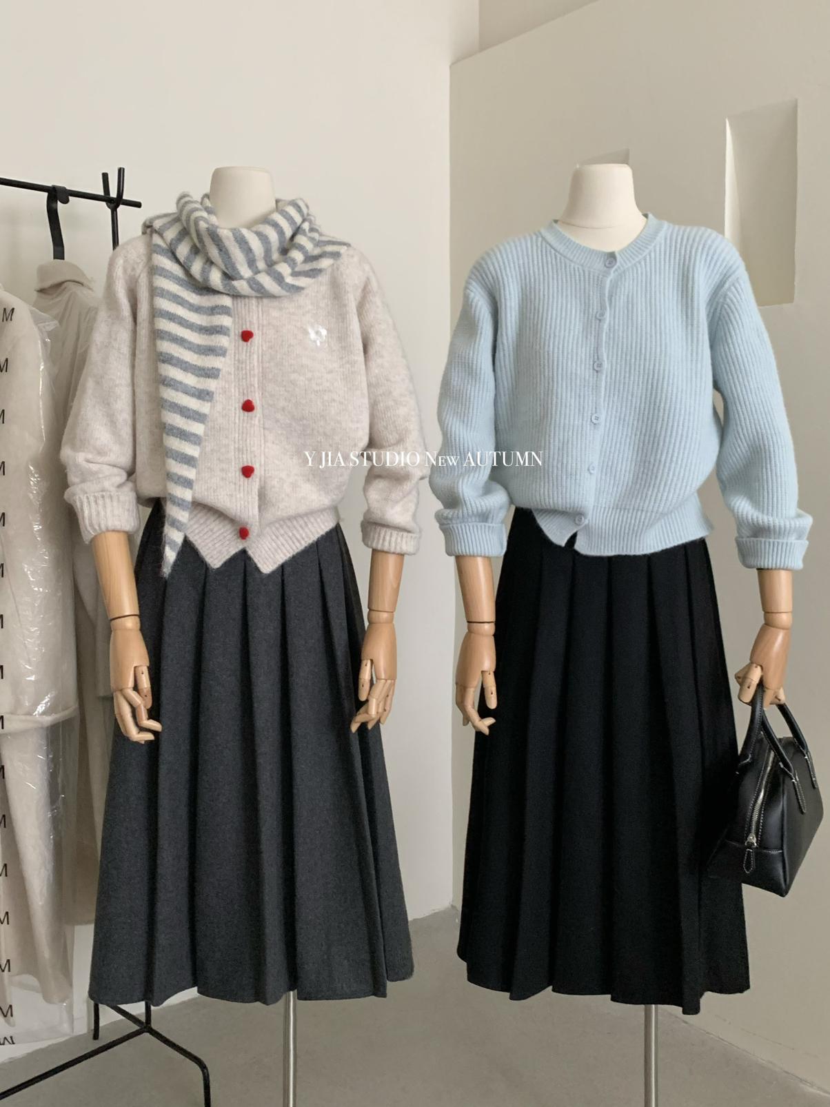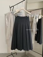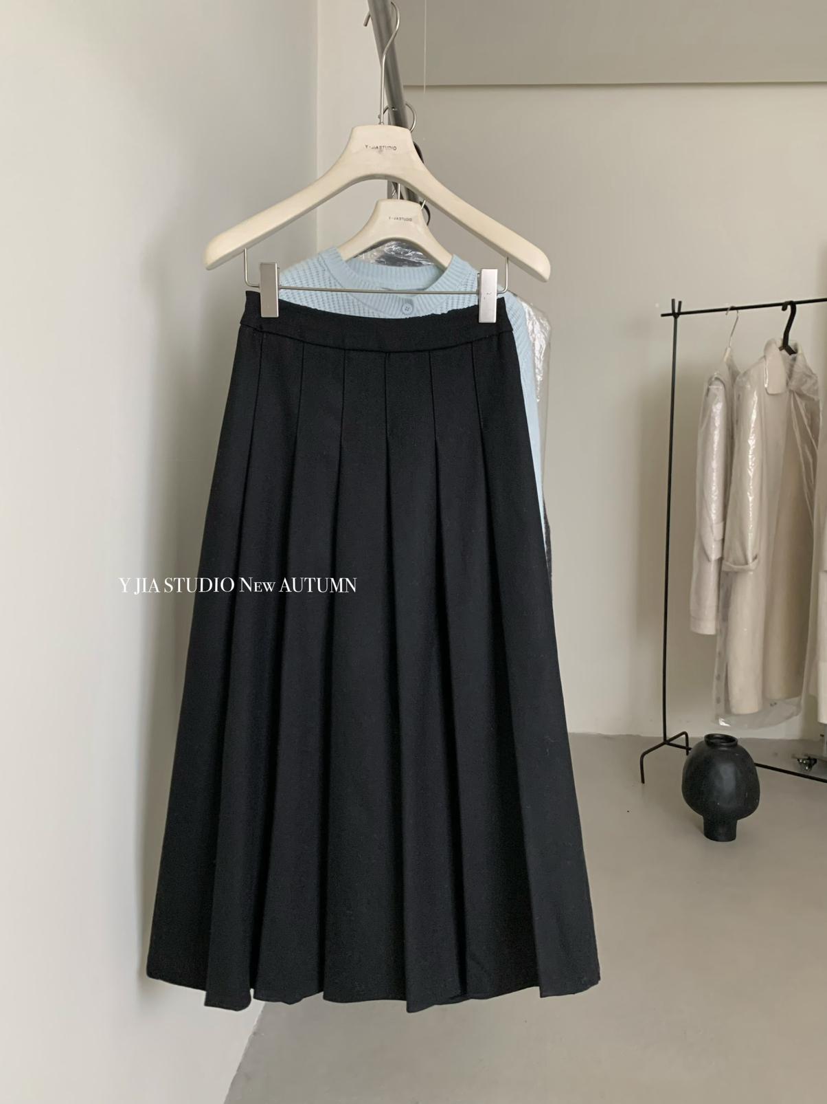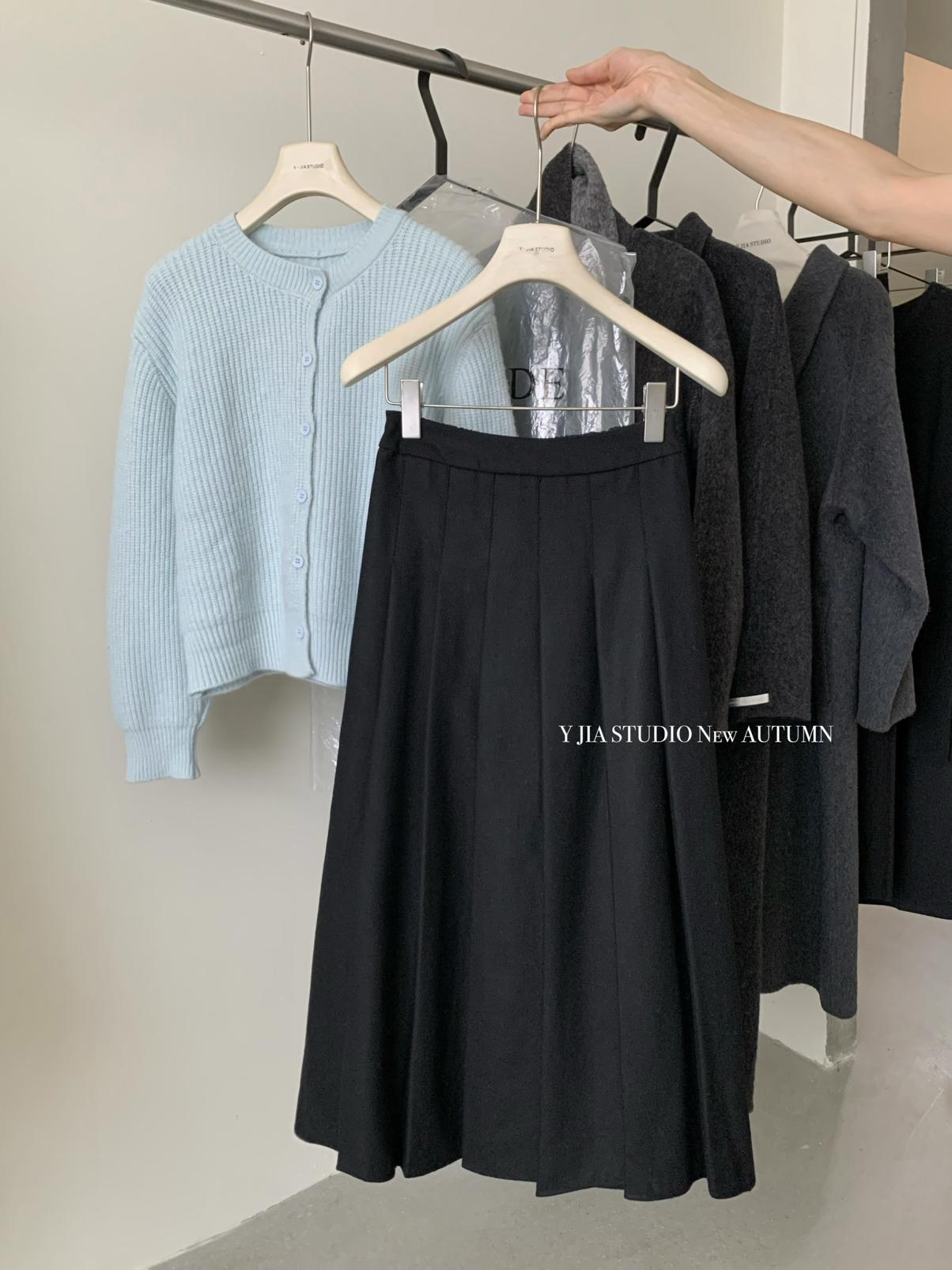 【C7755】毛呢百褶高腰顯瘦大裙襬A字百搭半身裙