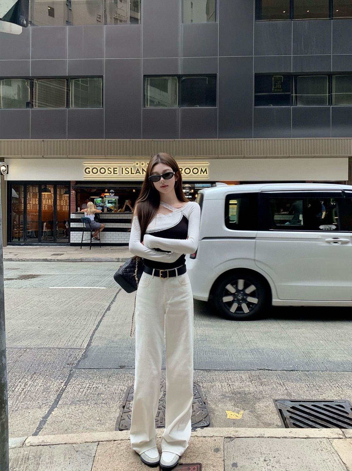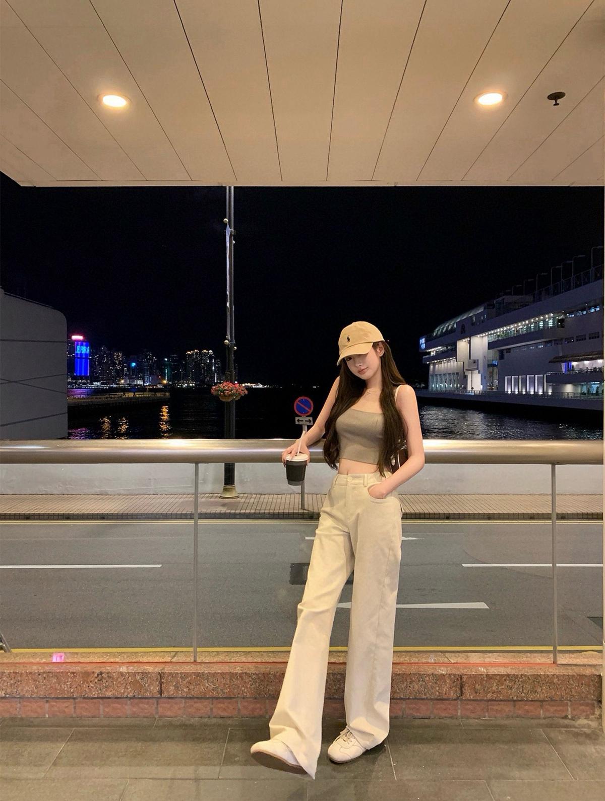 3. 【C7760】韓系簡約微喇高腰顯瘦百搭休閒寬鬆顯瘦牛仔褲