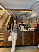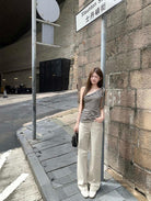 【C7760】韓系簡約微喇高腰顯瘦百搭休閒寬鬆顯瘦牛仔褲