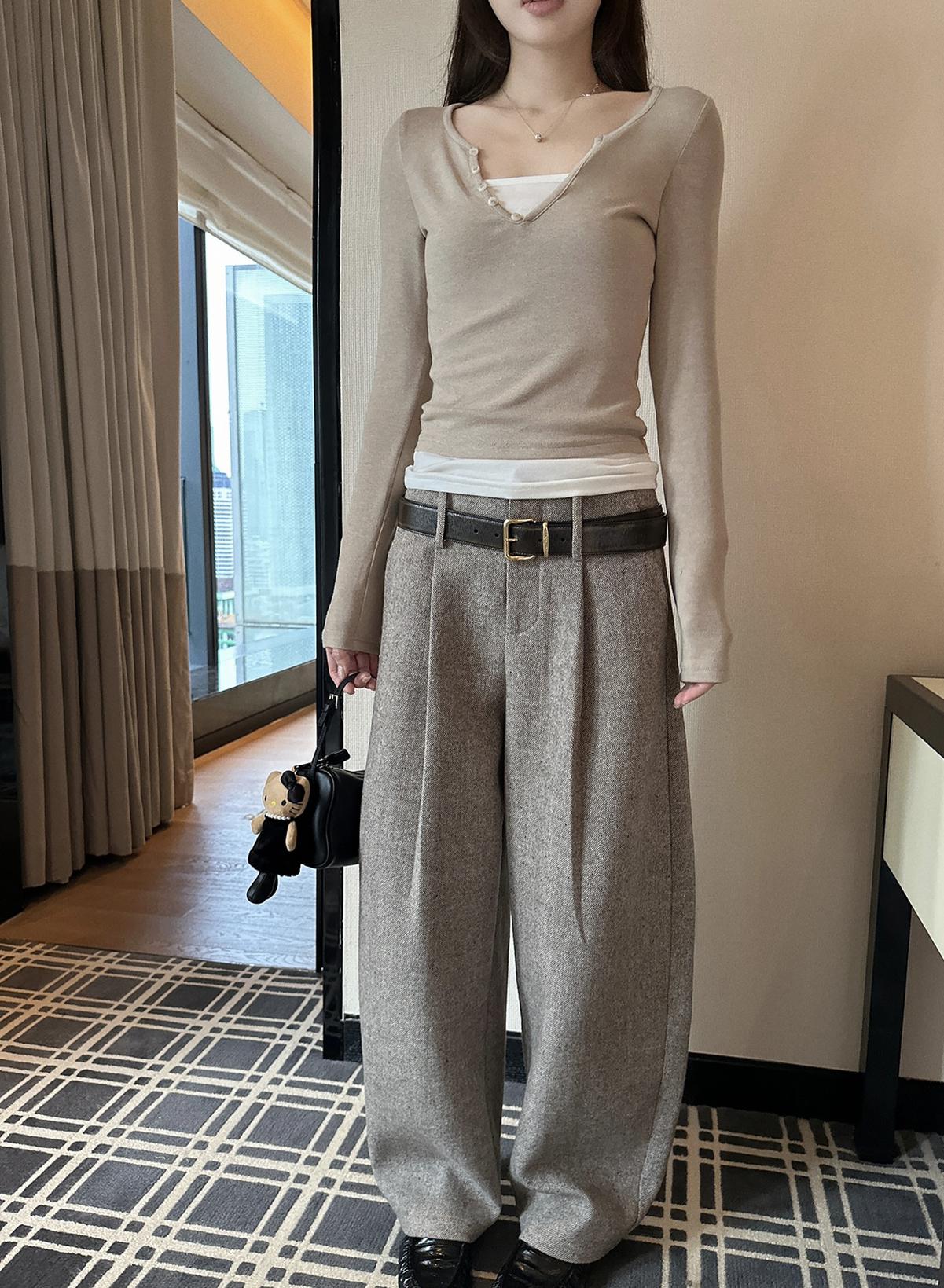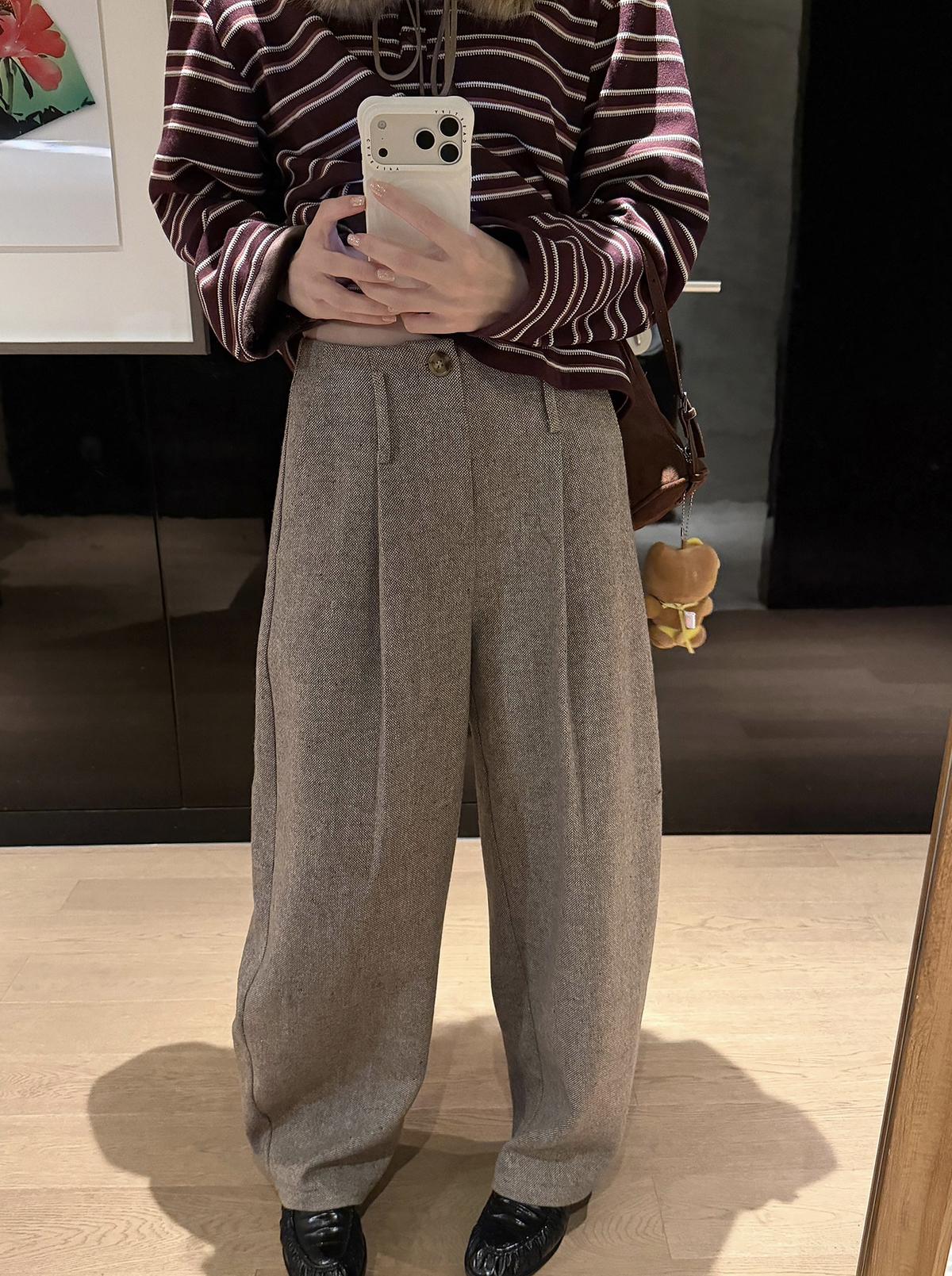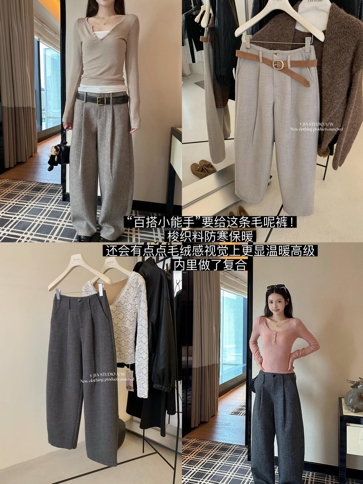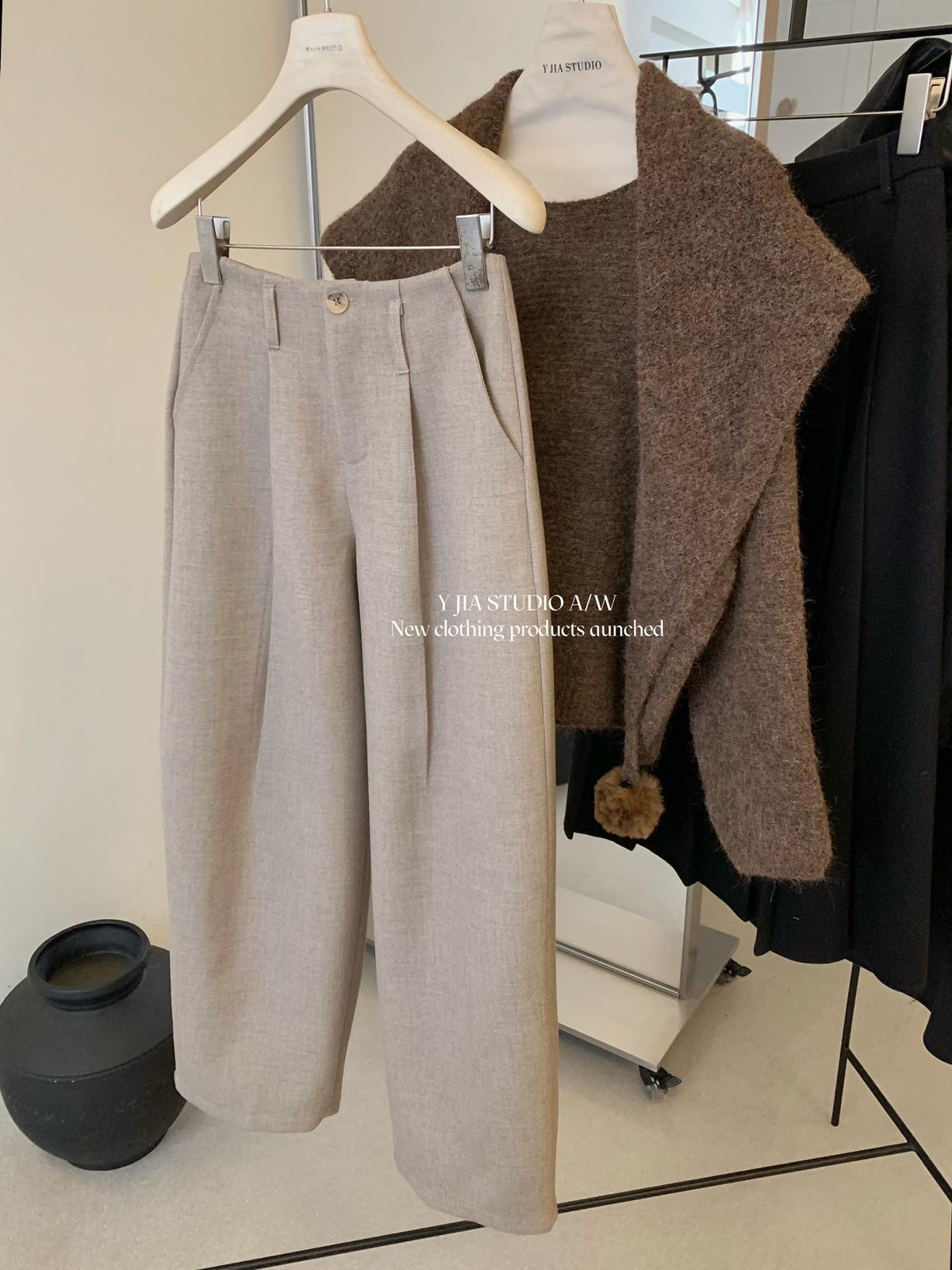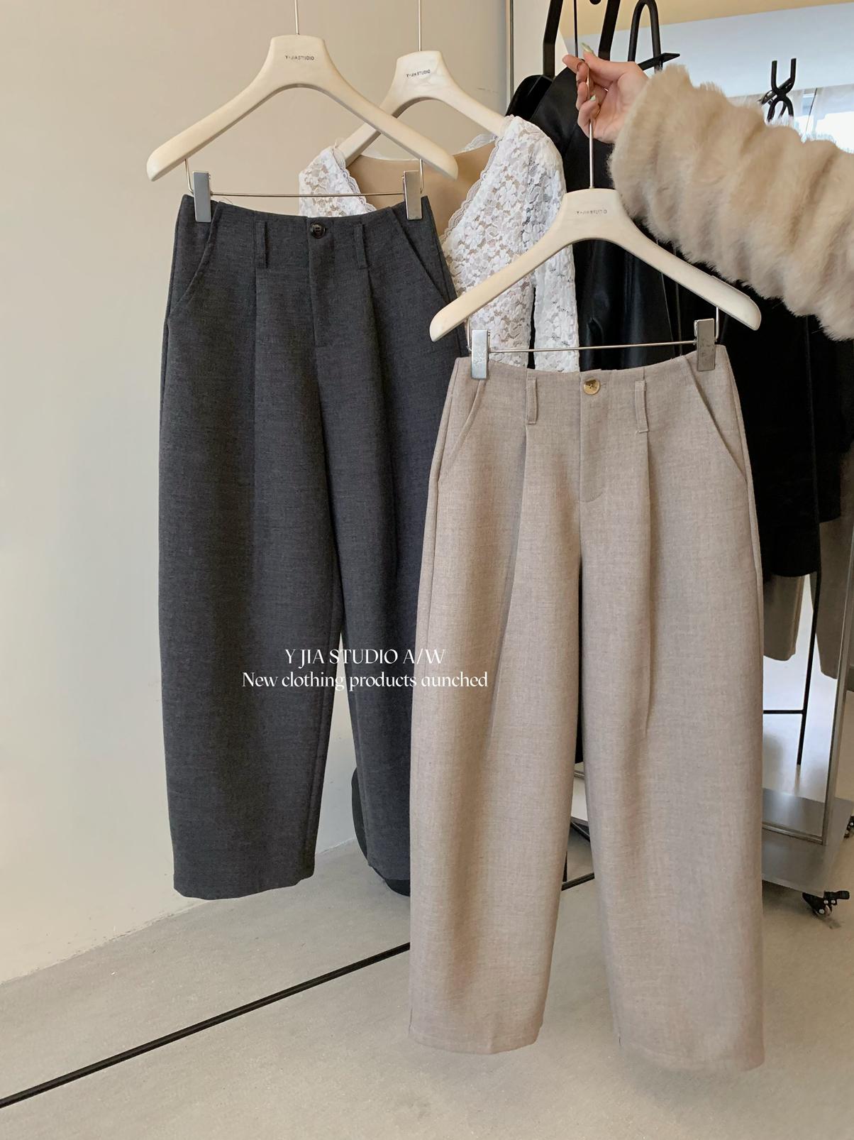【C8155】“百搭小能手”秋冬顯瘦九分毛呢休閒褲