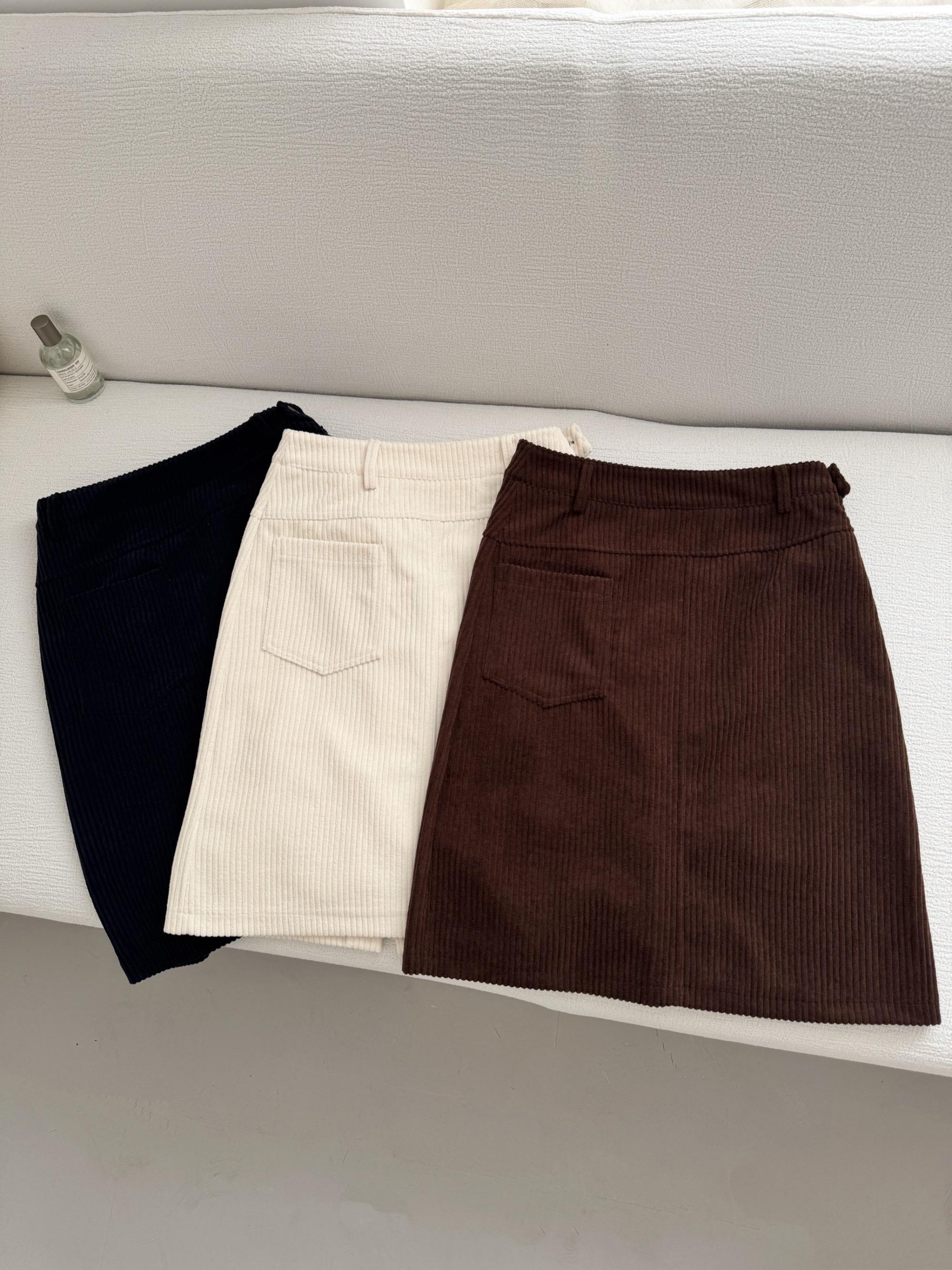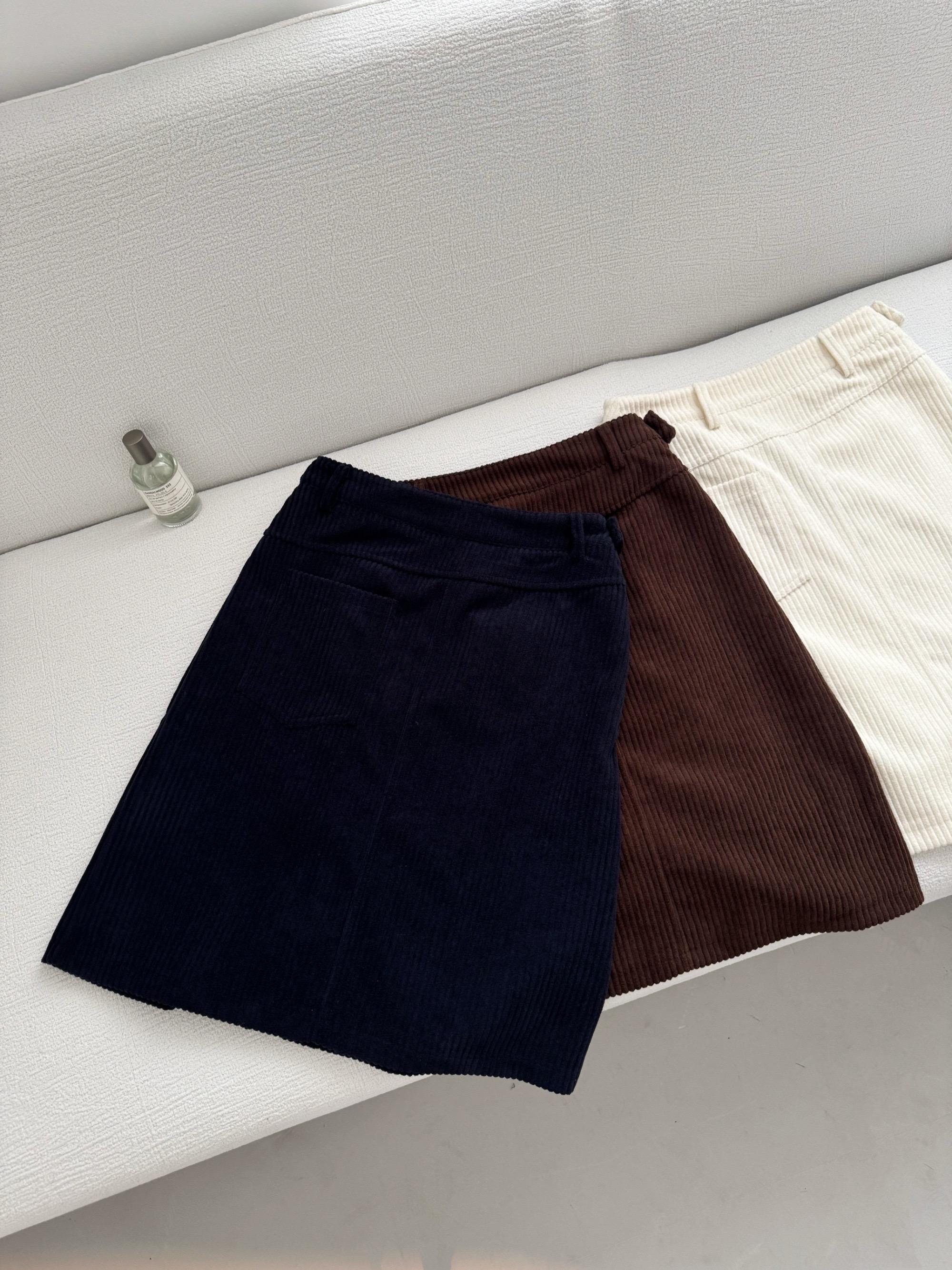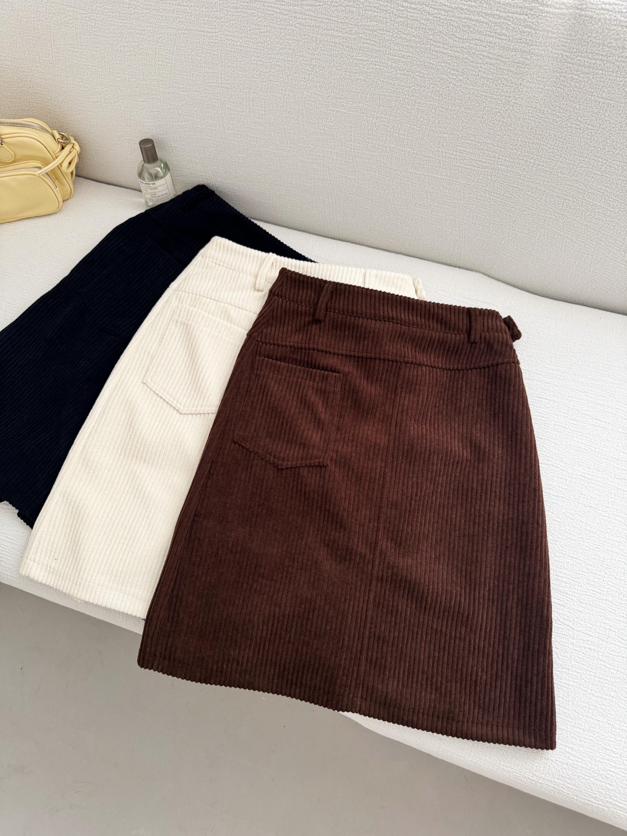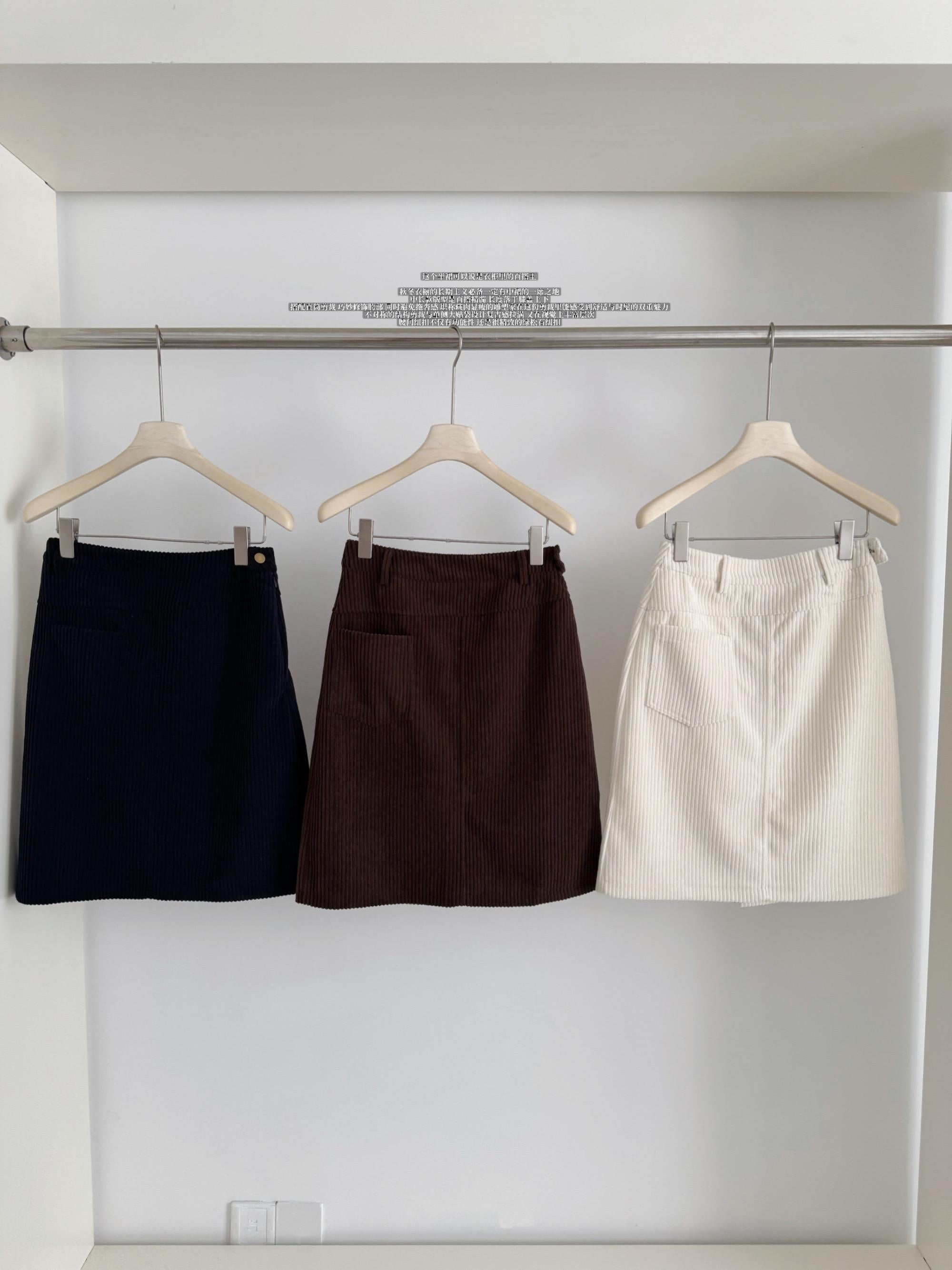 【C8232】韓系簡約不對稱斜裁直筒燈芯絨半身裙