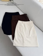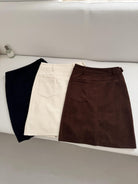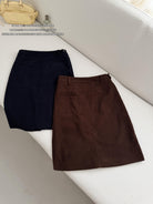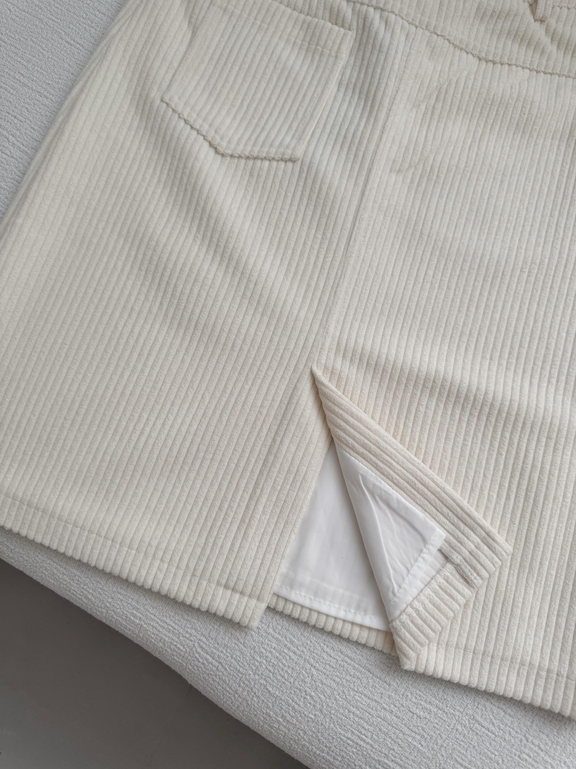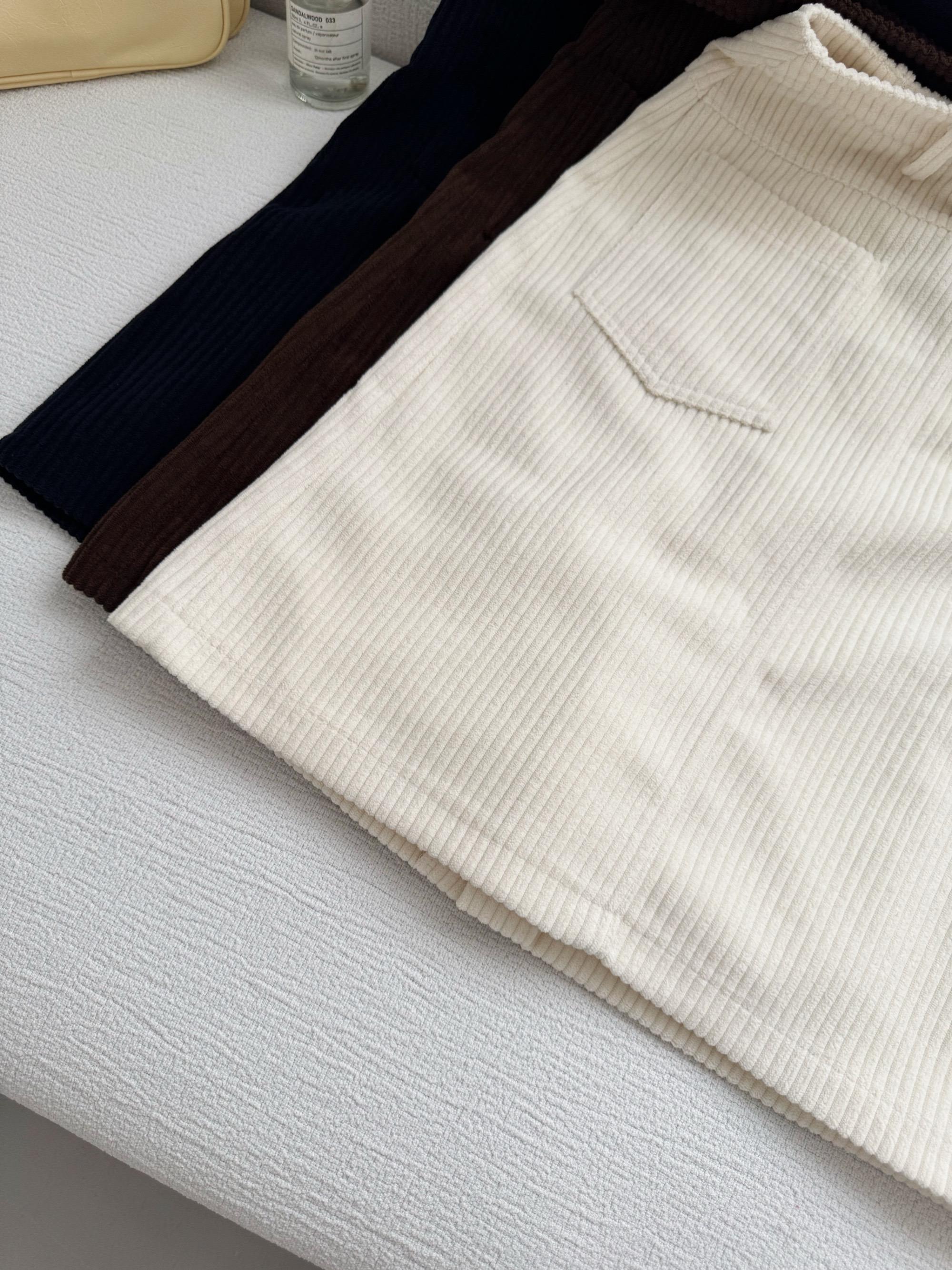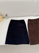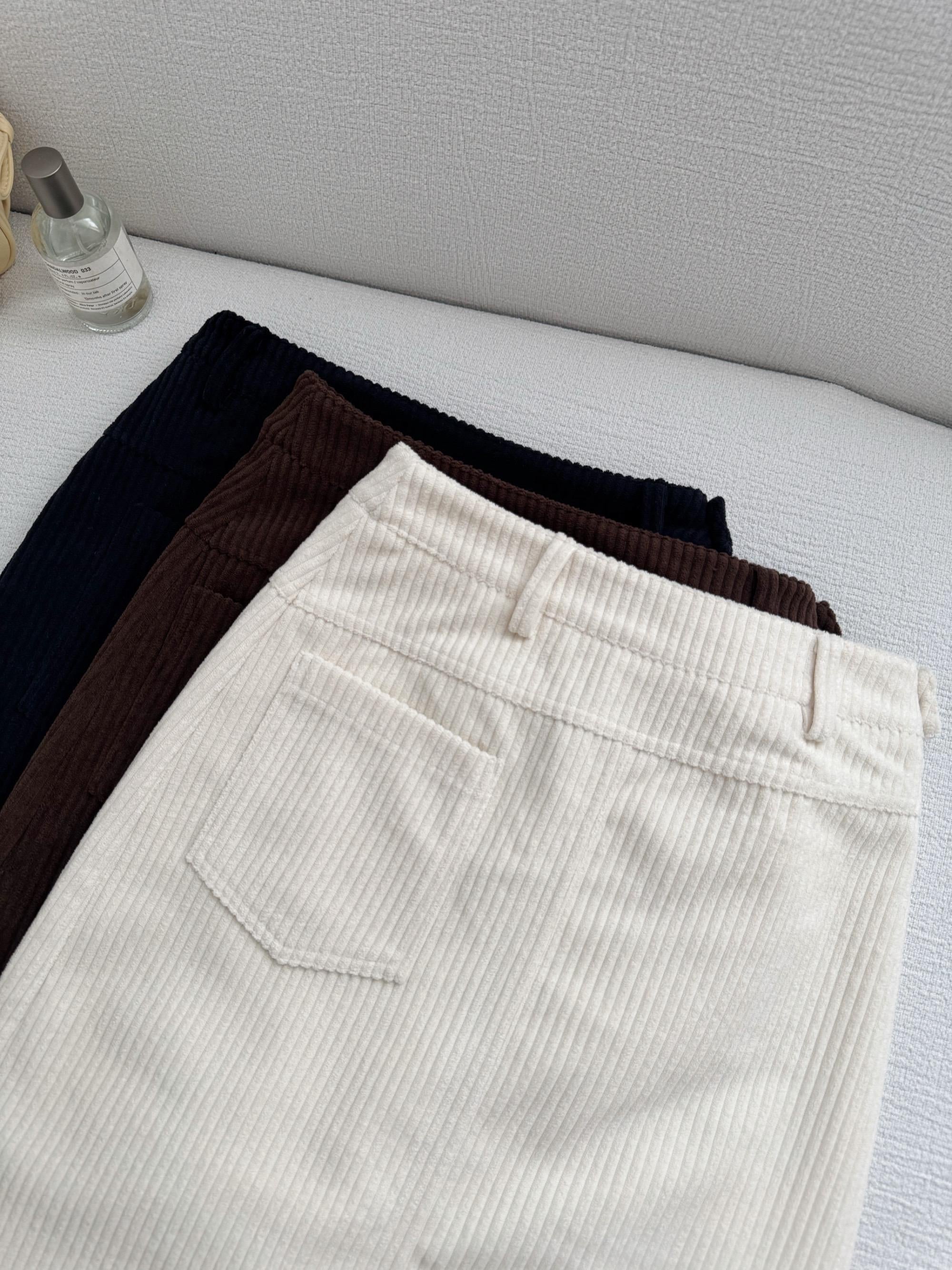 【C8232】韓系簡約不對稱斜裁直筒燈芯絨半身裙