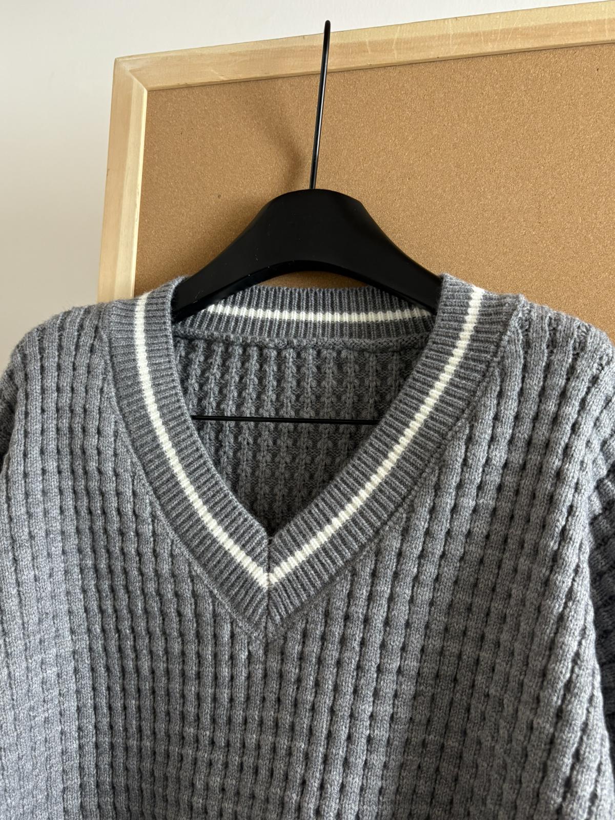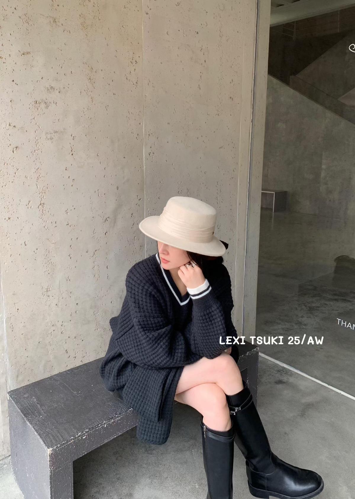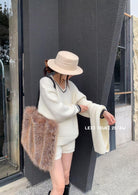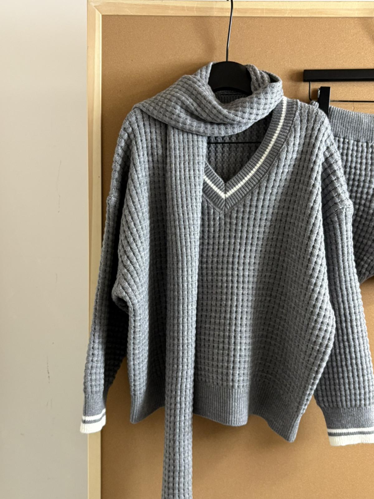 3. 【C8266】洋氣v領撞色寬鬆大版毛衣+短褲加厚針織套裝(配圍巾)