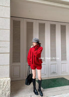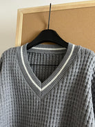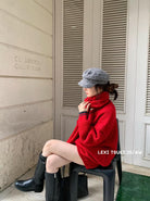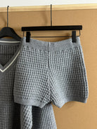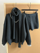【C8266】洋氣v領撞色寬鬆大版毛衣+短褲加厚針織套裝(配圍巾)
