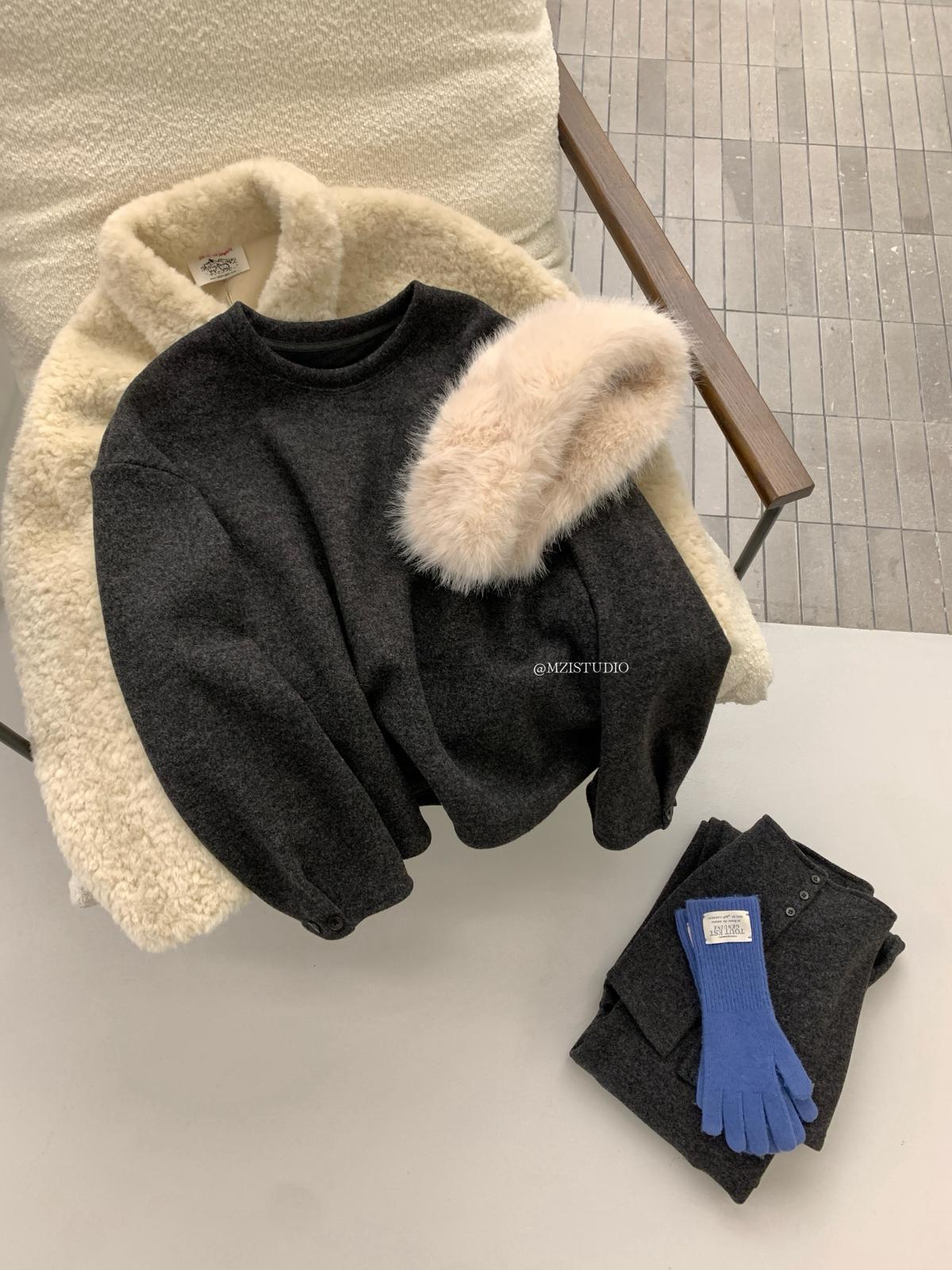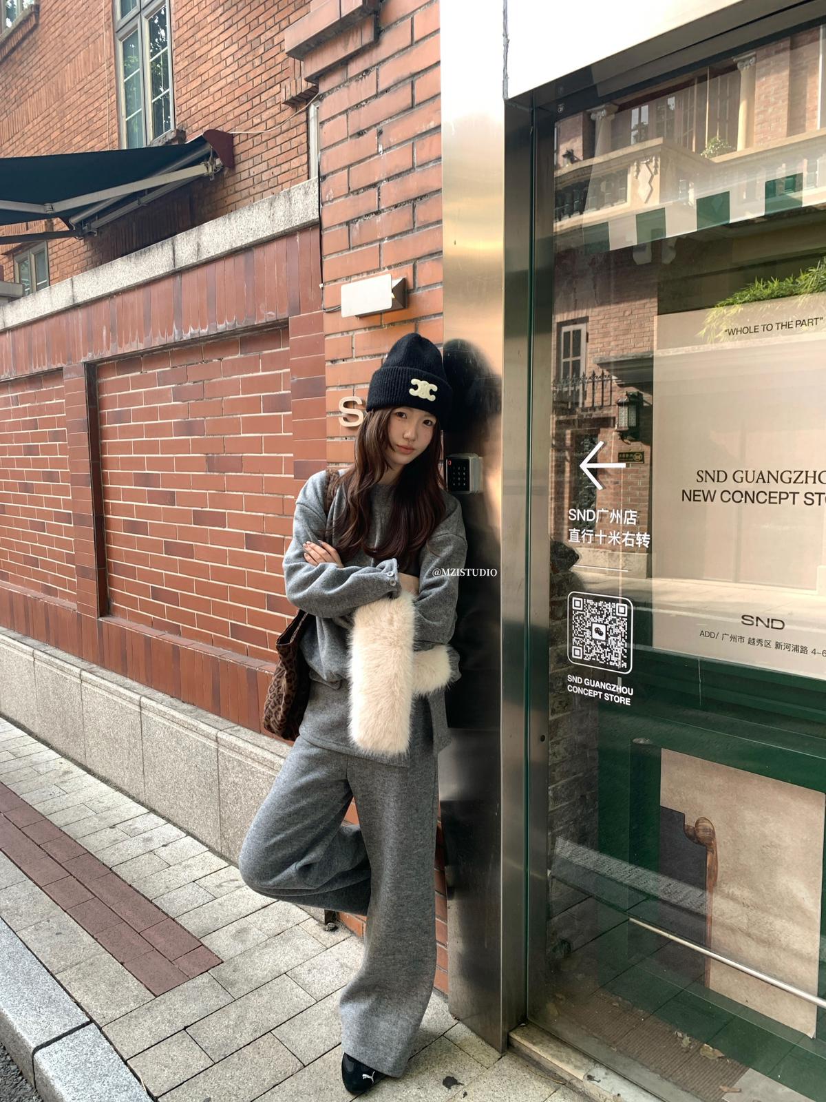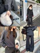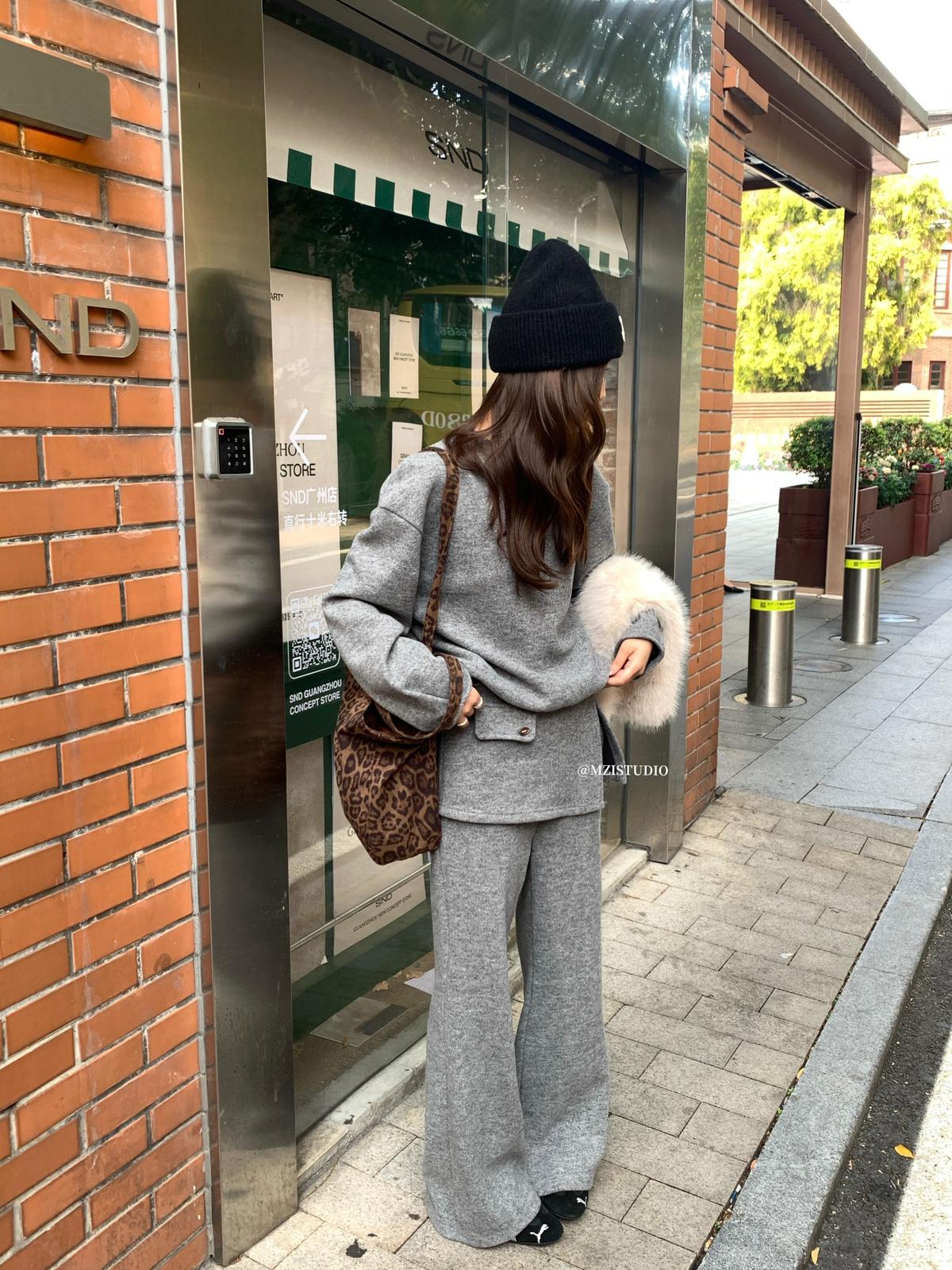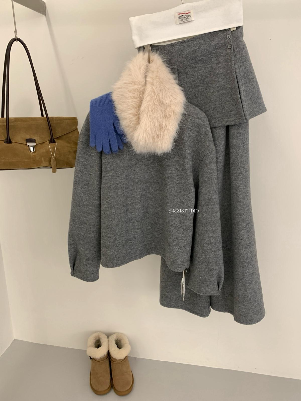 【C8283】無拘無束舒適日常韓標冬日加絨毛呢上衣+不可拆卸屁簾鬆弛休閒褲套裝(配可拆卸毛領)