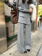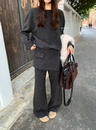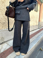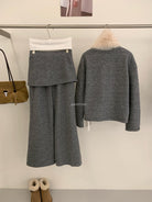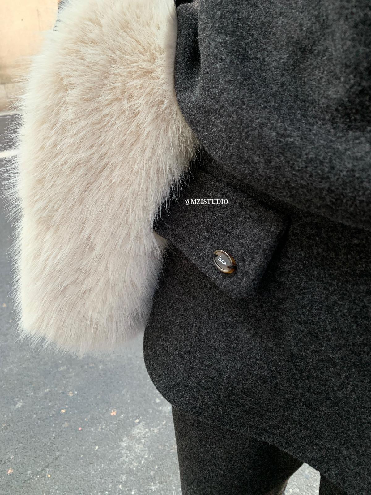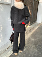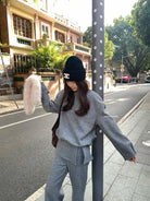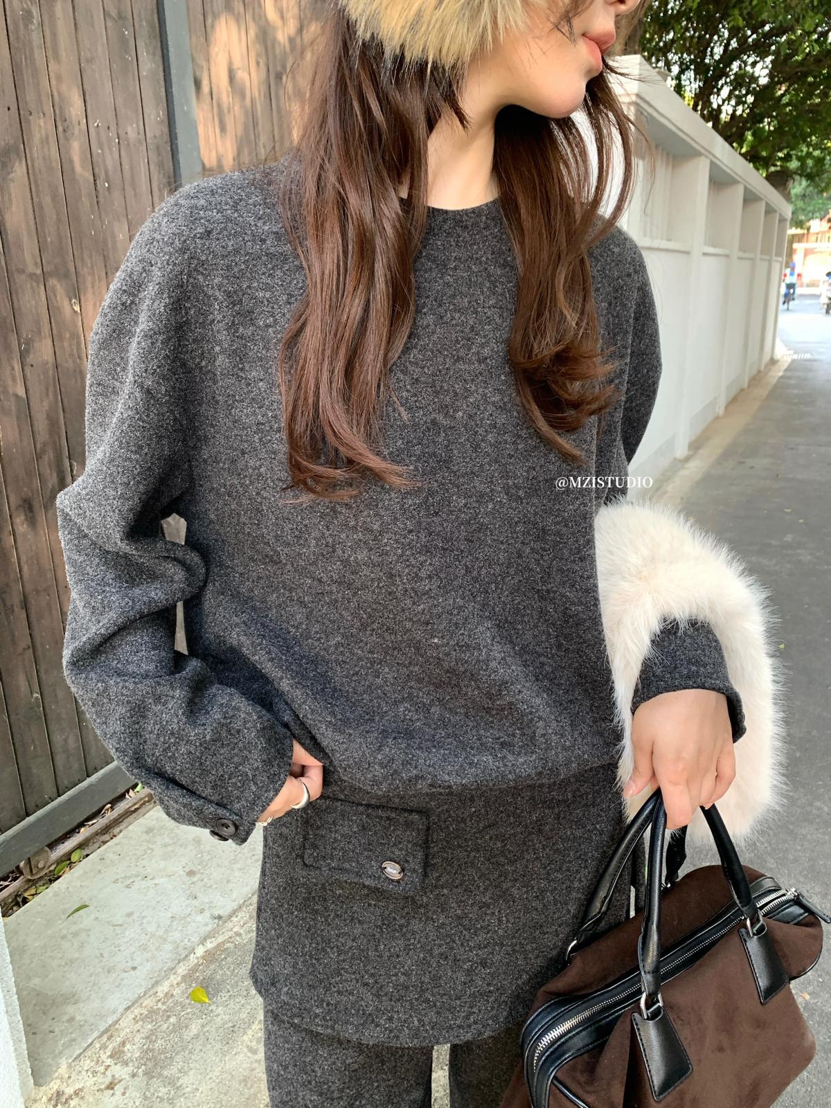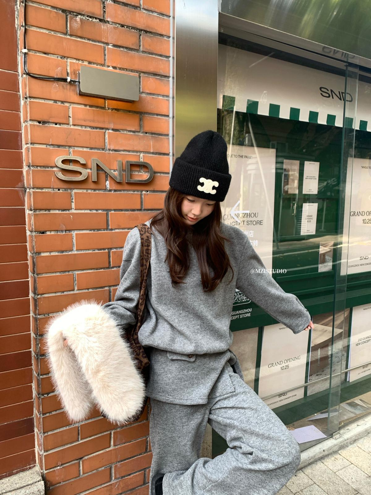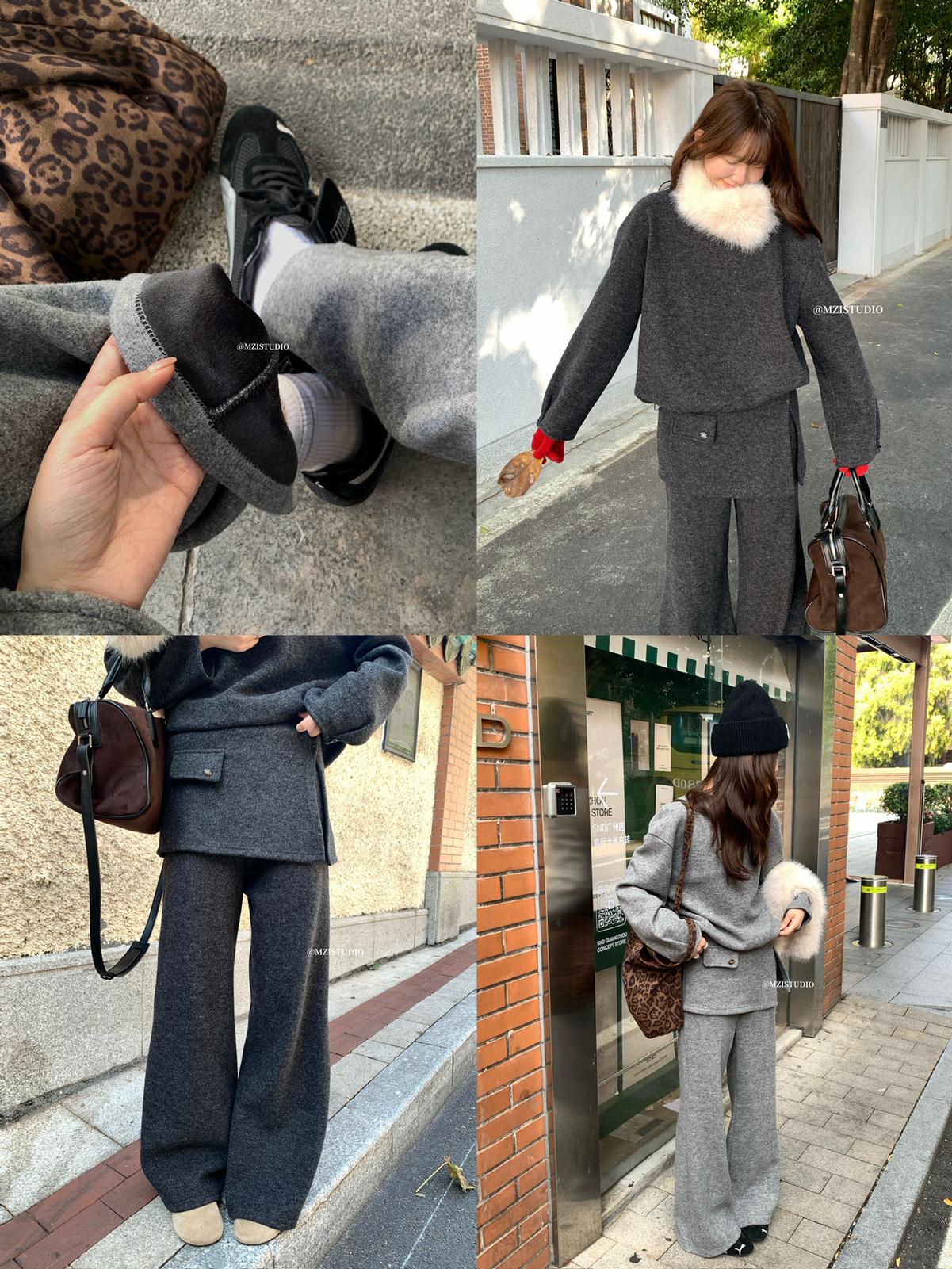 【C8283】無拘無束舒適日常韓標冬日加絨毛呢上衣+不可拆卸屁簾鬆弛休閒褲套裝(配可拆卸毛領)