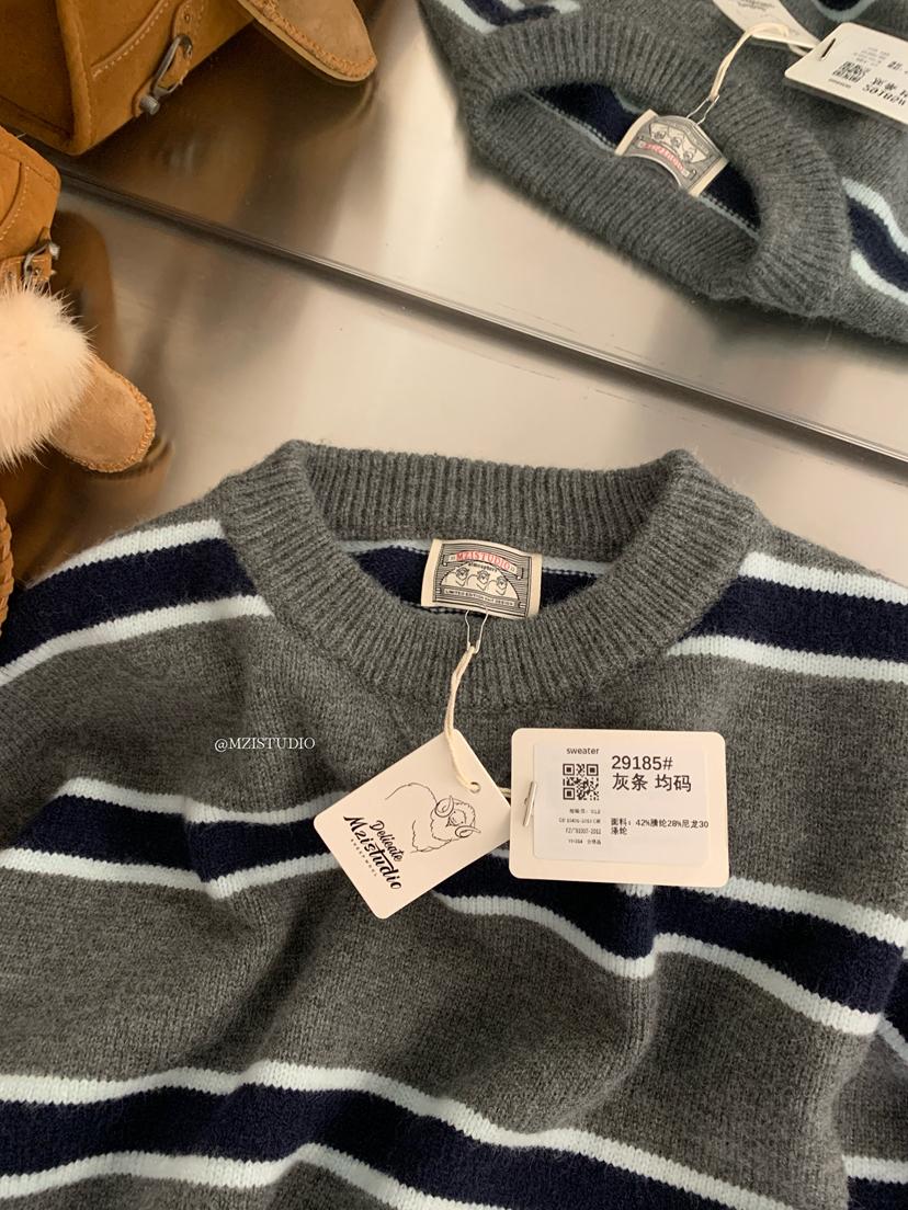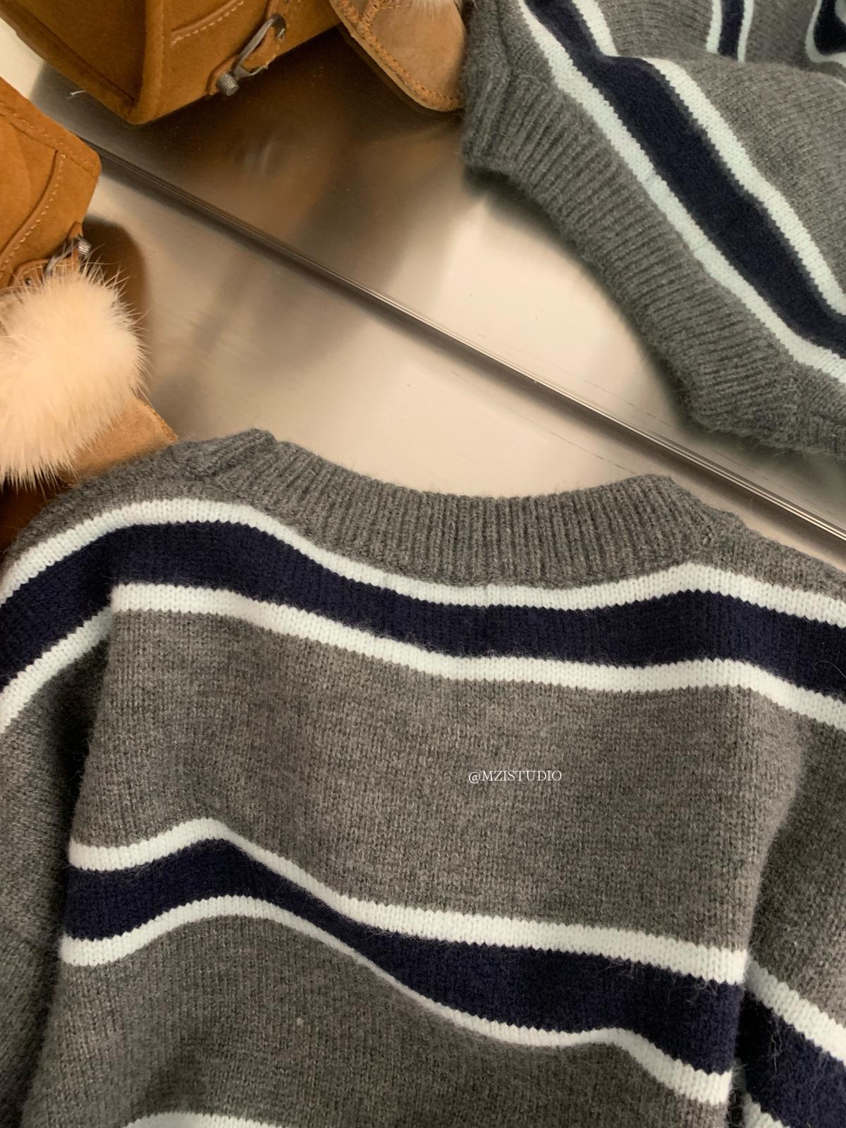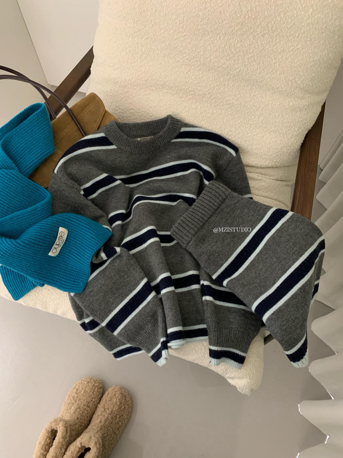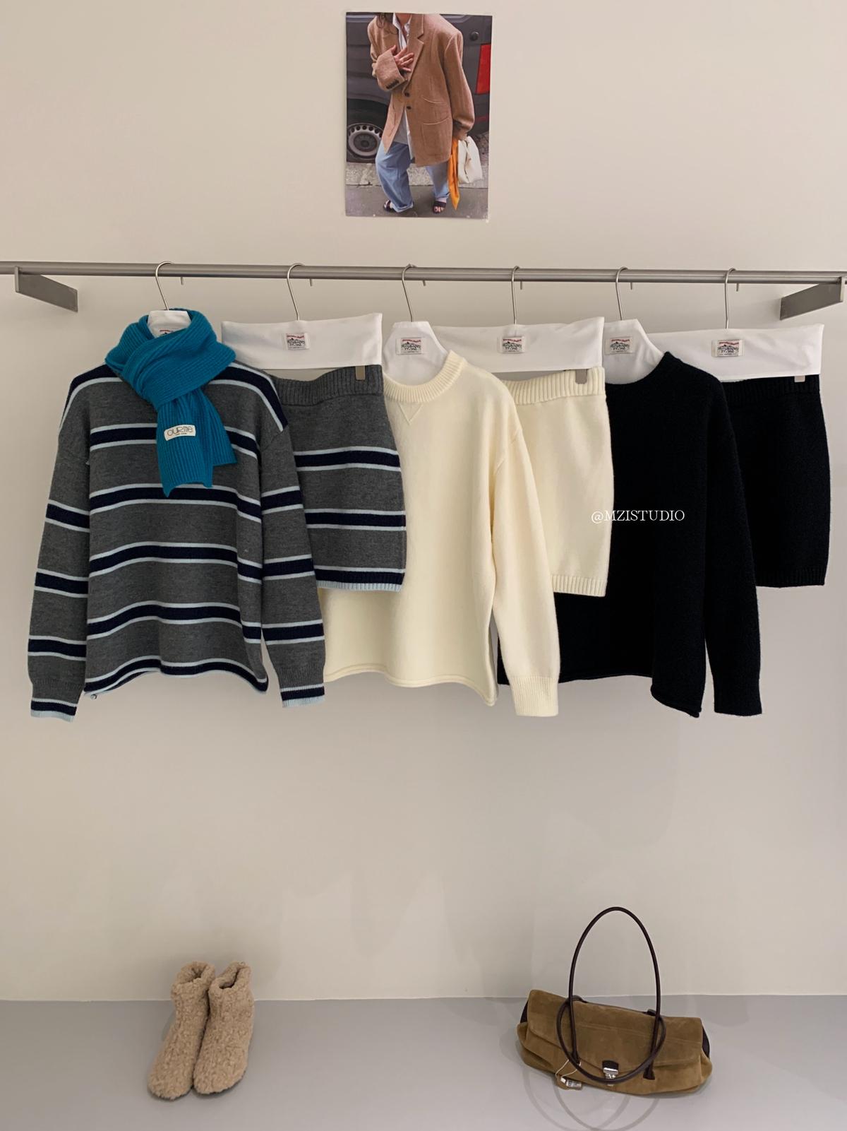 【C7829】慵懶假日韓標條紋純色軟糯寬鬆套頭毛衣+修身顯腿長包臀短裙套裝