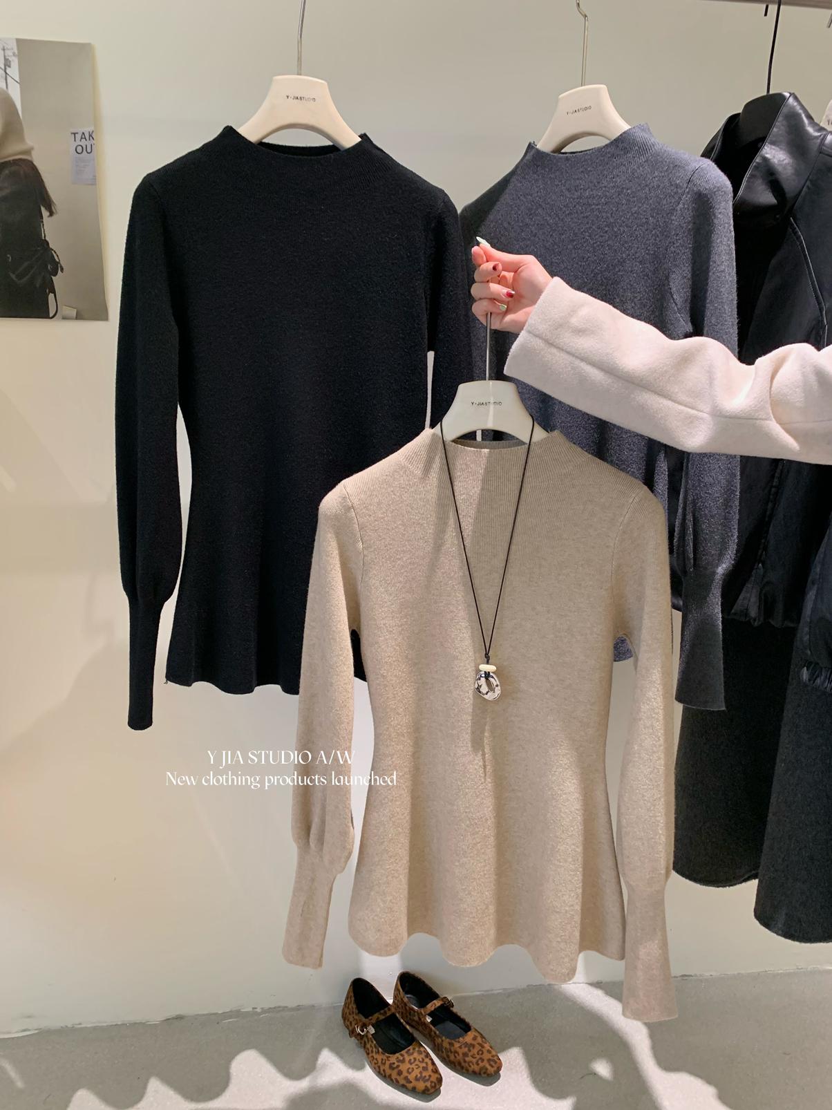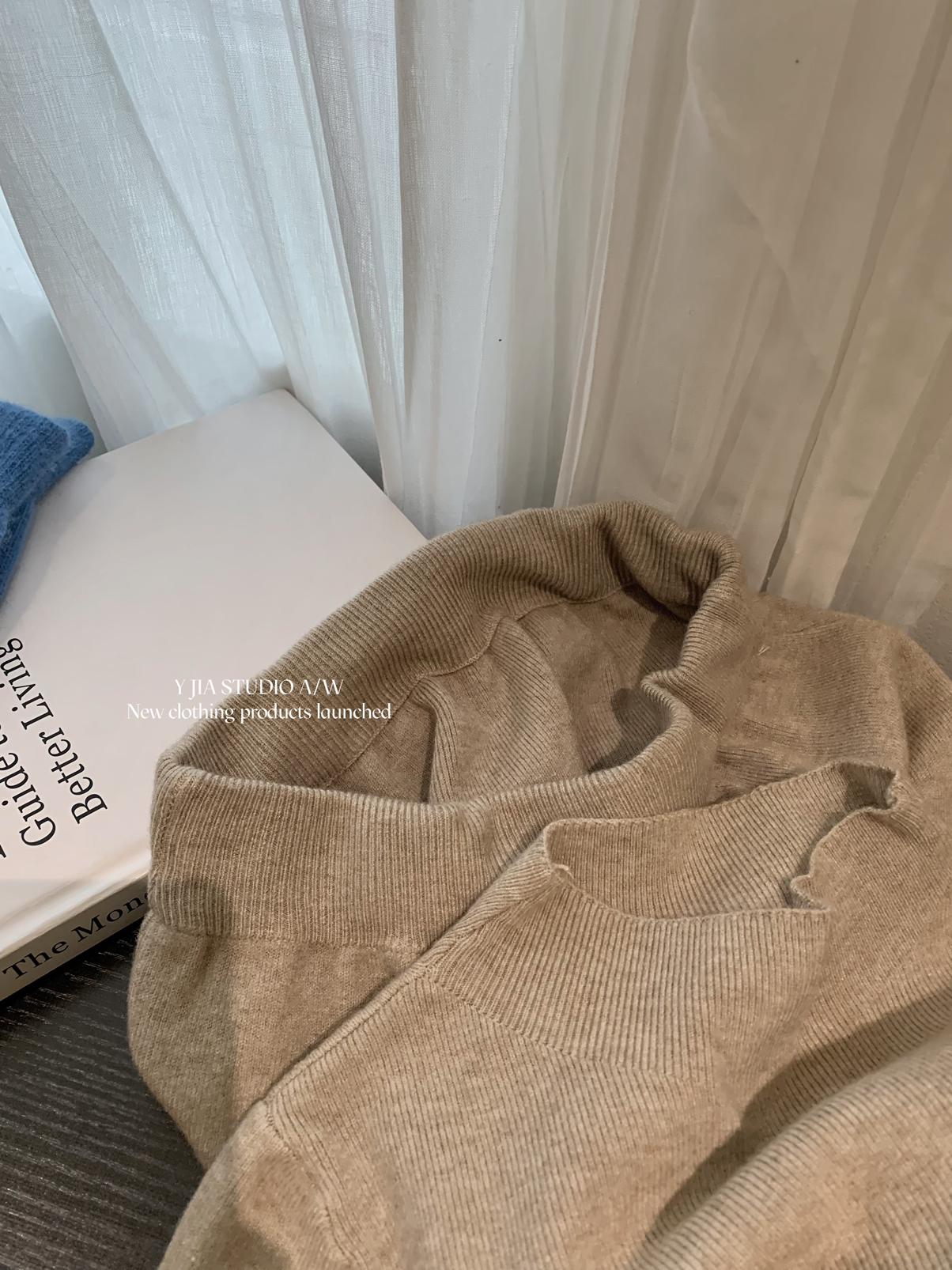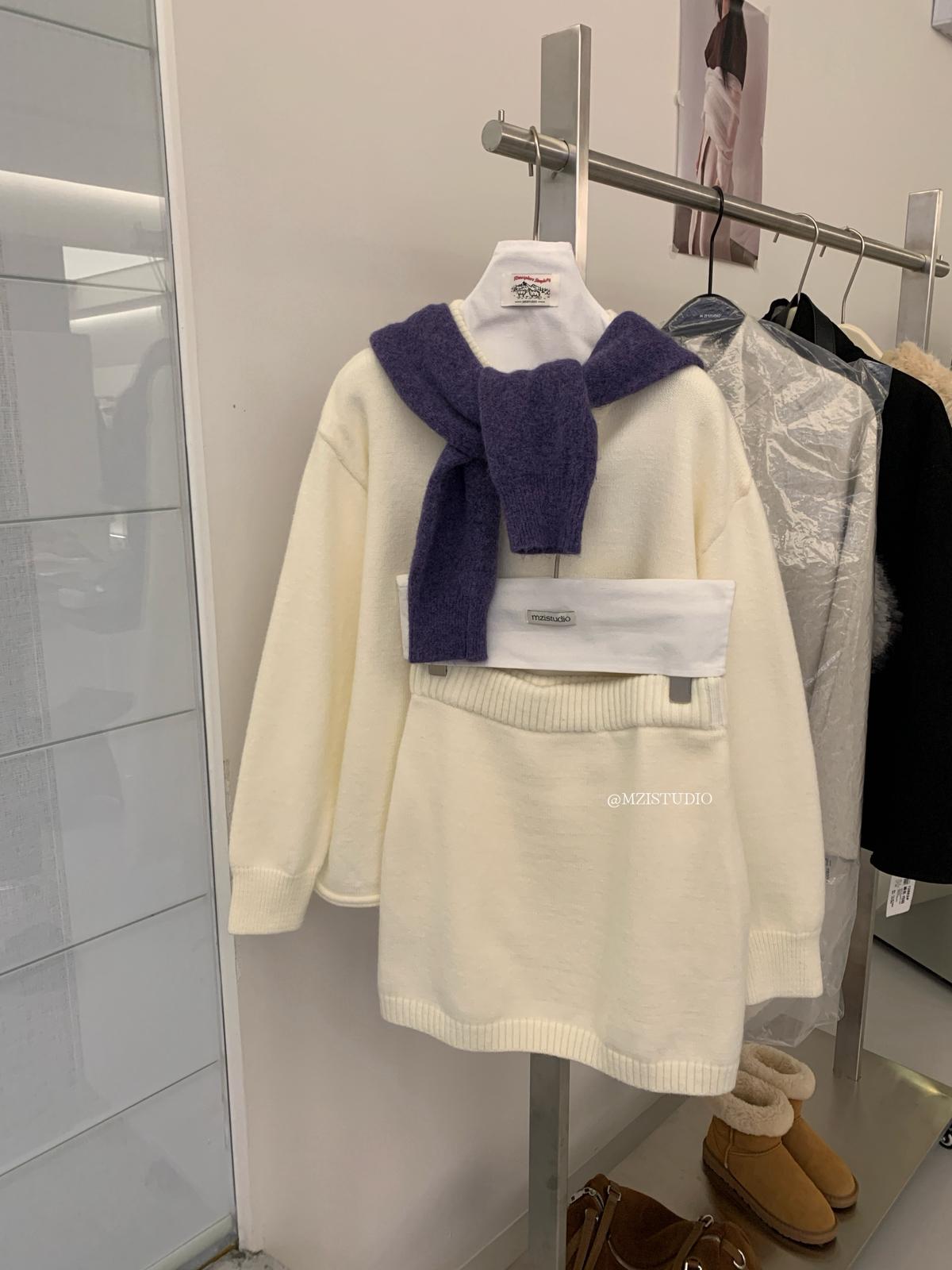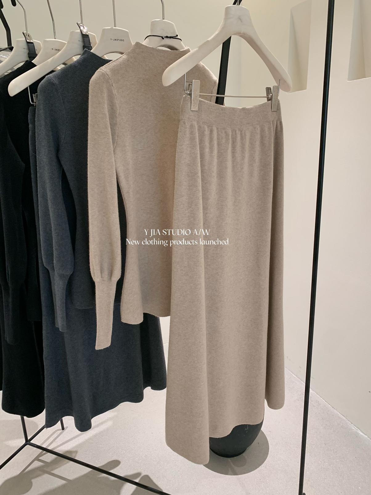 【C8219】高級感立領翻領棒針毛針織衫毛衣+高腰包臀半身裙套裝