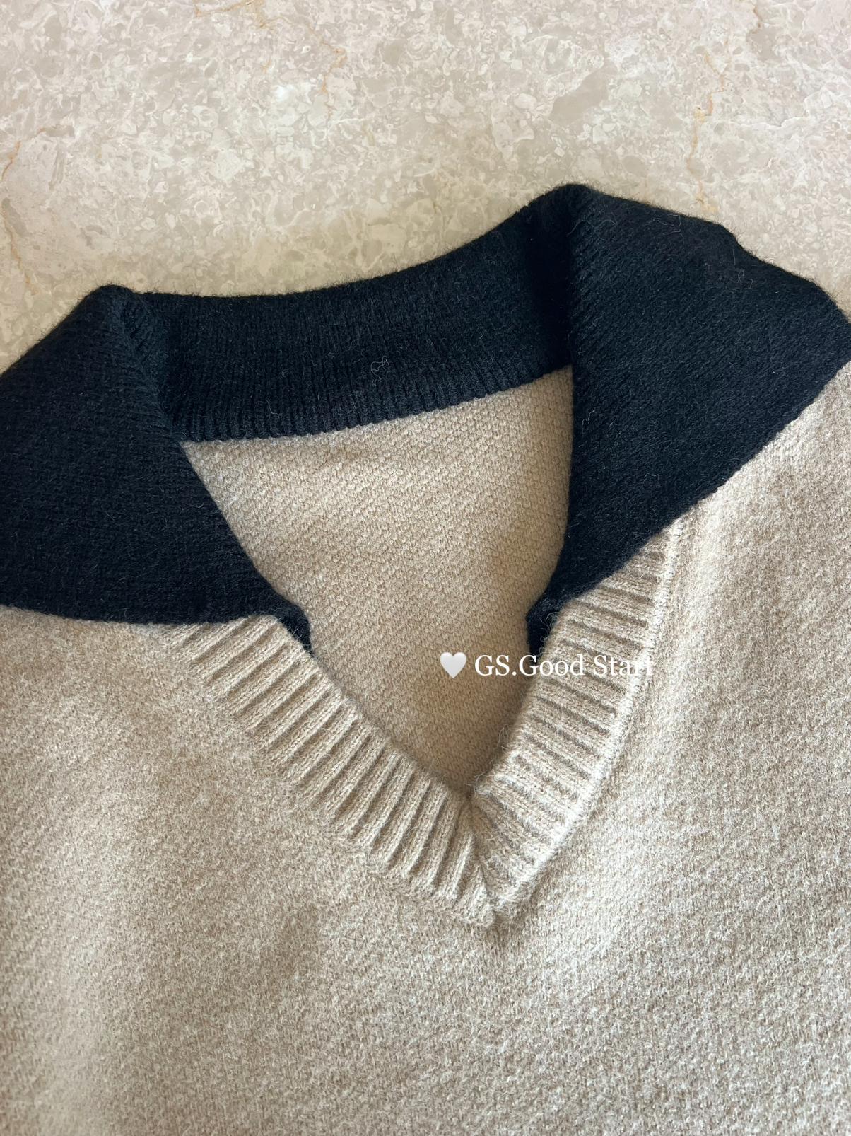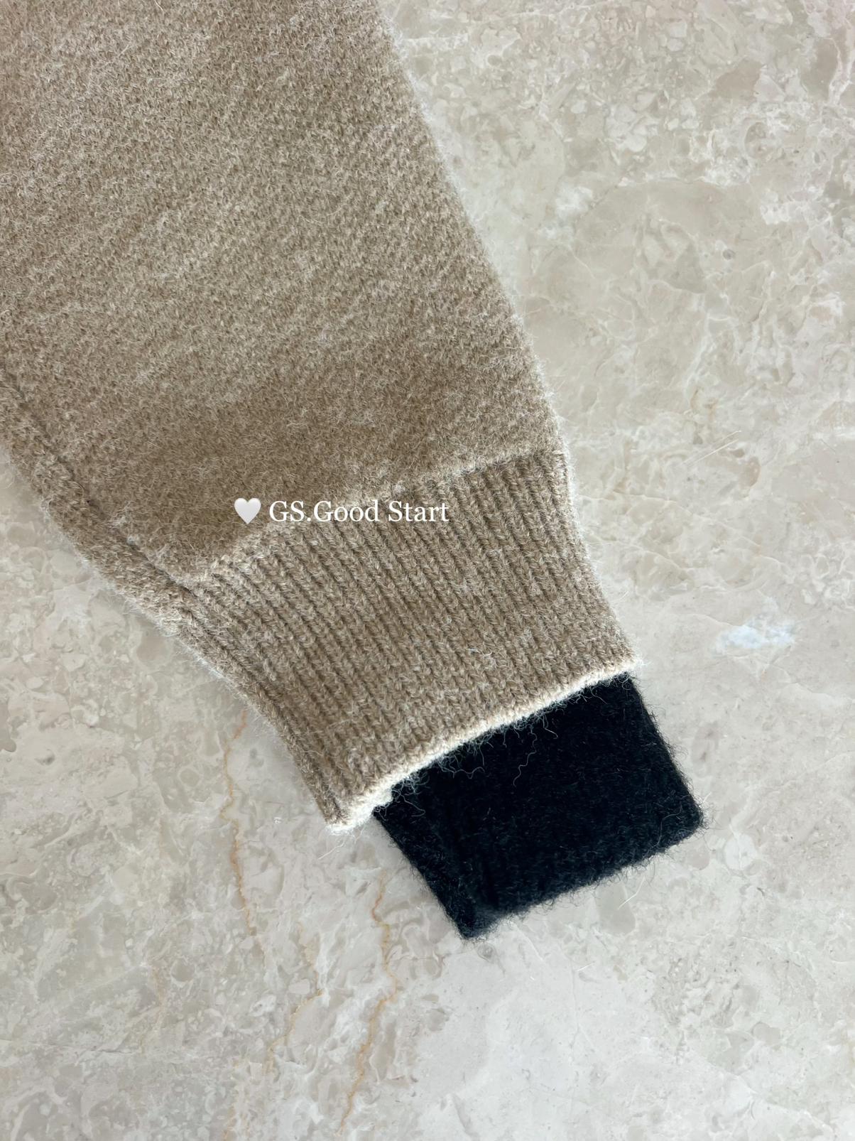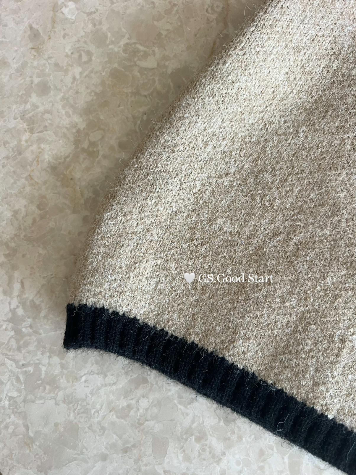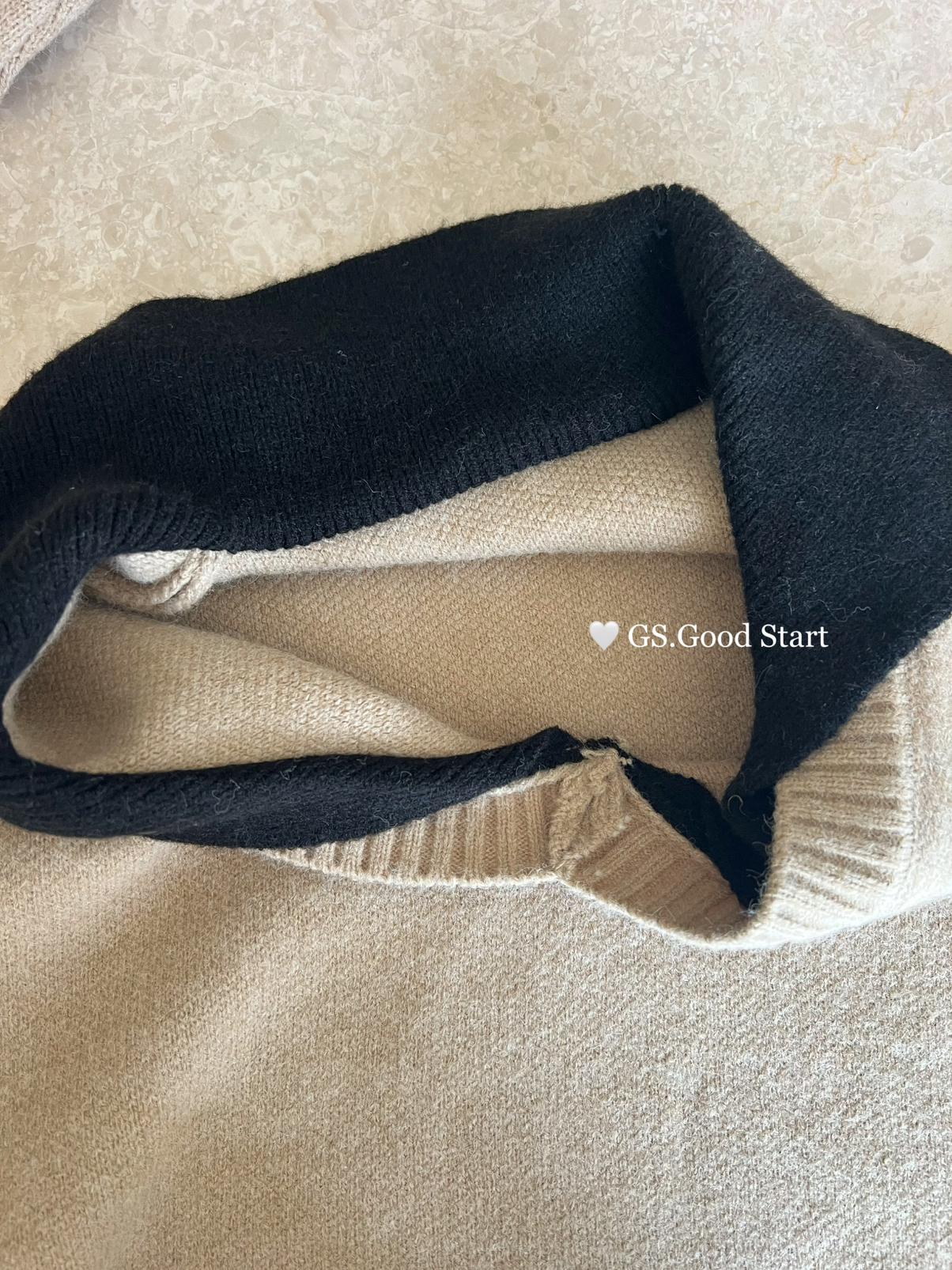 【C8266】洋氣v領撞色寬鬆大版毛衣+短褲加厚針織套裝(配圍巾)