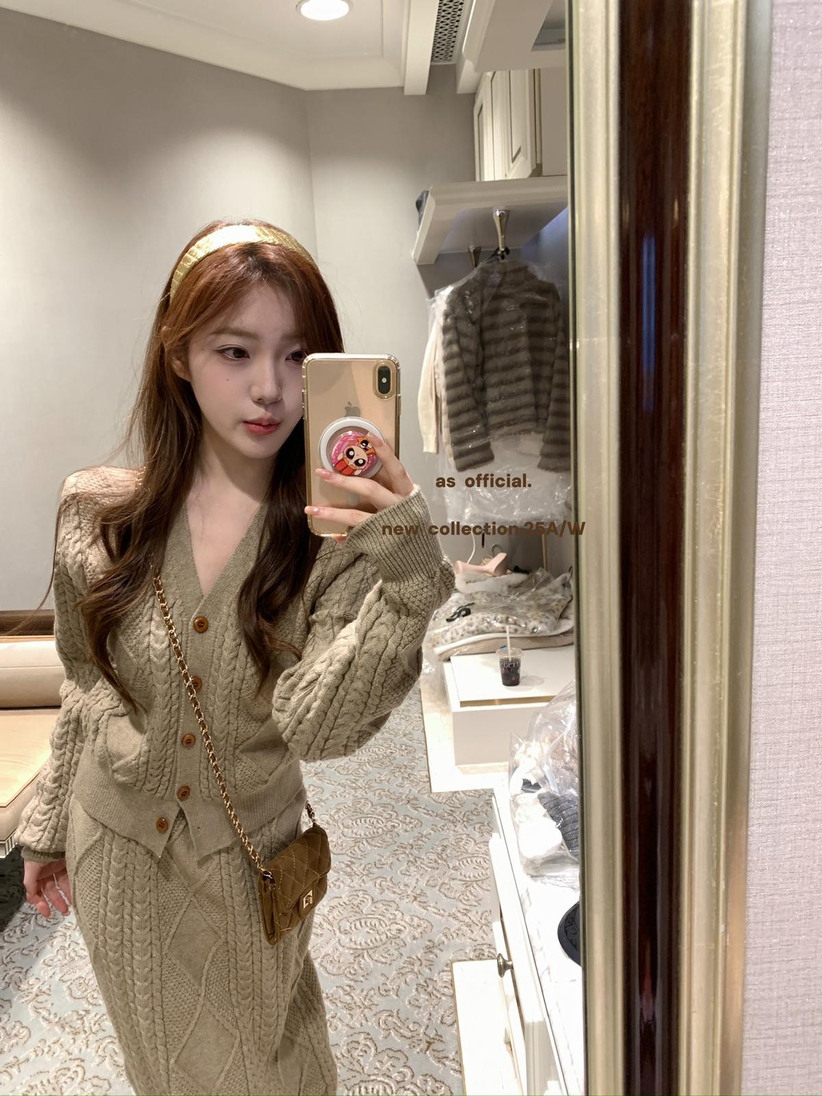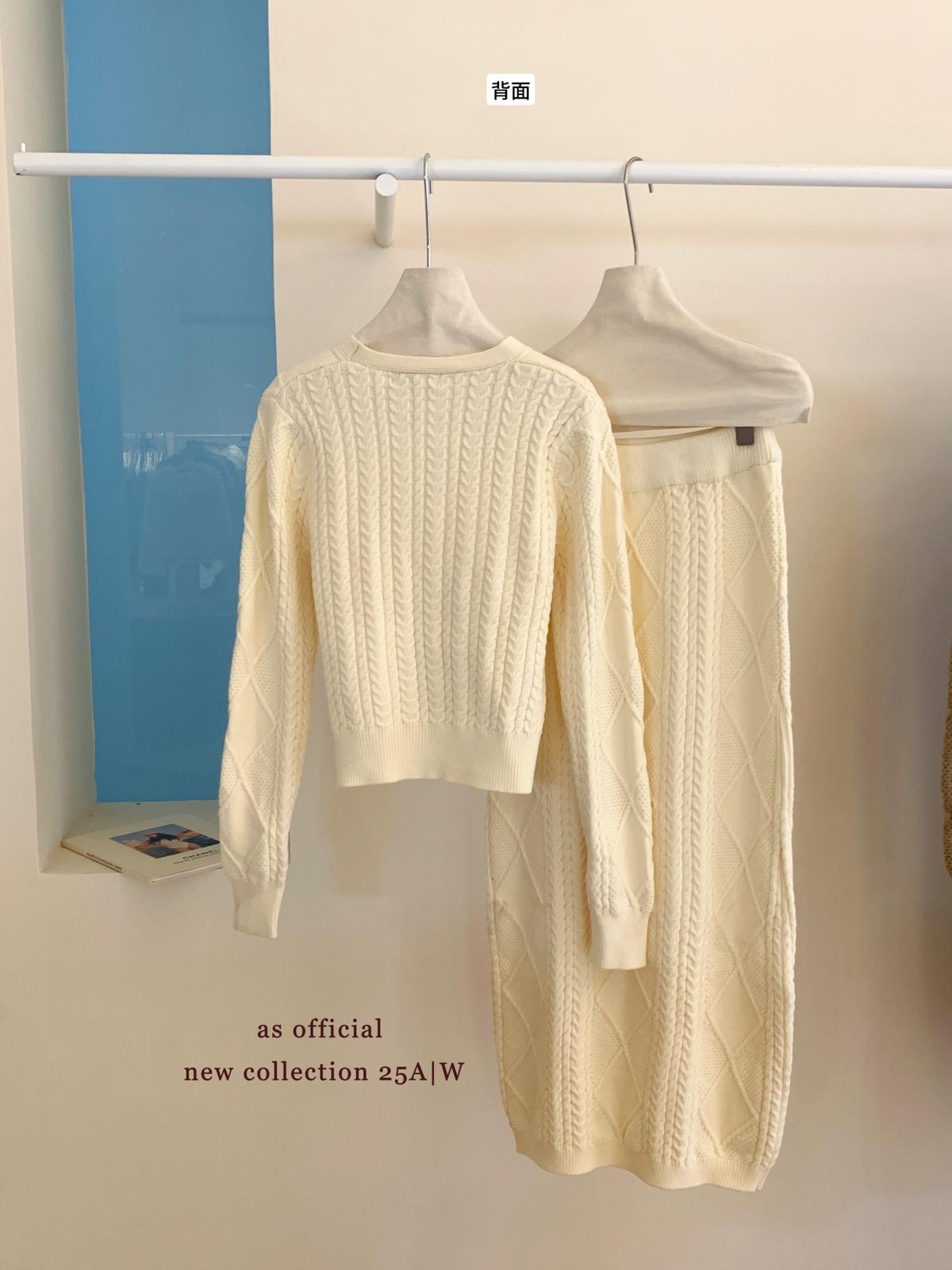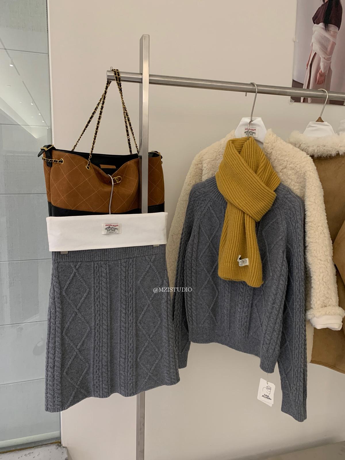 【C7882】套裝0煩惱!高幹文女主”麻花毛衣+半裙兩件套套裝