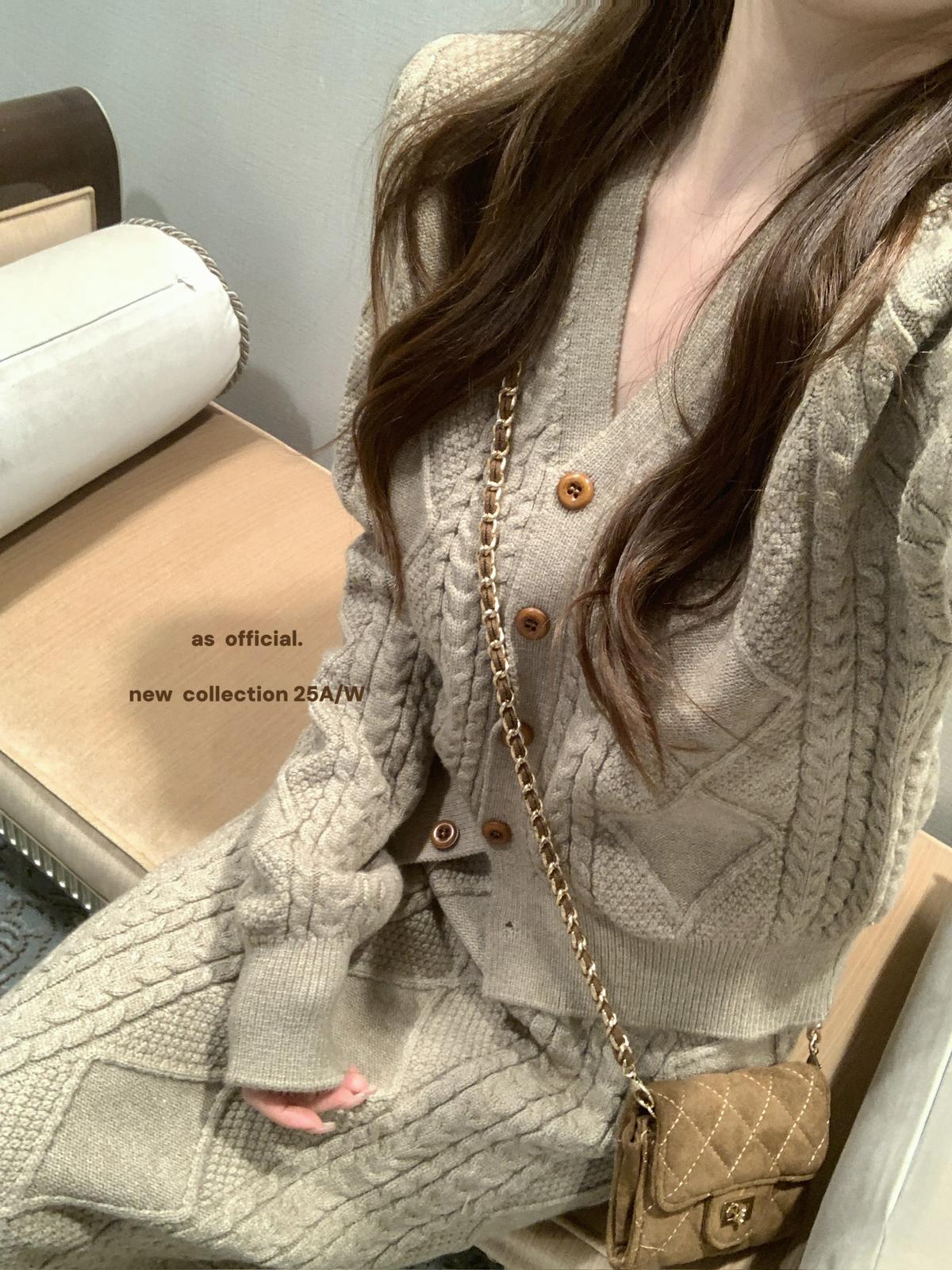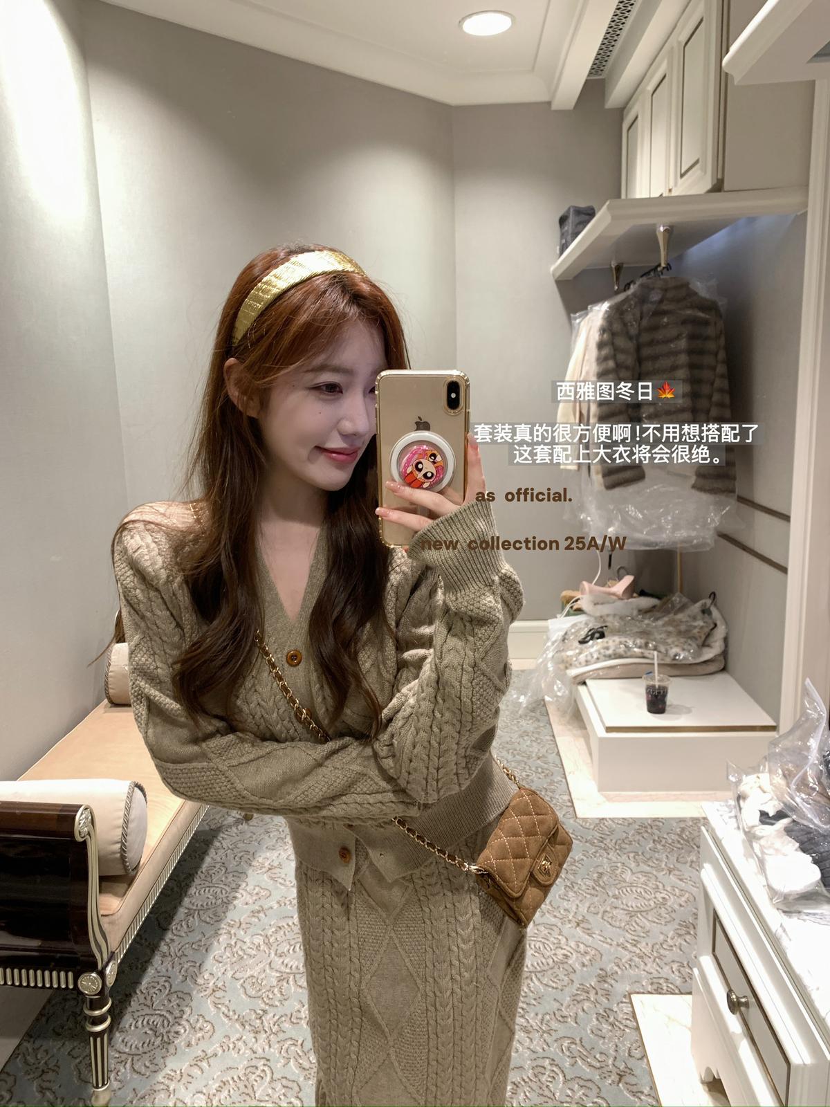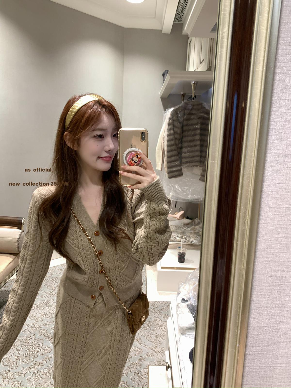 【C7882】套裝0煩惱!高幹文女主”麻花毛衣+半裙兩件套套裝