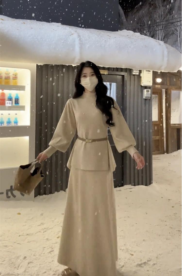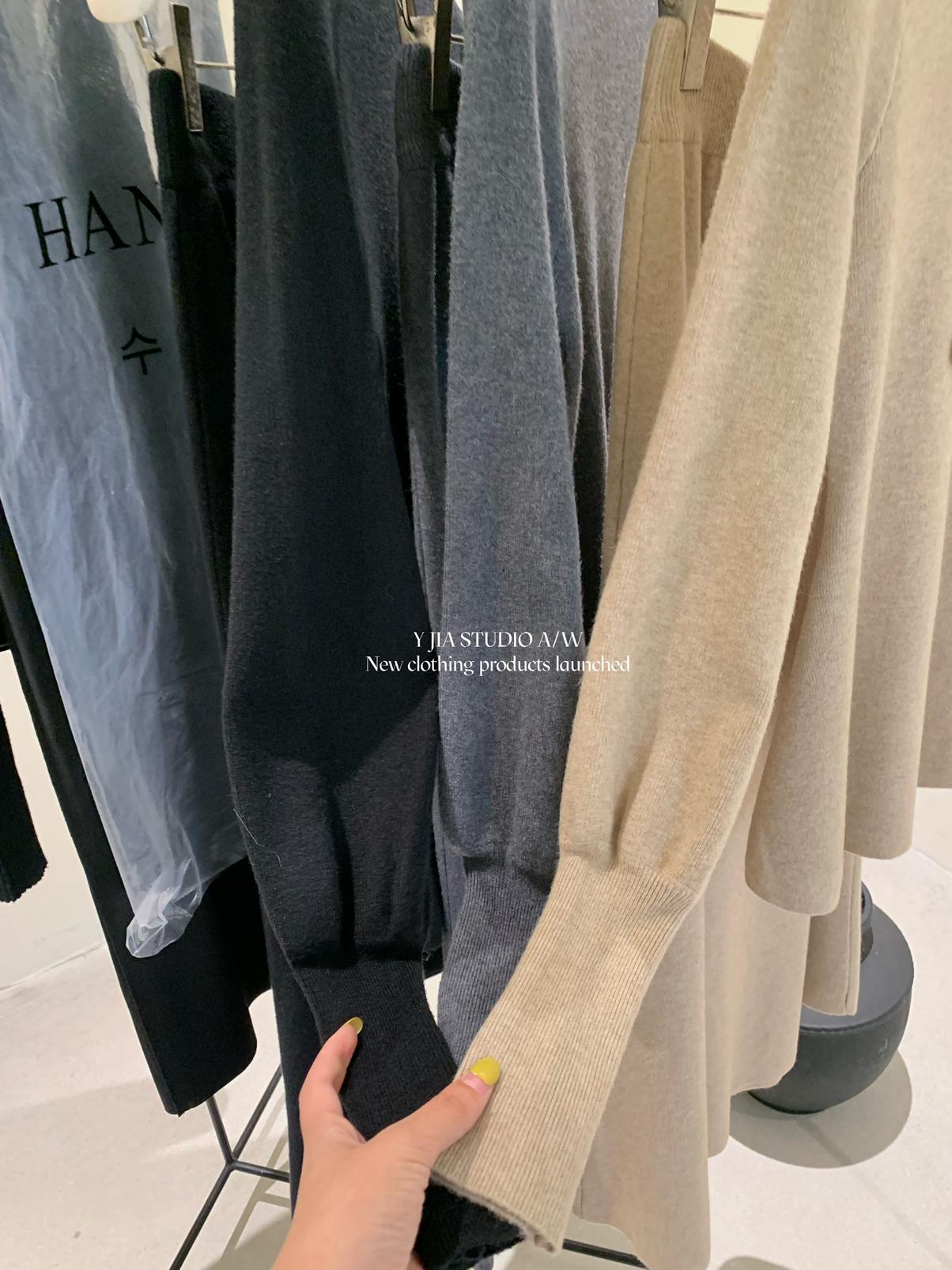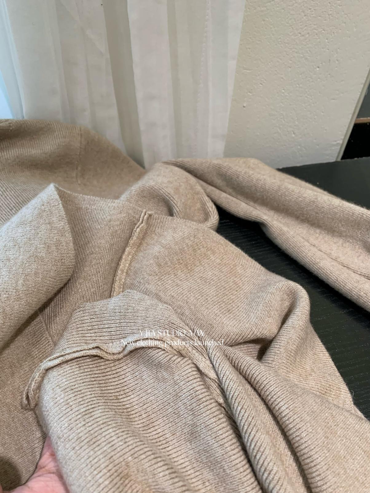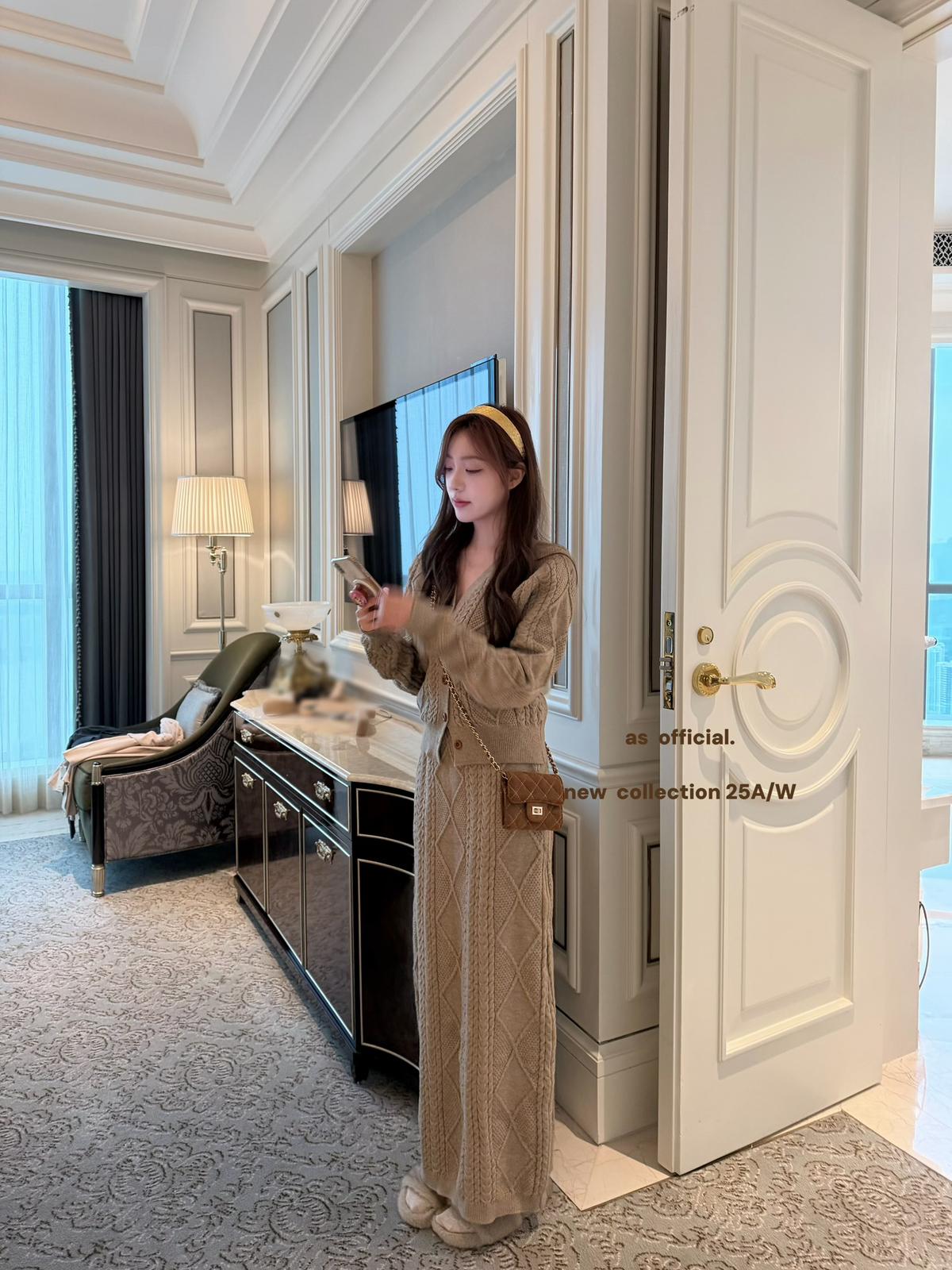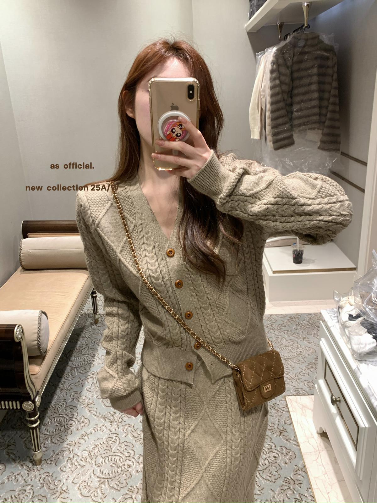 【C8034】高級感氣質開衫毛衣+中長款連衣裙套裝(含5%羊毛)