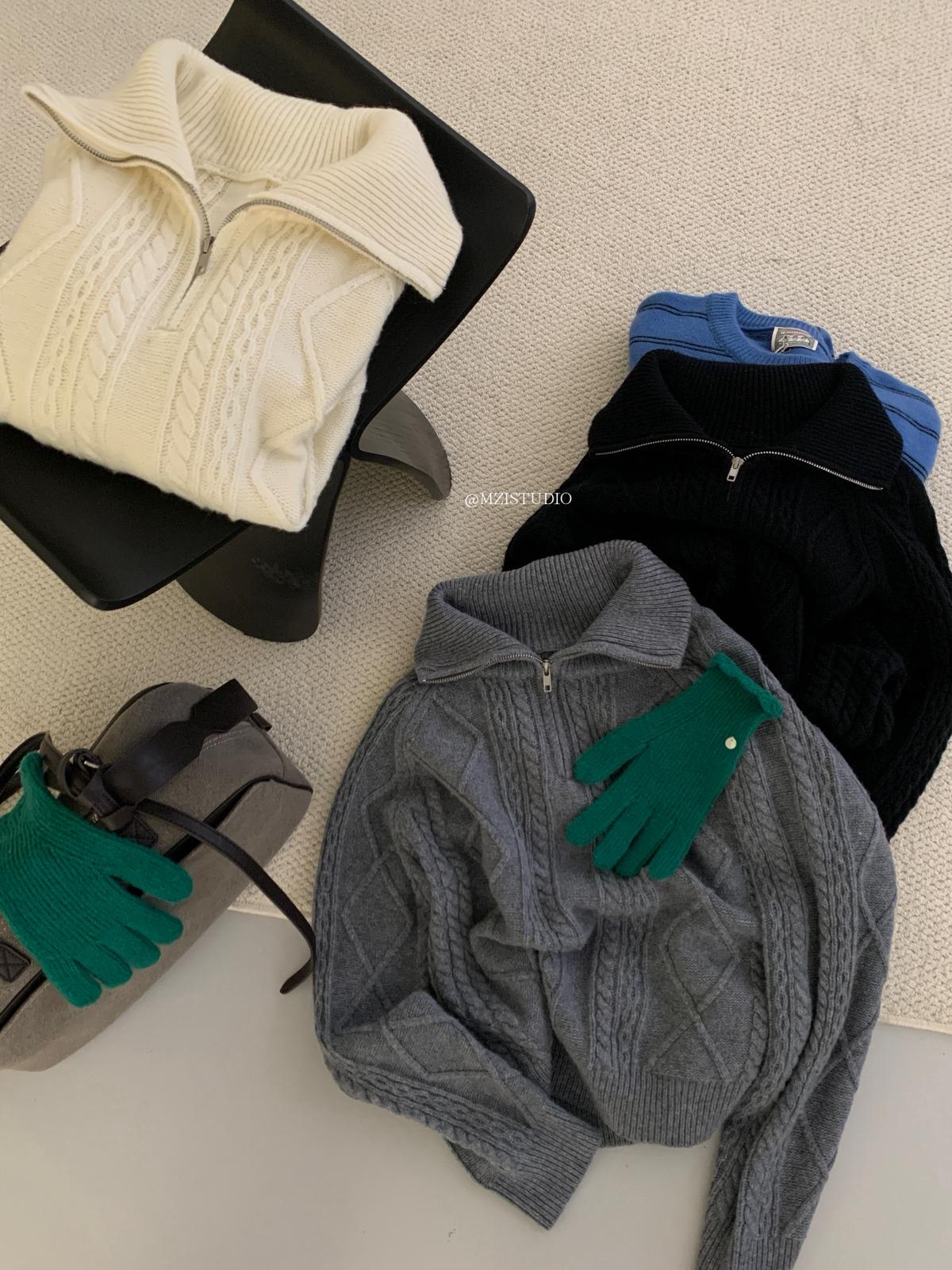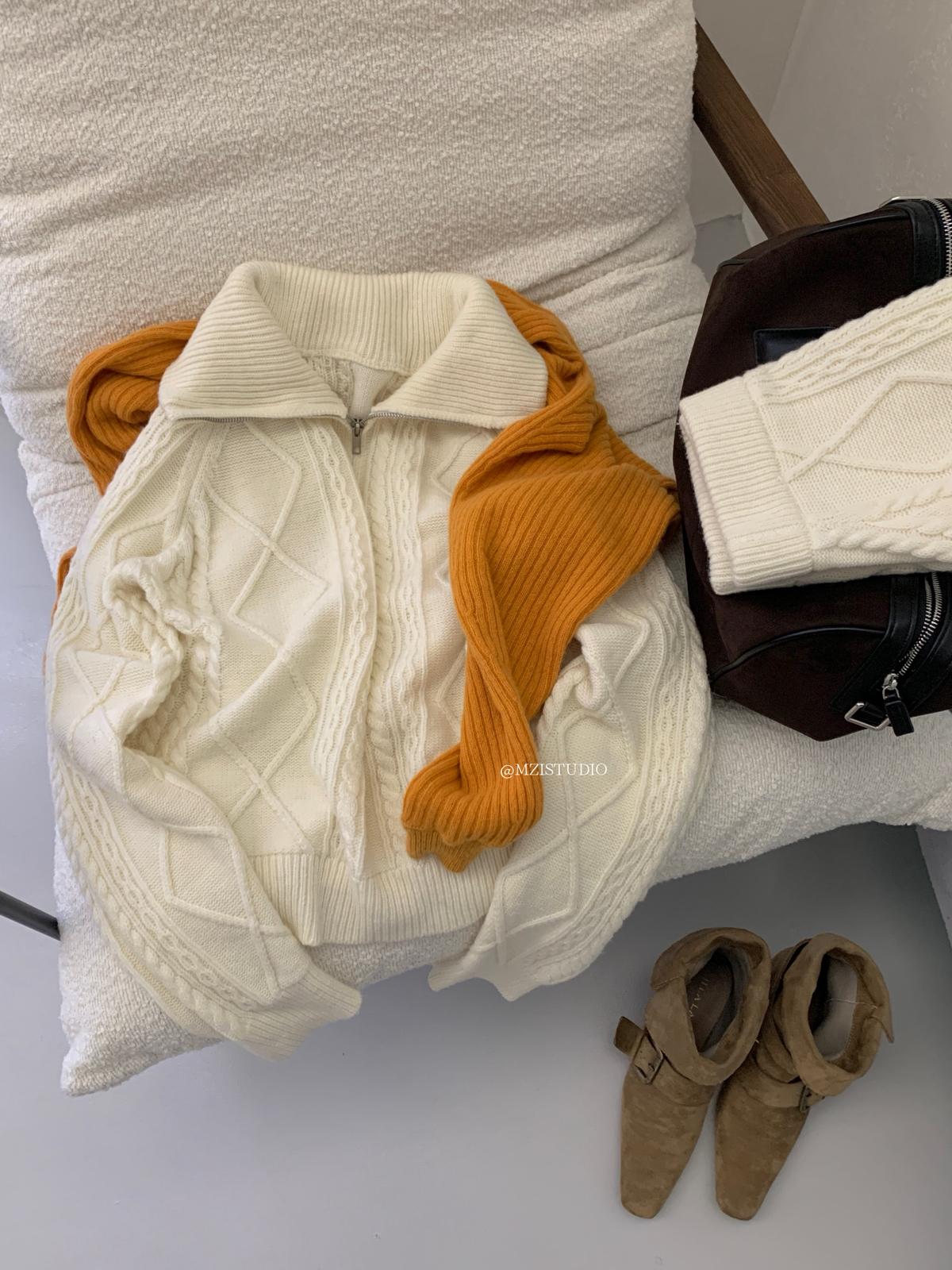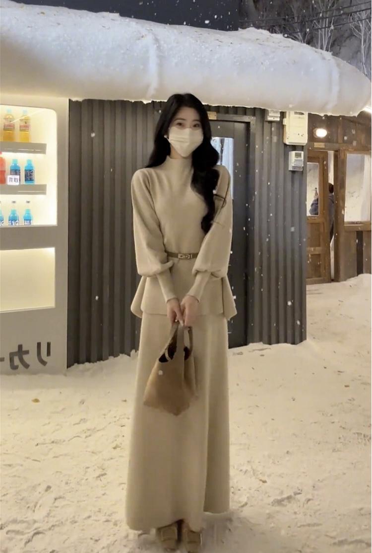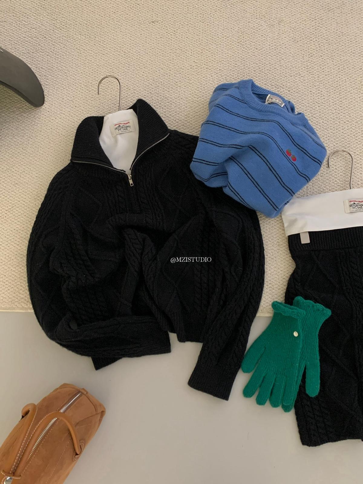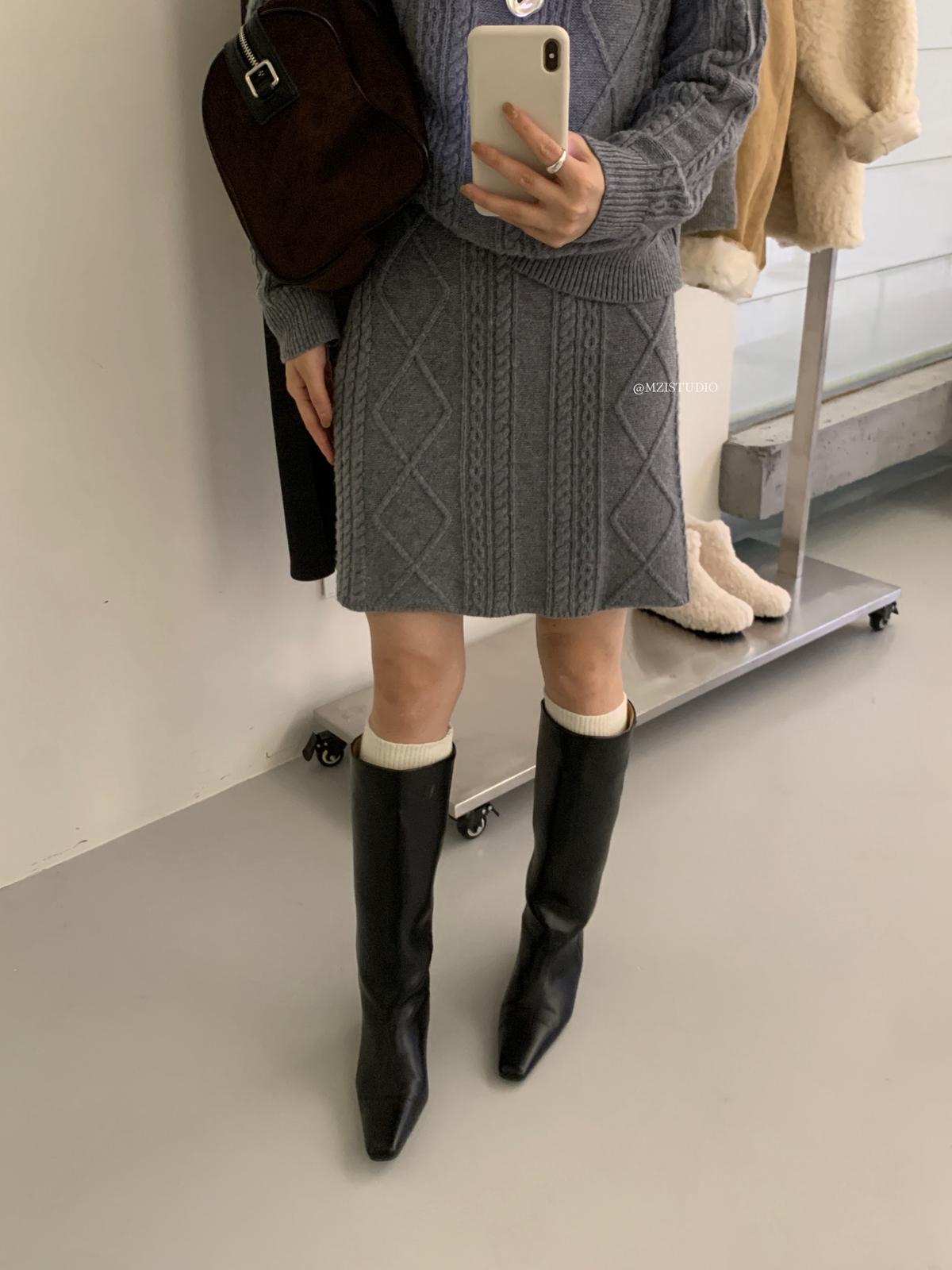【C7902】冬日樂章韓系重工麻花乾淨溫柔系高領半拉鍊毛衣+包臀顯瘦半身裙套裝