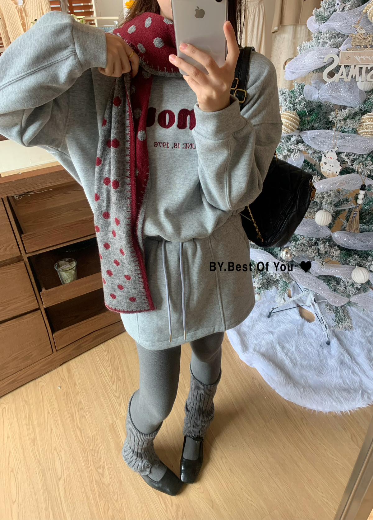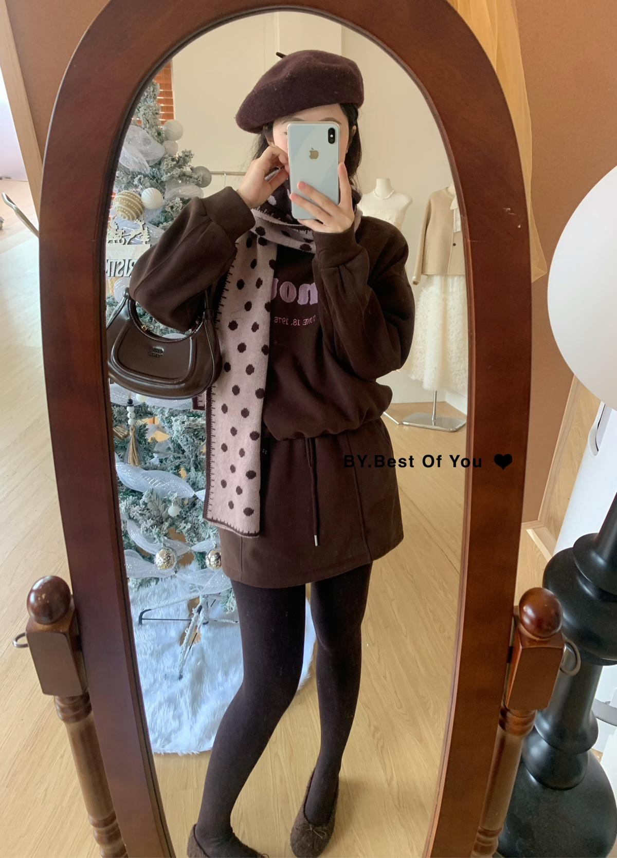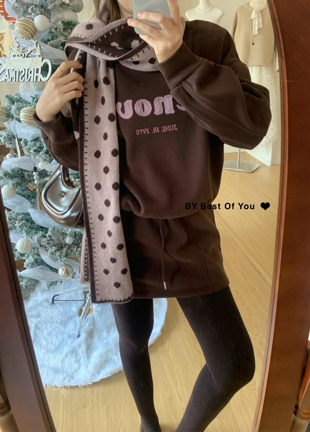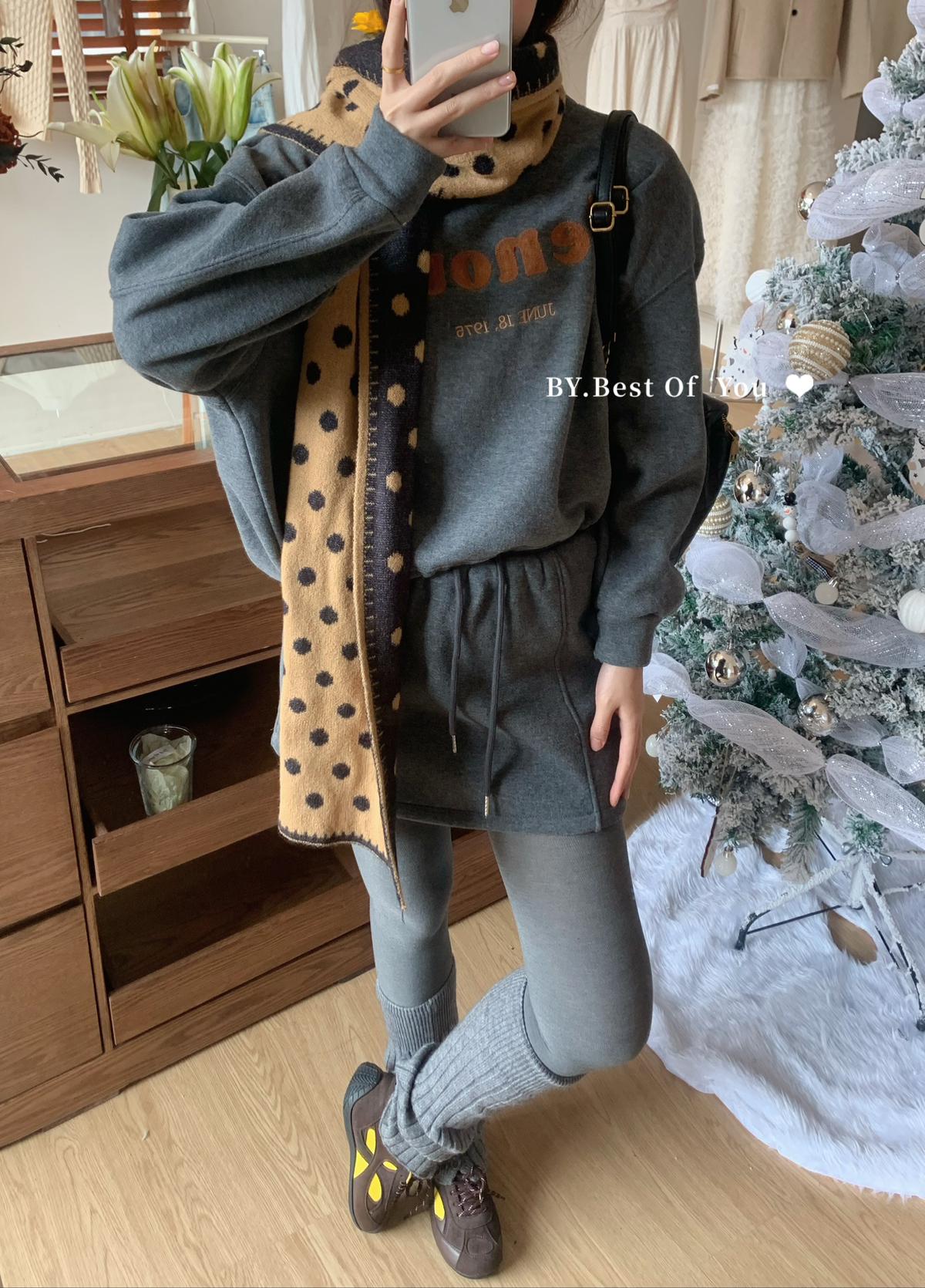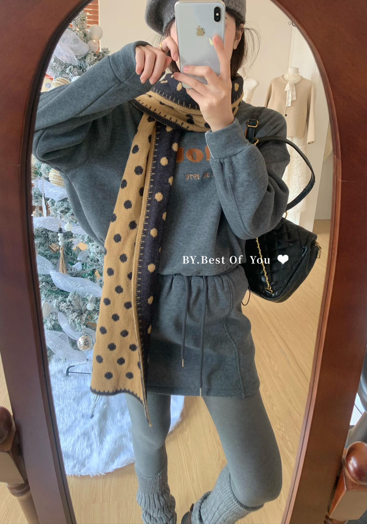 【C7980】法式復古刺繡衛衣+半身裙套裝(配波點圍巾)