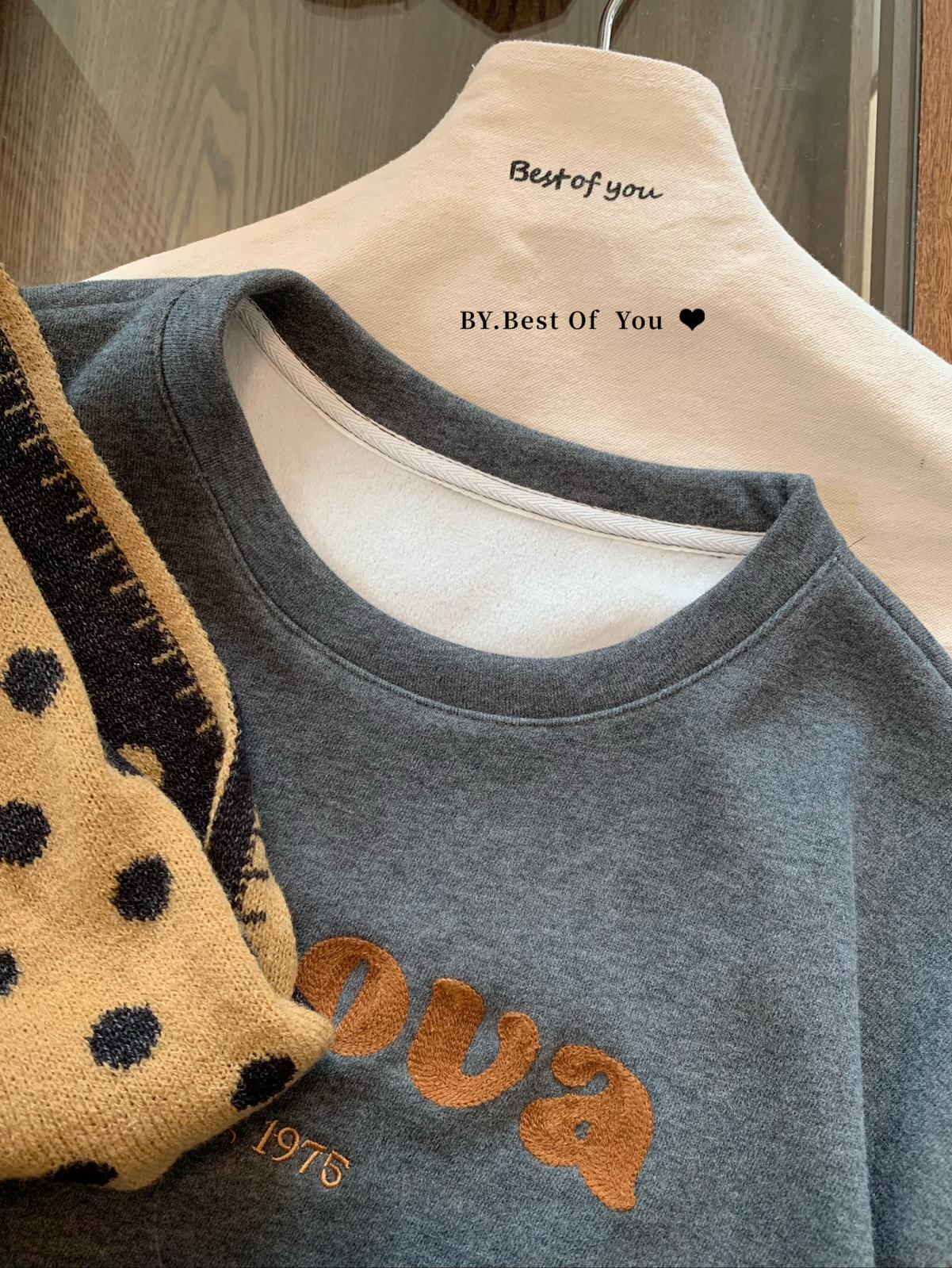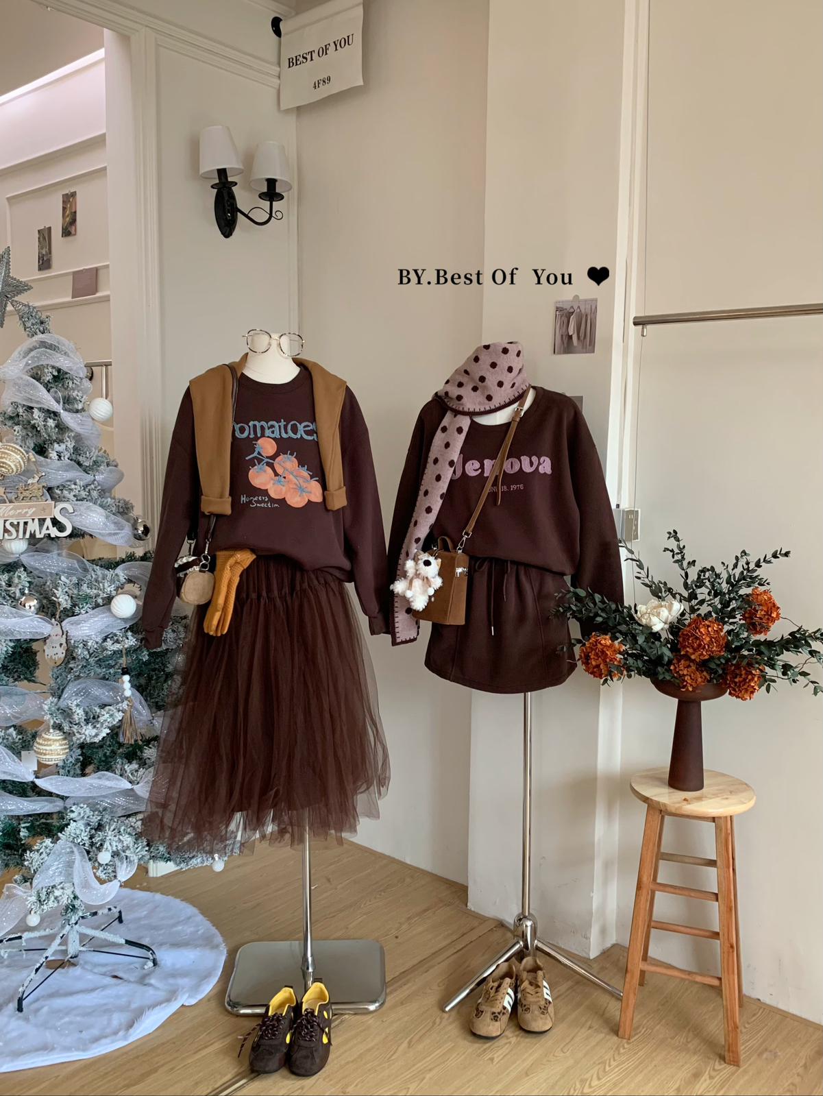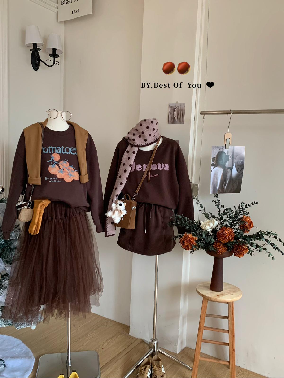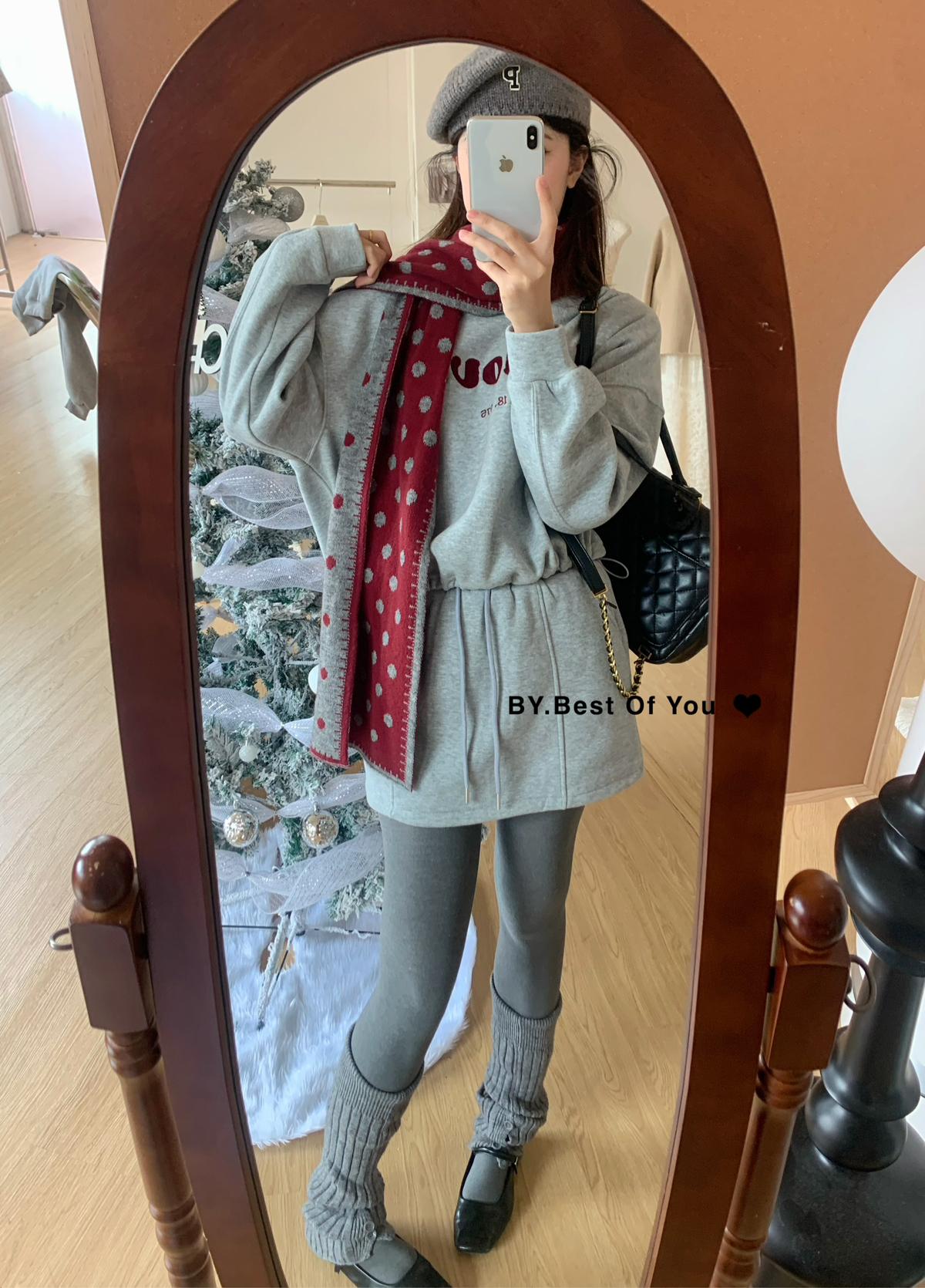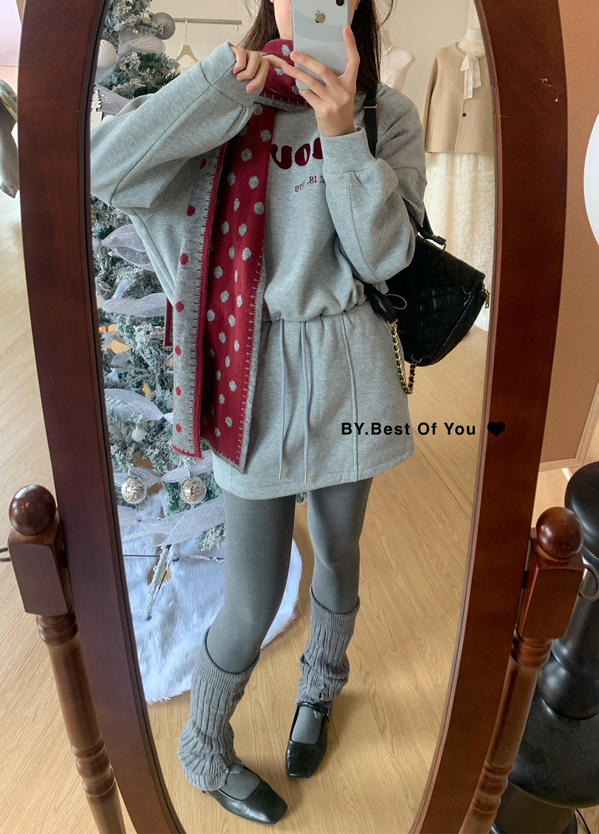 【C7980】法式復古刺繡衛衣+半身裙套裝(配波點圍巾)