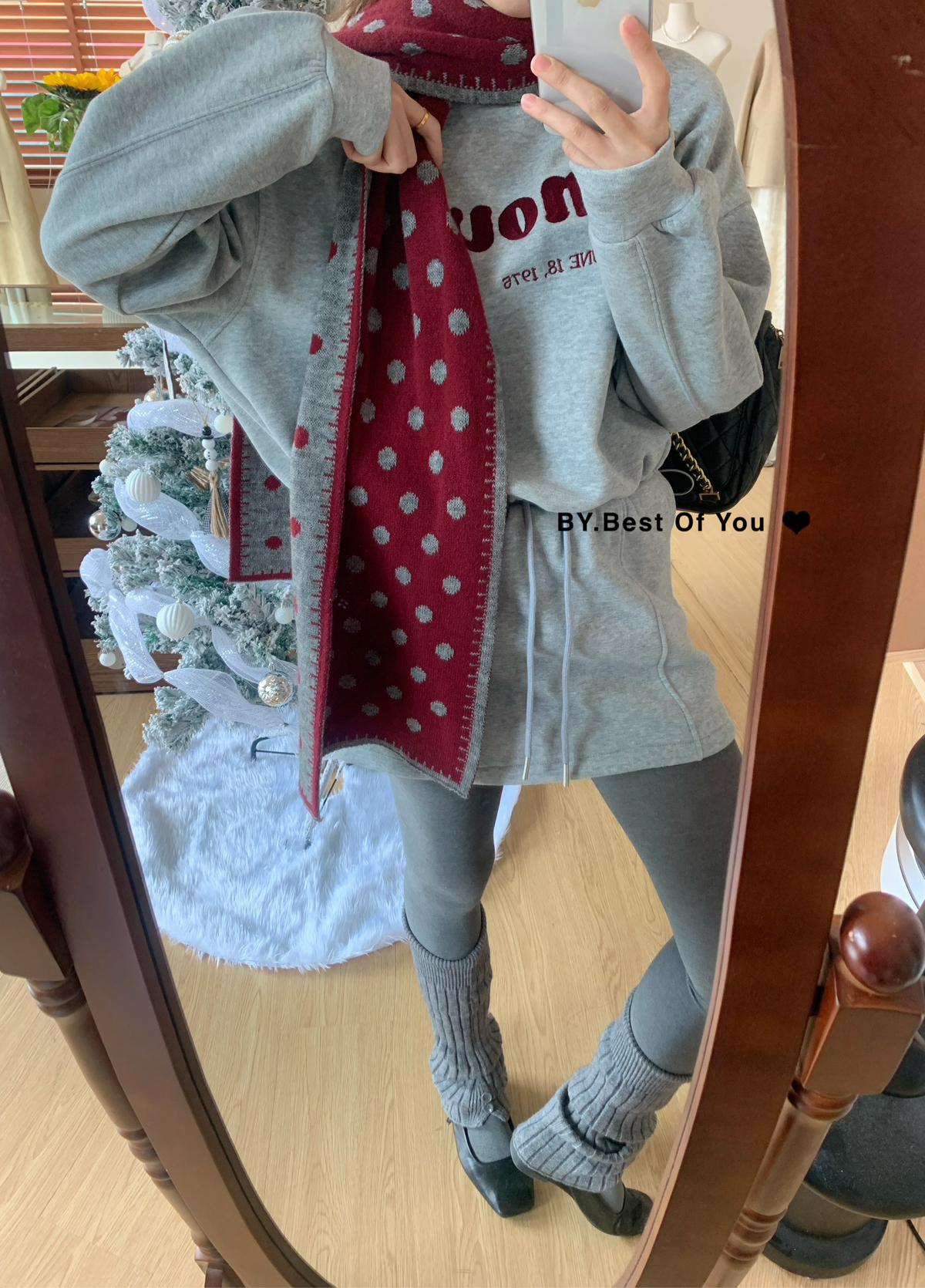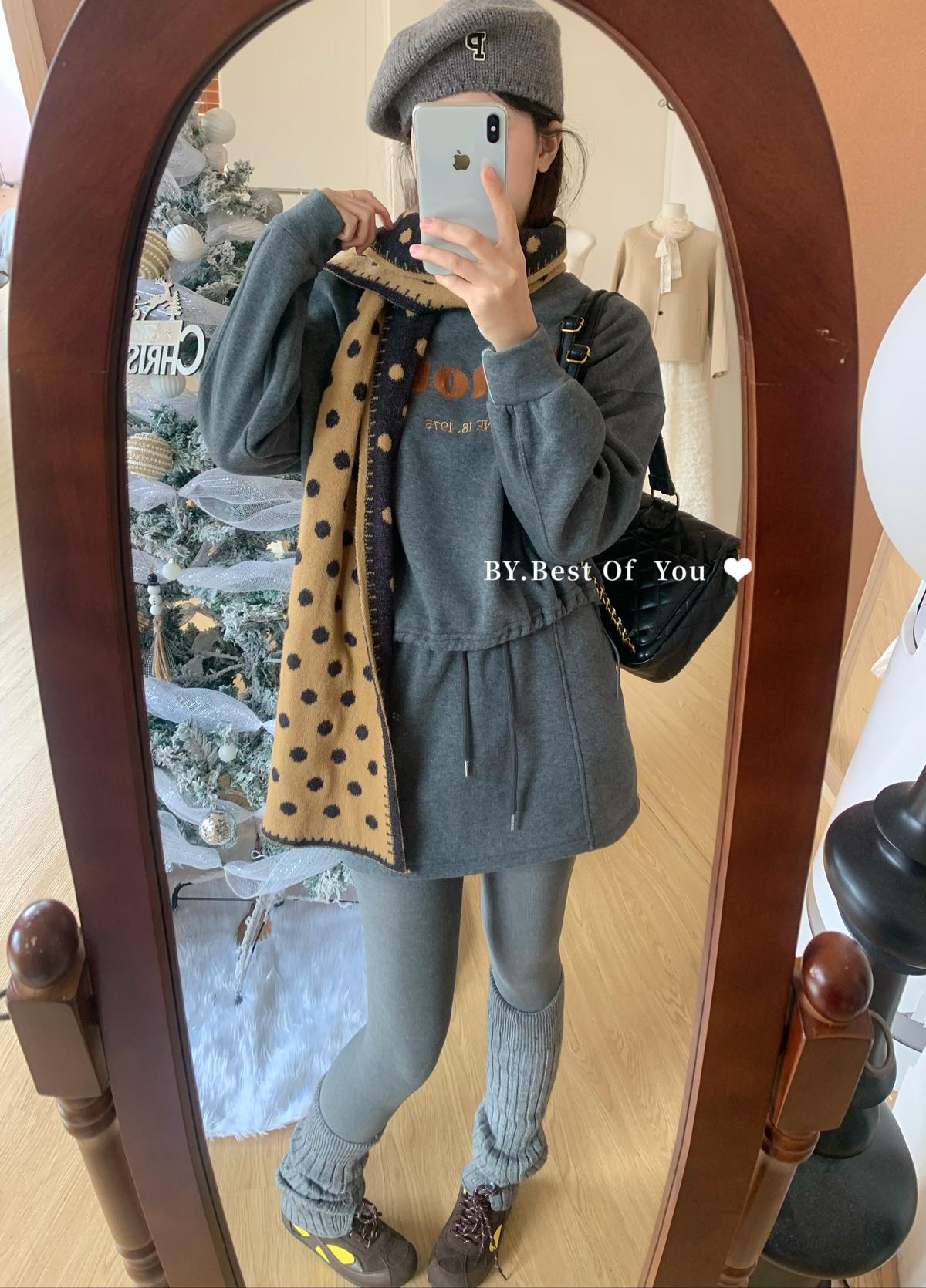 【C8273】抽繩長袖上衣+休閒褲好看啦~套裝(配圍巾)
