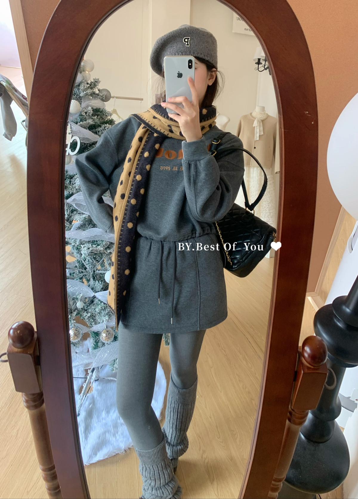 【C8283】無拘無束舒適日常韓標冬日加絨毛呢上衣+不可拆卸屁簾鬆弛休閒褲套裝(配可拆卸毛領)