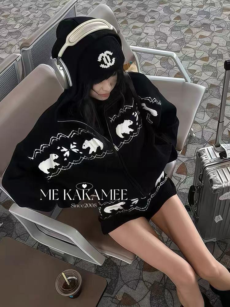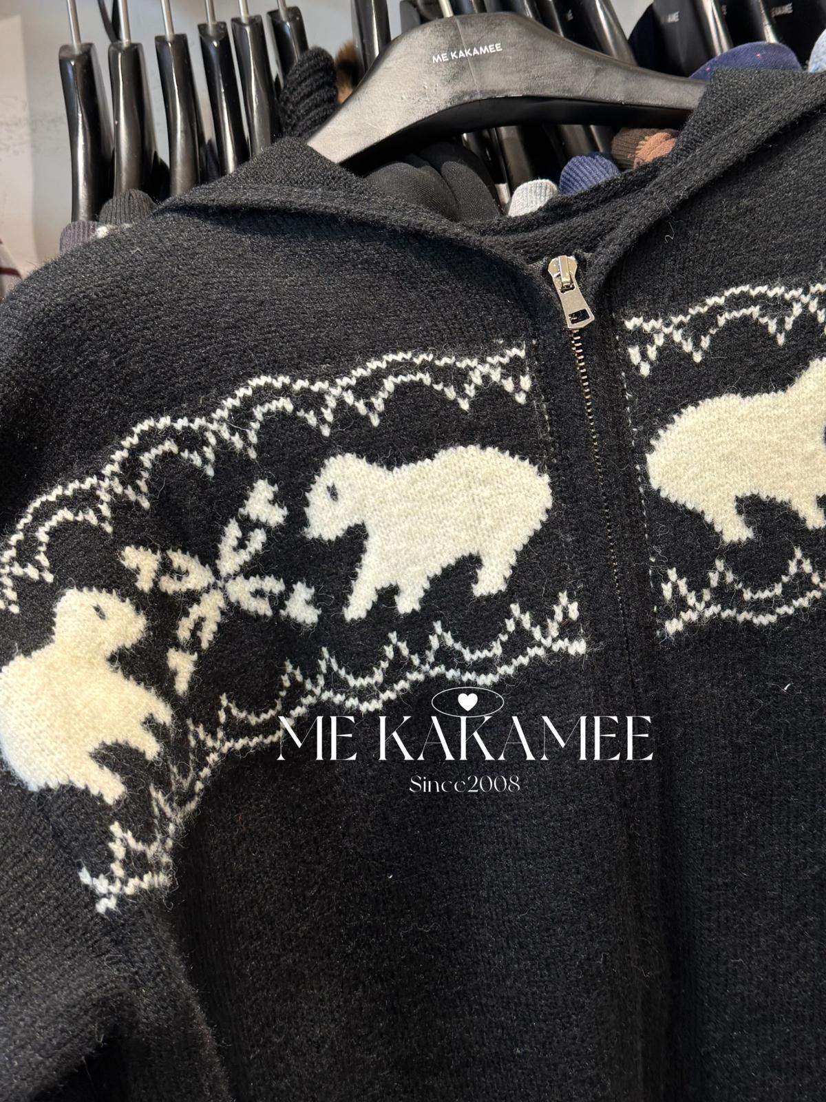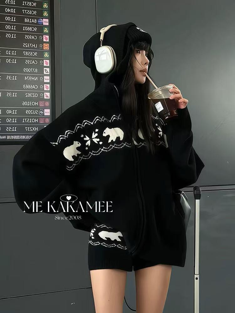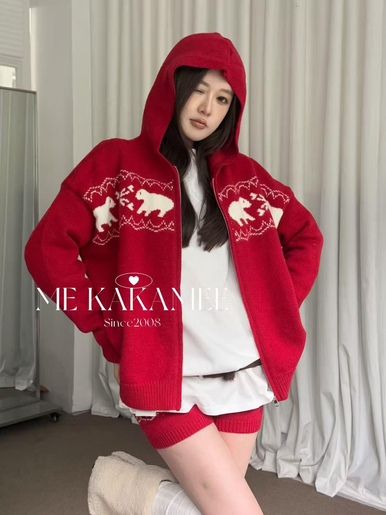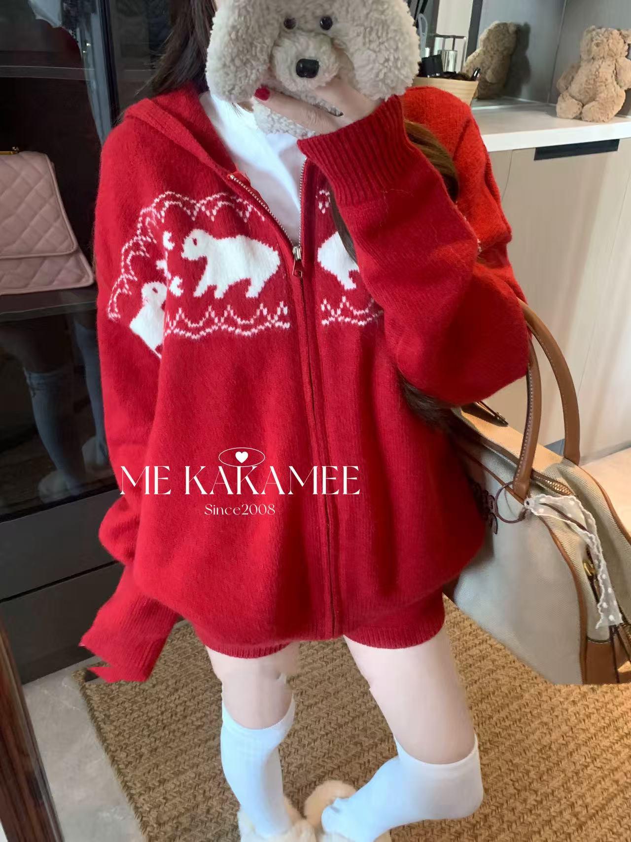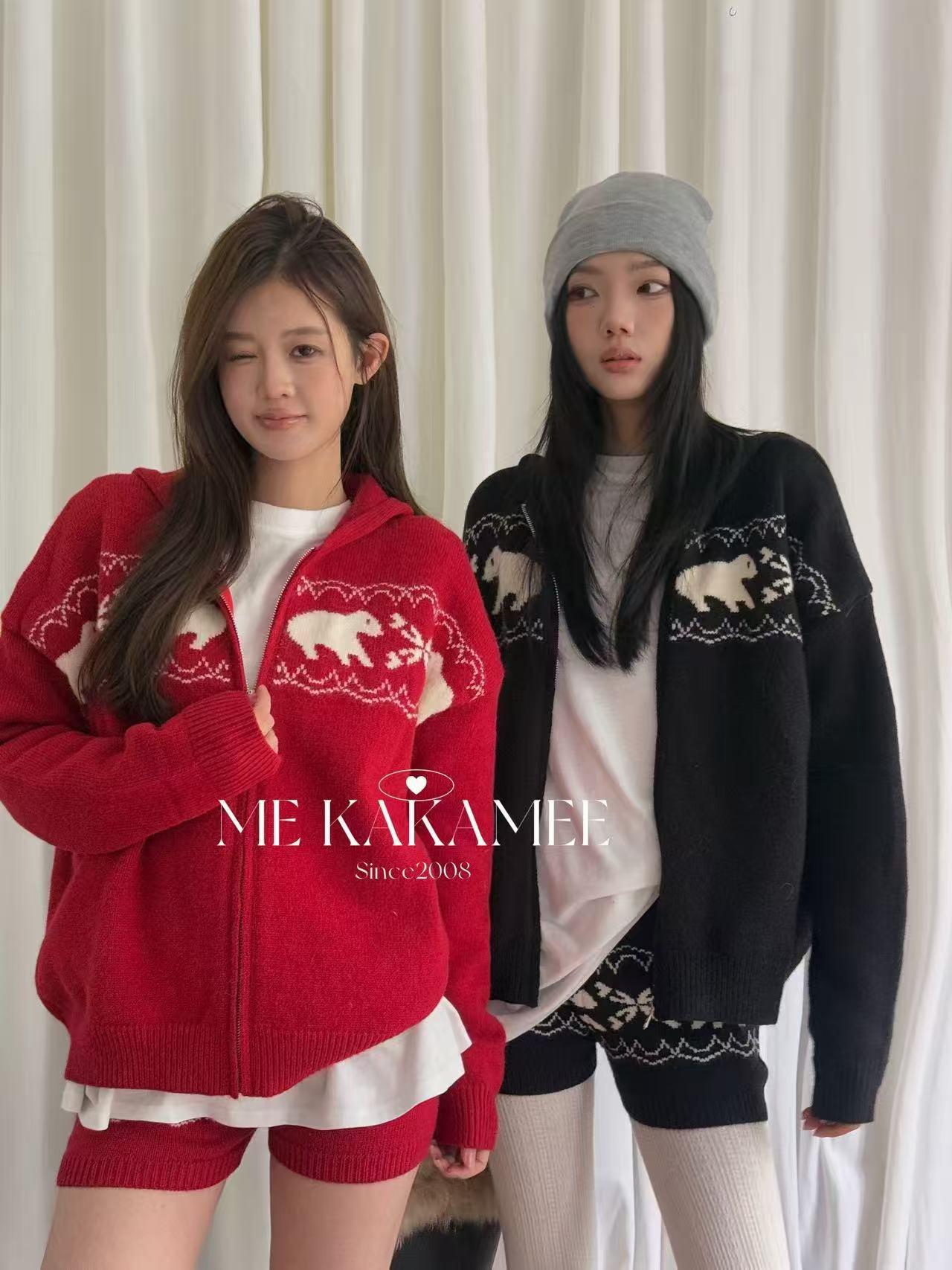 【C7983】冬新品慵懶費爾島提花連帽開衫毛衣+休閒短褲兩件套裝